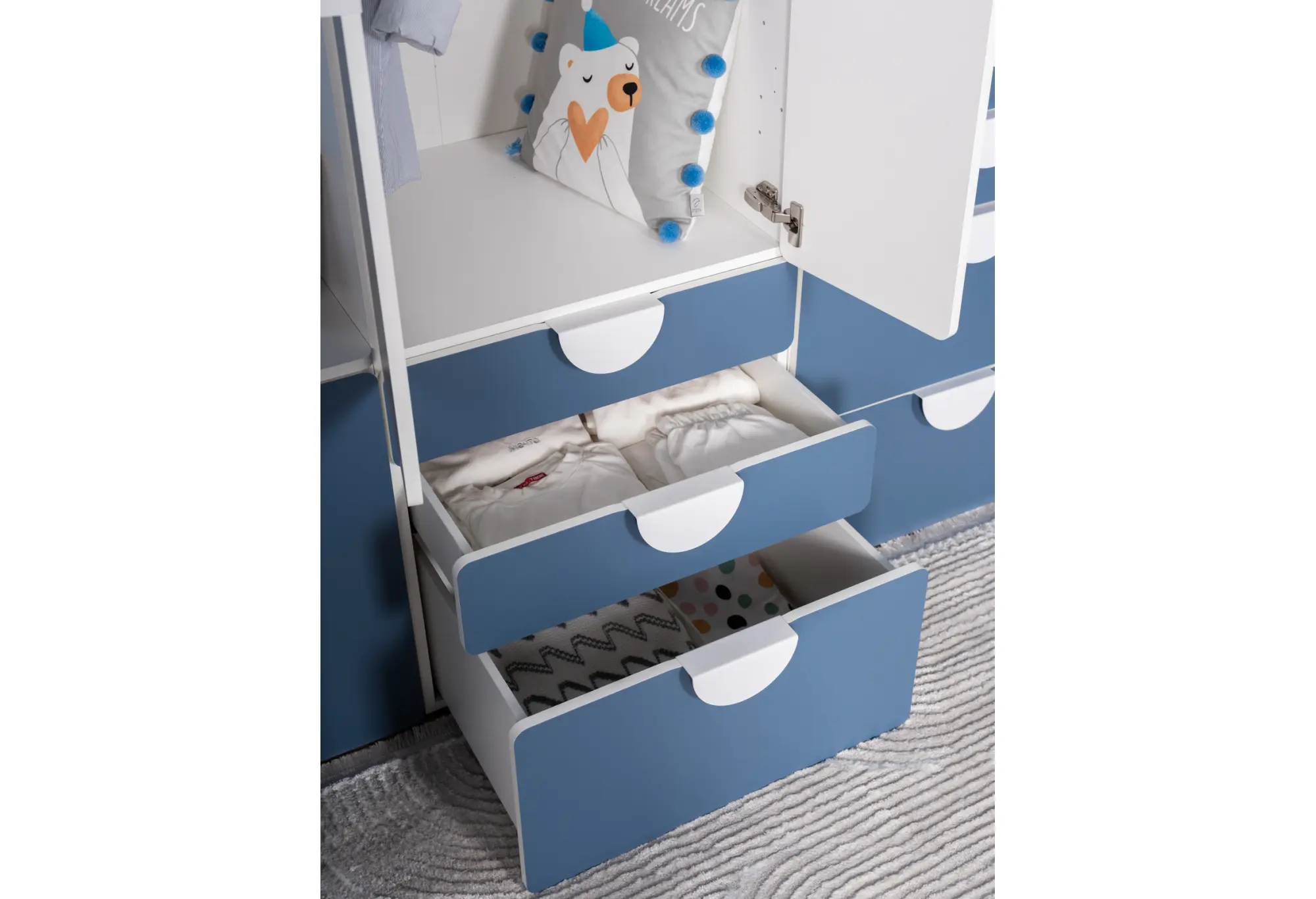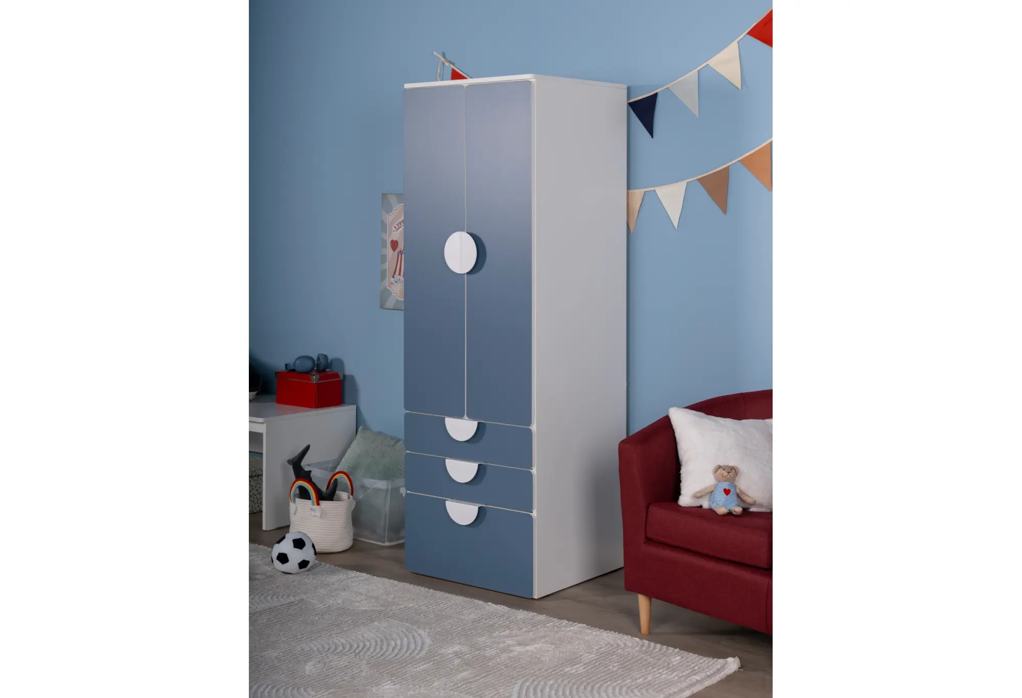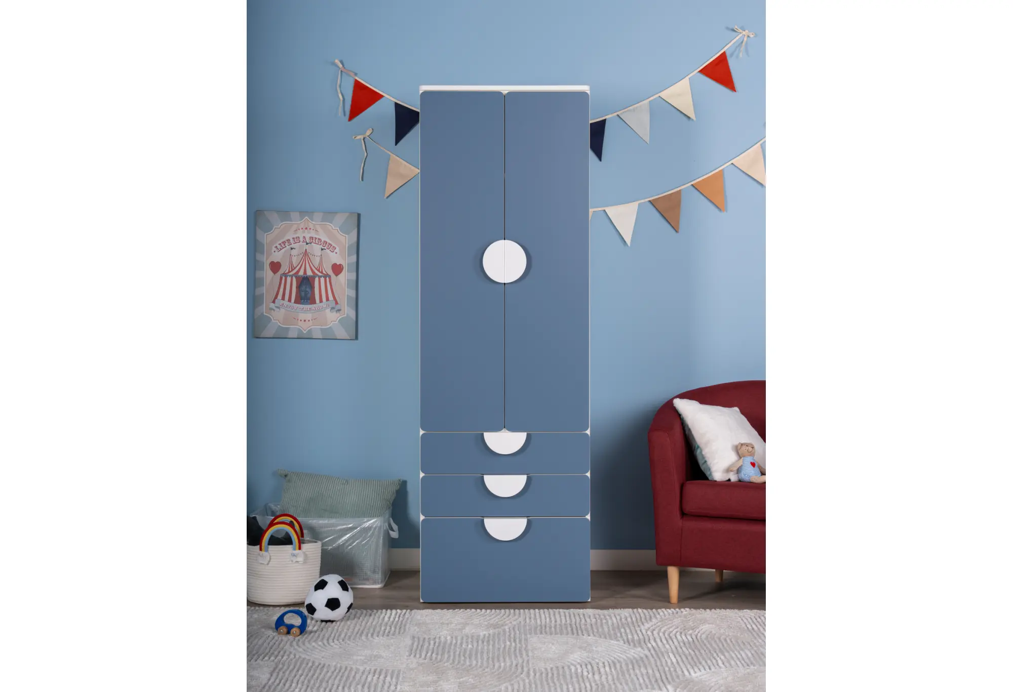 S02504 ПИКСИ шкаф распашной с 2 дверьми, 3 ящиками и полкой 60x57x183, озорной василек