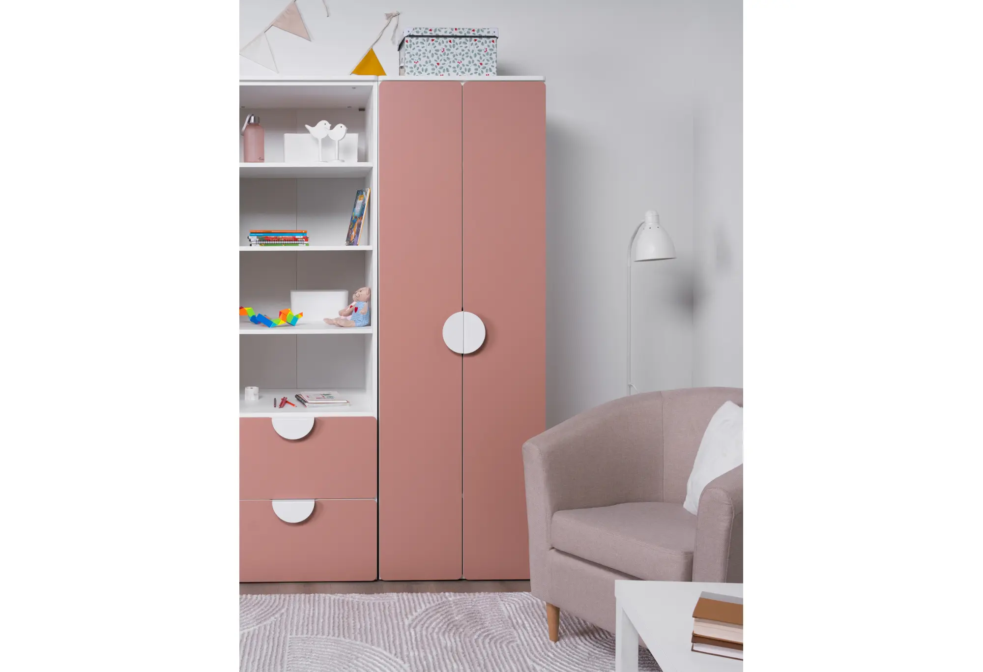 S02597 ПИКСИ шкаф распашной с 2 дверьми и полкой 60x57x183, мечтательный пион