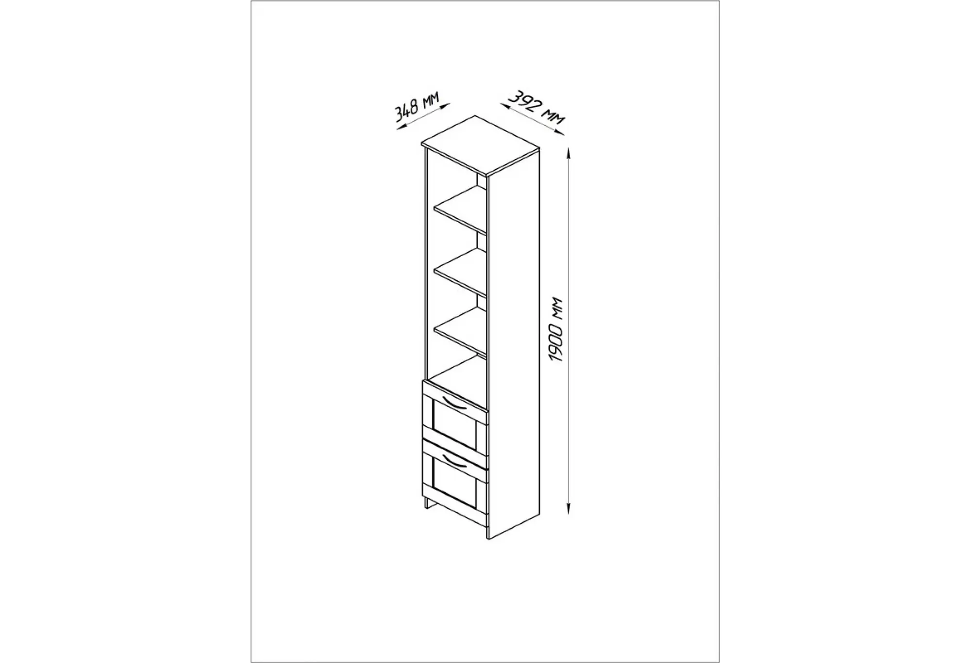 Стеллаж СИРИУС узкий, с двумя ящиками и четырьмя полками, цвет Дуб Сонома