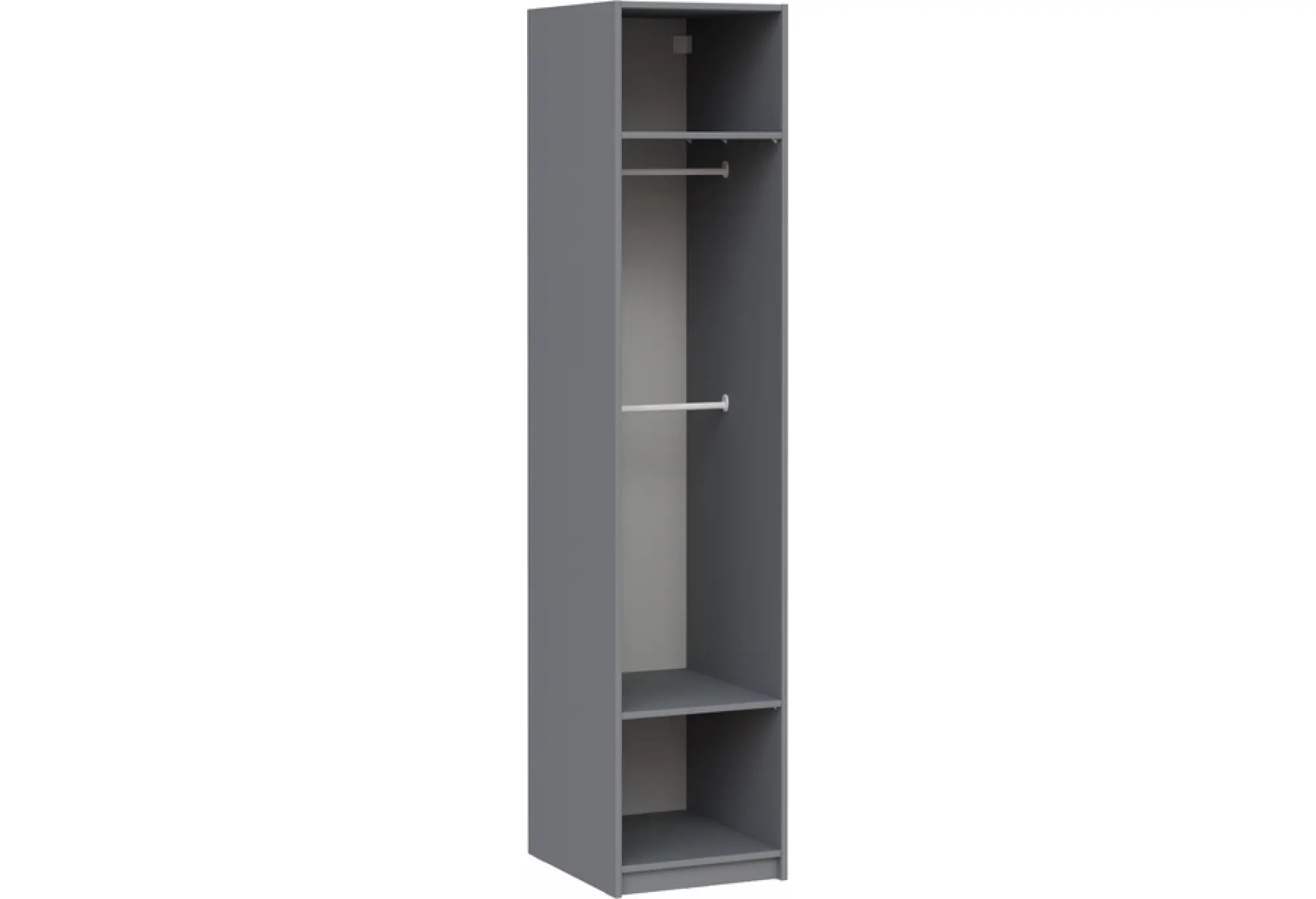 Нейтральный серый цвет гармонично вписывается в современные интерьеры, легко сочетается с другой мебелью и не перегружает пространство. Стеллаж можно использовать как самостоятельный элемент или как модуль в составе системы хранения.