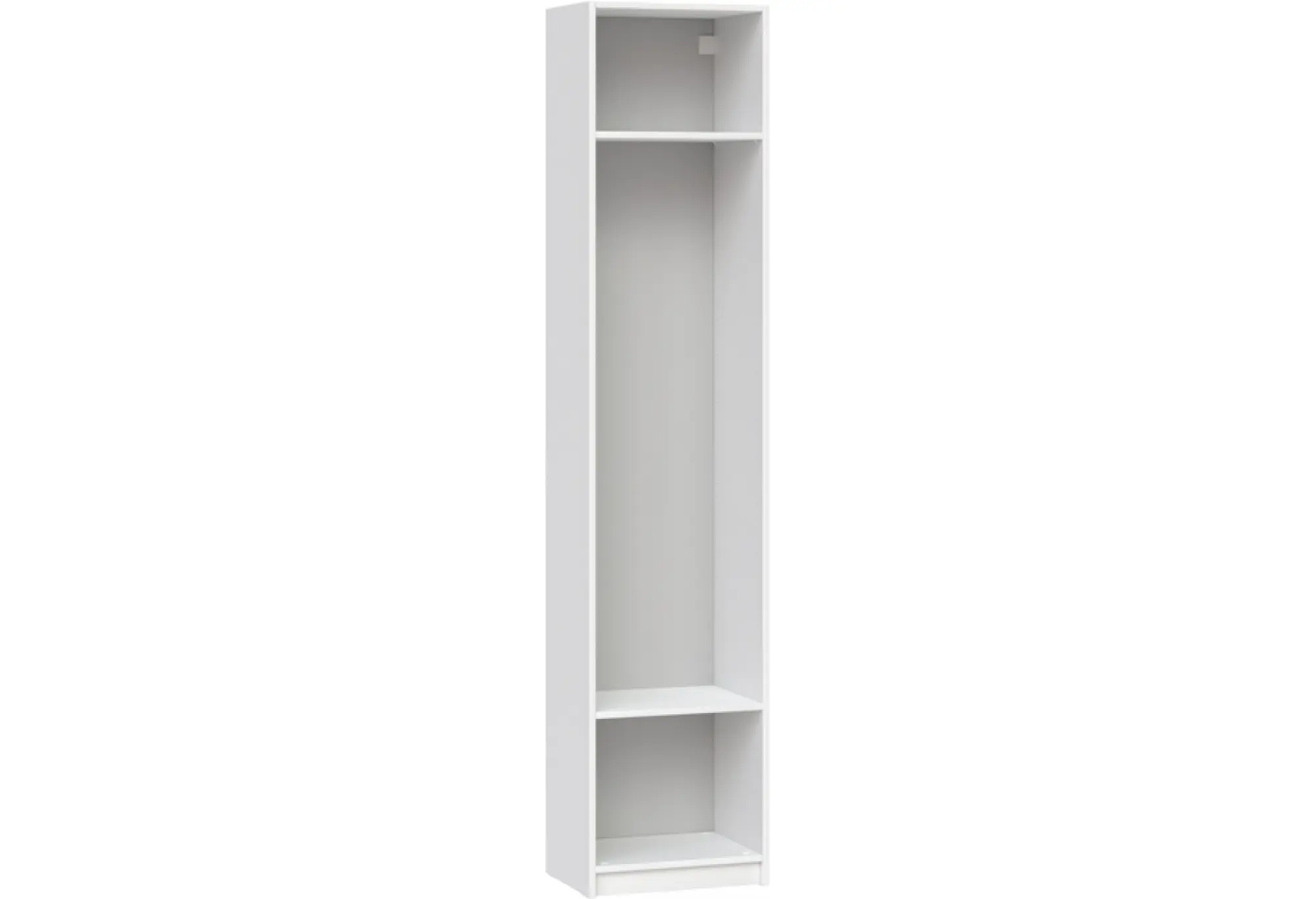 Высокий узкий стеллаж в лаконичном белом цвете станет функциональным дополнением интерьера в прихожей, гардеробной, спальне или офисе. Продуманная вертикальная конструкция позволяет использовать высоту помещения и экономить место по ширине, что особенно удобно для компактных комнат и ниш.