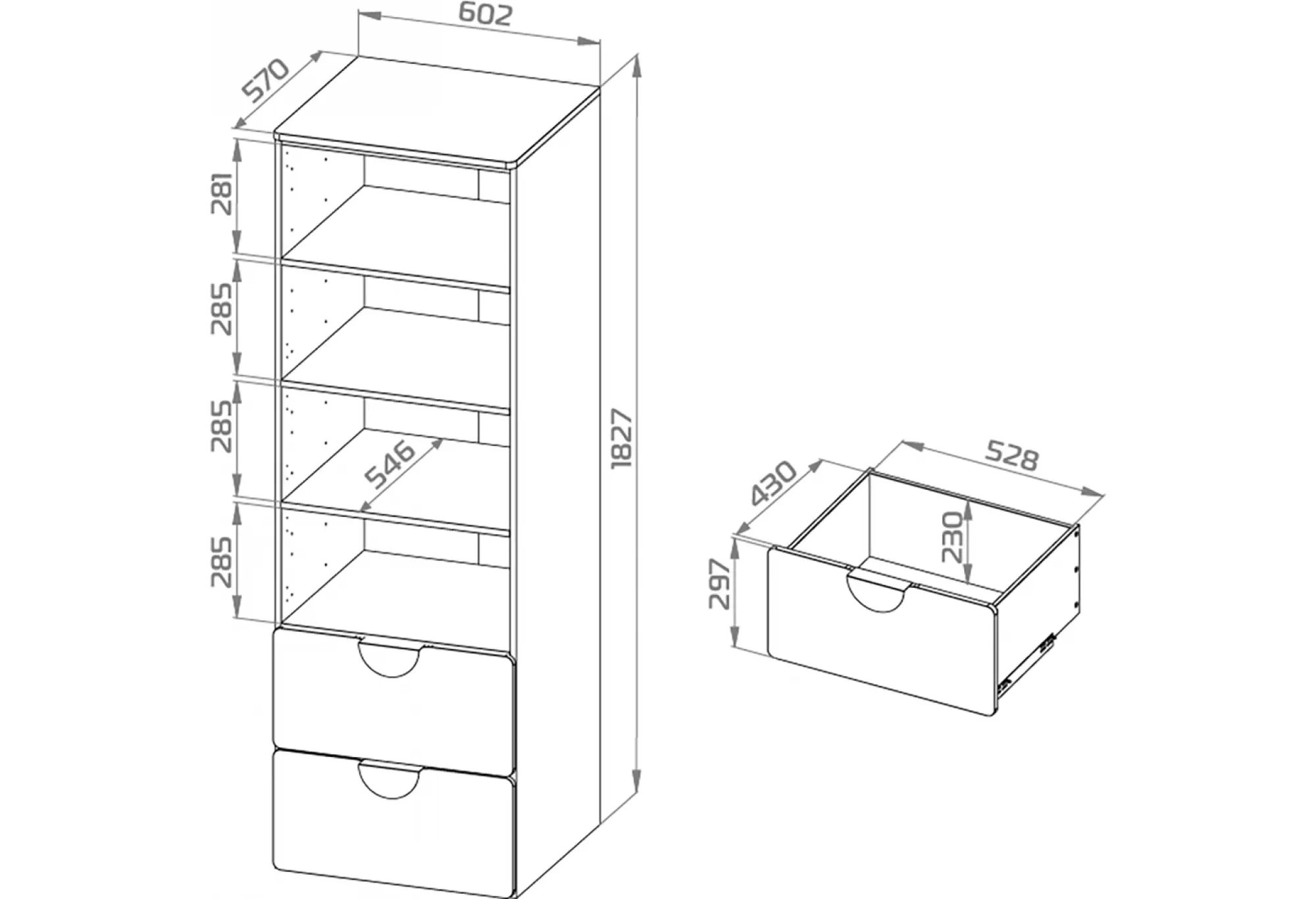 S02443 ПИКСИ стеллаж с 2 ящиками 60x57x183, озорной василек