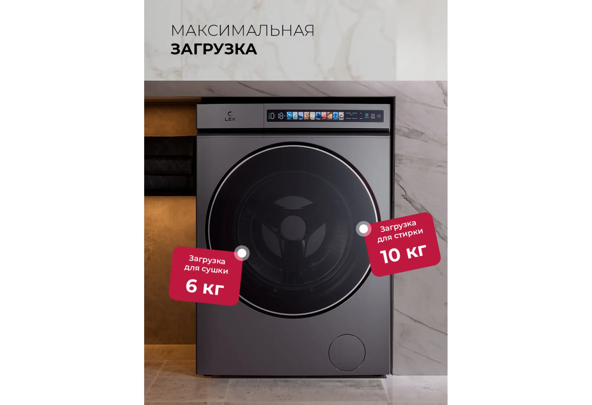Модель LEX LWM 10612 GRID MAGNA — это отдельностоящая стирально-сушильная машина с сенсорным управлением и премиальным дизайном, доступная в сером и белом цветах.Важные преимущества:10 программ стирки: