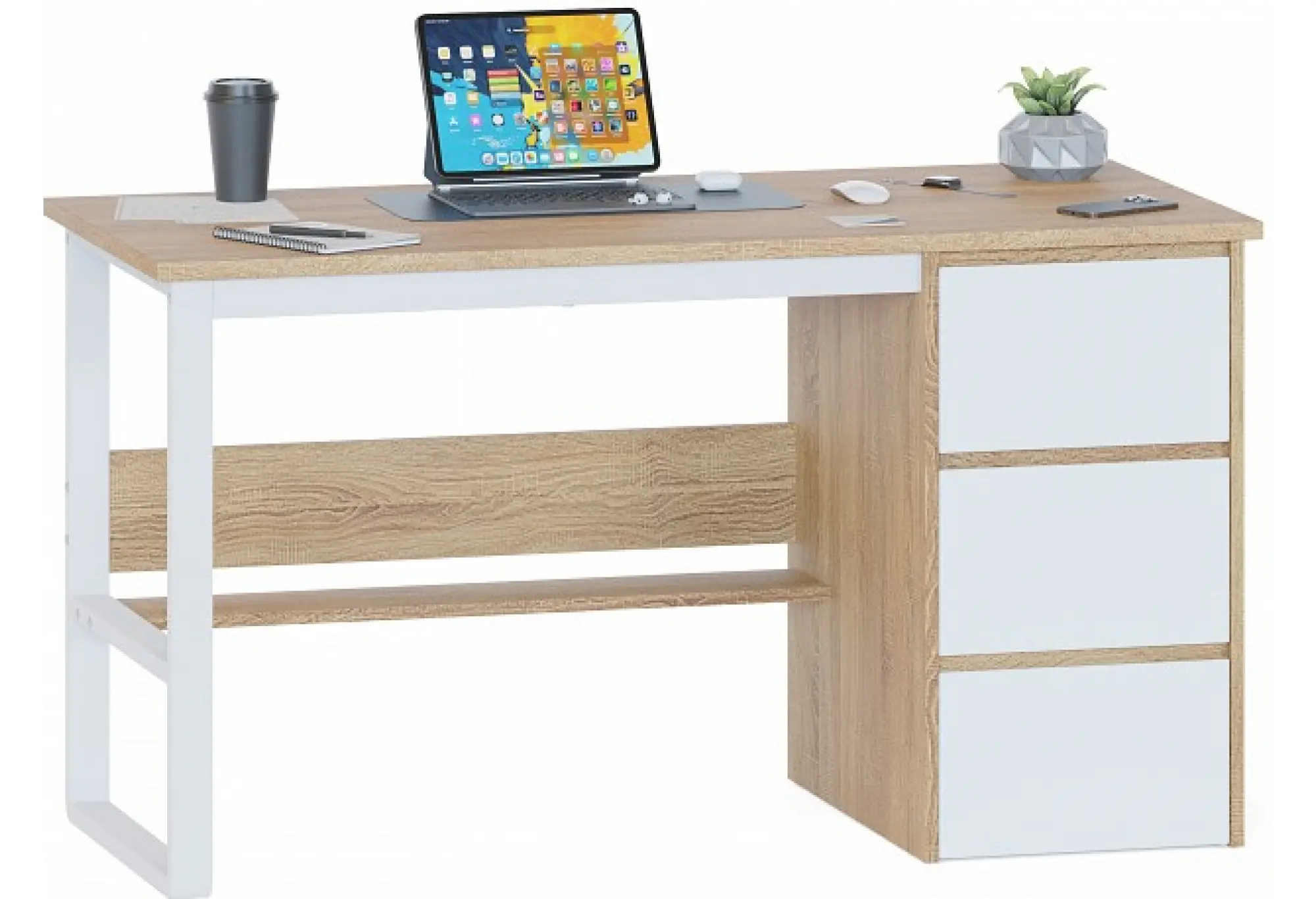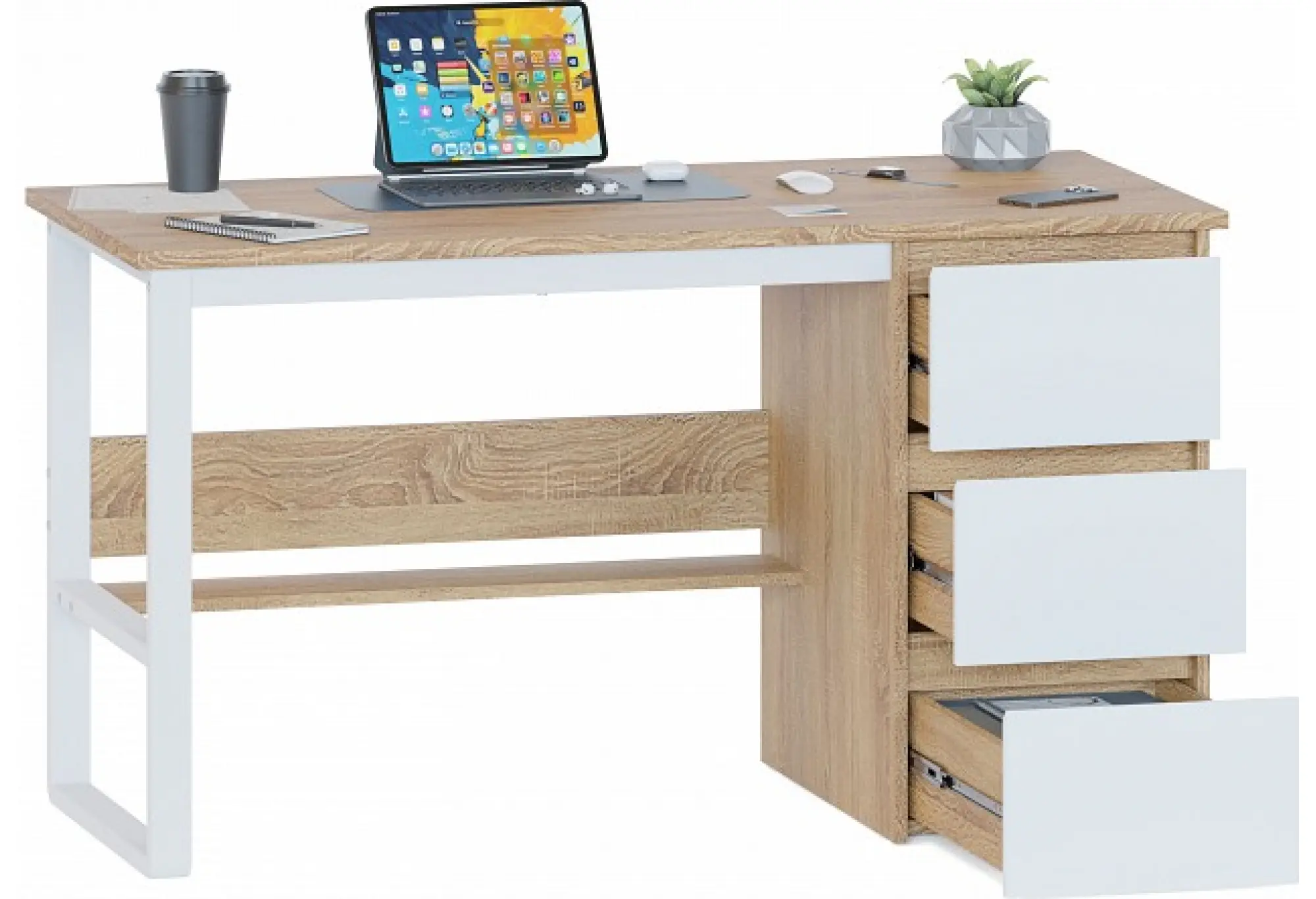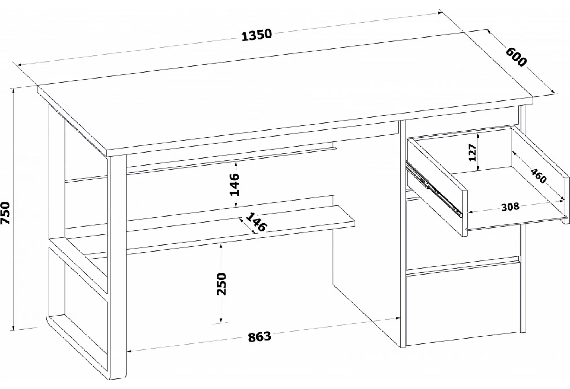 Дополнительные параметры: материал столешницы: ЛДСП 22 мм, ПВХ 2 мм, материал остальных деталей: ЛДСП 16 мм, кромка ПВХ 0,4 мм, направляющие шариковые полного выдвижения 450 мм, универсальная сборка: тумба располагается слева или справа