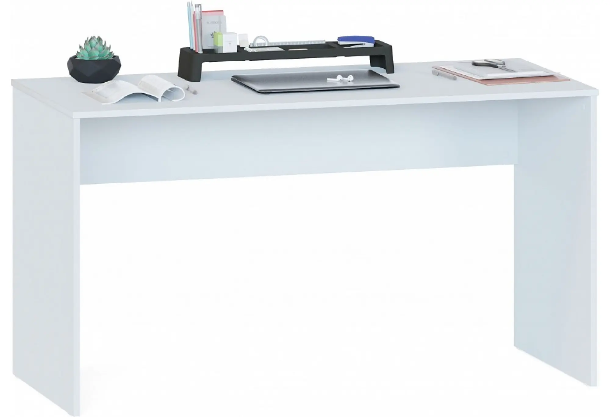 Письменный стол СПМ-352 — лаконичное и функциональное решение для офиса или кабинета. Прямоугольная столешница из ЛДСП класса Е1 с матовой поверхностью создает удобное рабочее пространство для ноутбука, документов и канцелярии. Белый цвет столешницы и корпуса визуально облегчает конструкцию и помогает поддерживать аккуратный вид рабочего места.