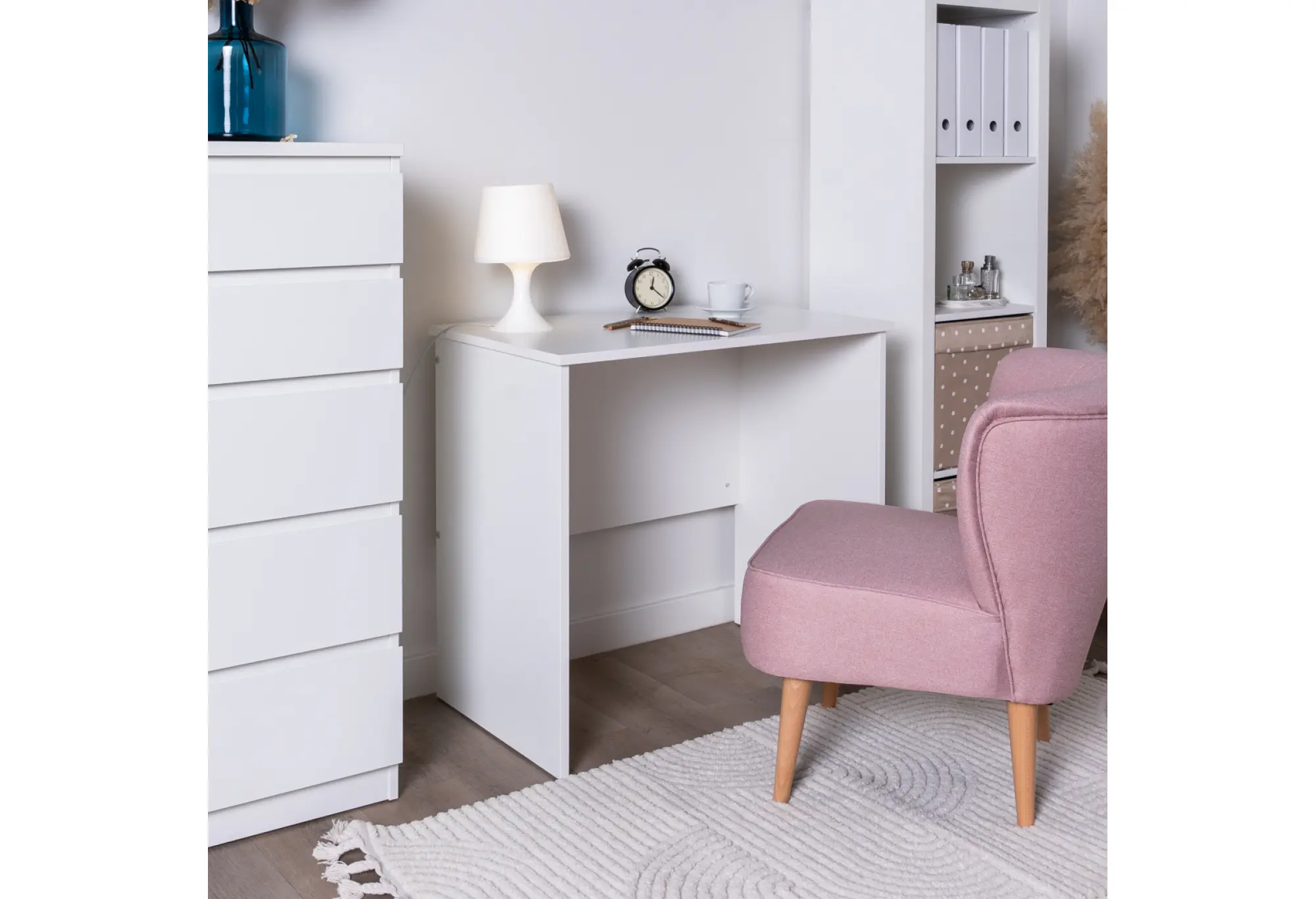 Размеры стола 800х500х750 мм делают его идеальным выбором для небольших пространств, а его минималистичный дизайн легко сочетается с любой мебелью. Стол выдерживает нагрузку до 15 кг, что позволяет разместить на нем все необходимые для работы или учебы предметы.