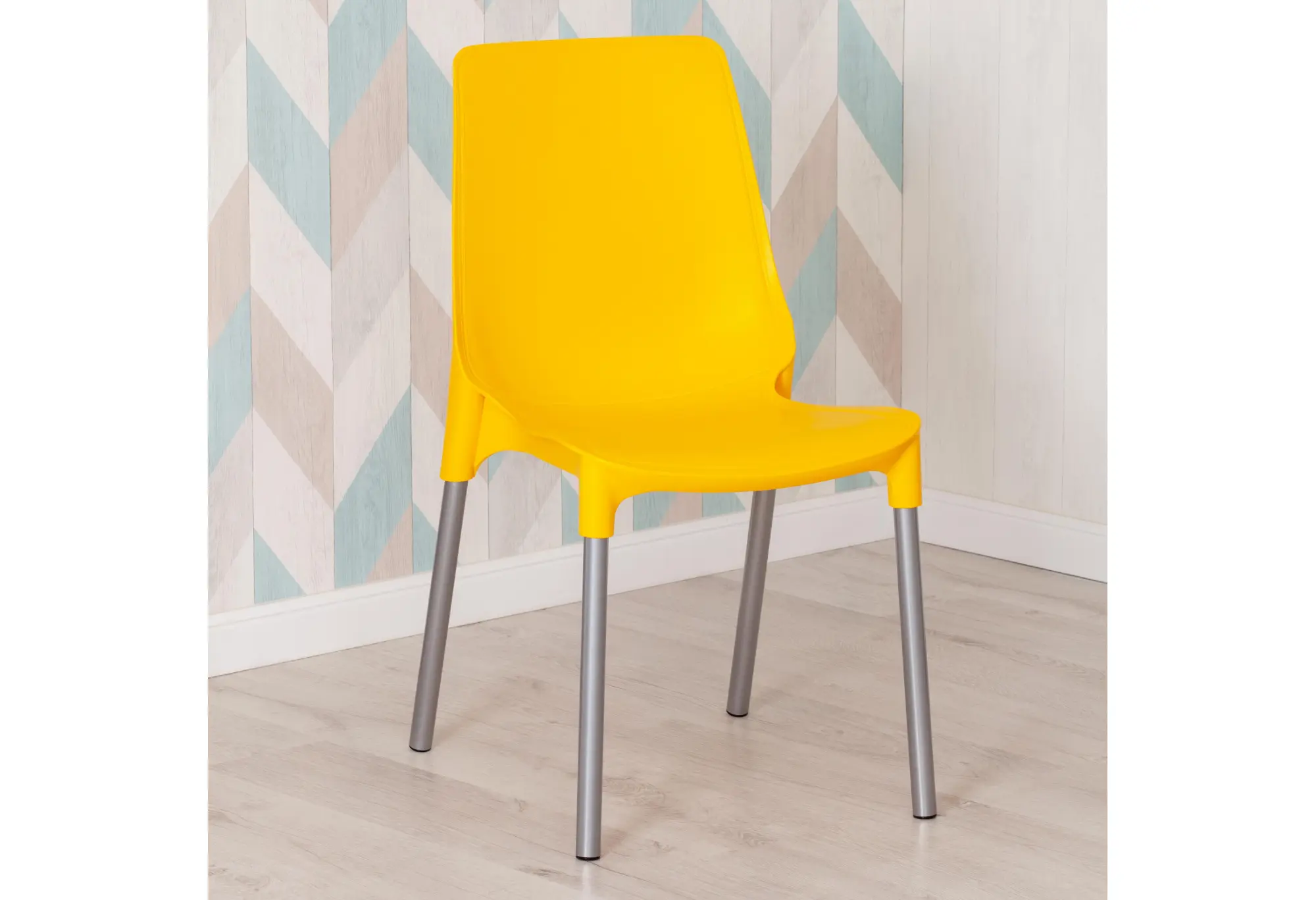 Простой и комфортный стул GENIUS из коллекции Modern станет незаменимым предметом интерьера в городской квартире, на загородной веранде или приусадебном участке. Стул может украсить любое пространство, изменить обстановку в лучшую сторону, наполнить интерьер легкостью и уютом. Декоративная отделка сиденья и спинки, имитирующая простроченную кожу, и металлические ножки, оцинкованные и окрашенные порошковой краской, выгодно выделяют стул среди привычной мебели. Удобное сиденье и спинка позволяют комфортно сидеть в течение длительного времени. Стулья GENIUS можно штабелировать по 5 штук, что позволяет экономить место при хранении. Сиденье стула выполнено из полипропилена желтого цвета с армирующими добавками. Благодаря чему модель практична, надежна, способна выдерживать большие нагрузки, устойчива к воздействию влаги, температурным перепадам и проста в уходе. Стул подойдёт для гостиной, для кухни, для дачи, для веранды, для ресторана или для кафе. Стул очень прост в сборке, инструкция по сборке прилагается.