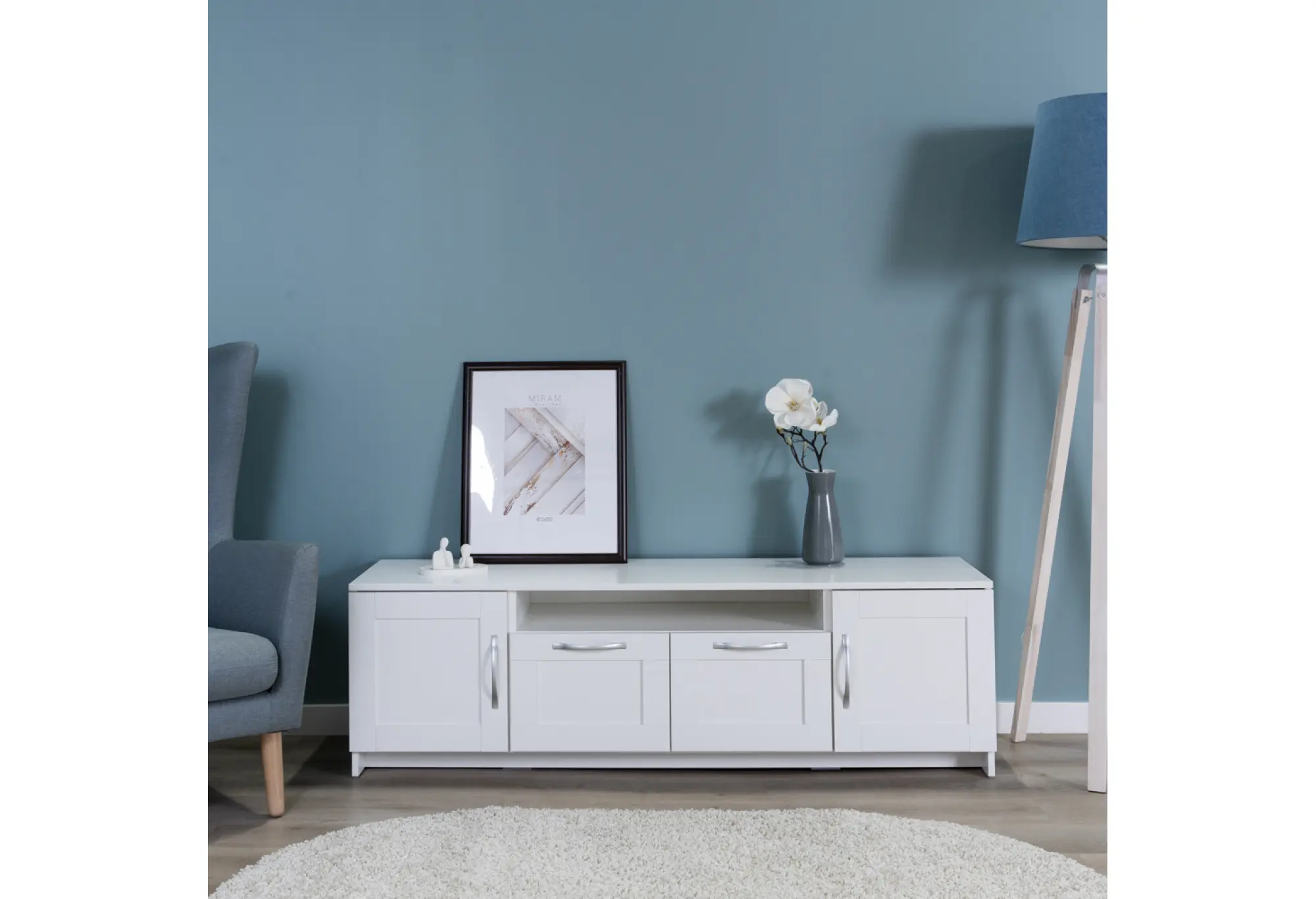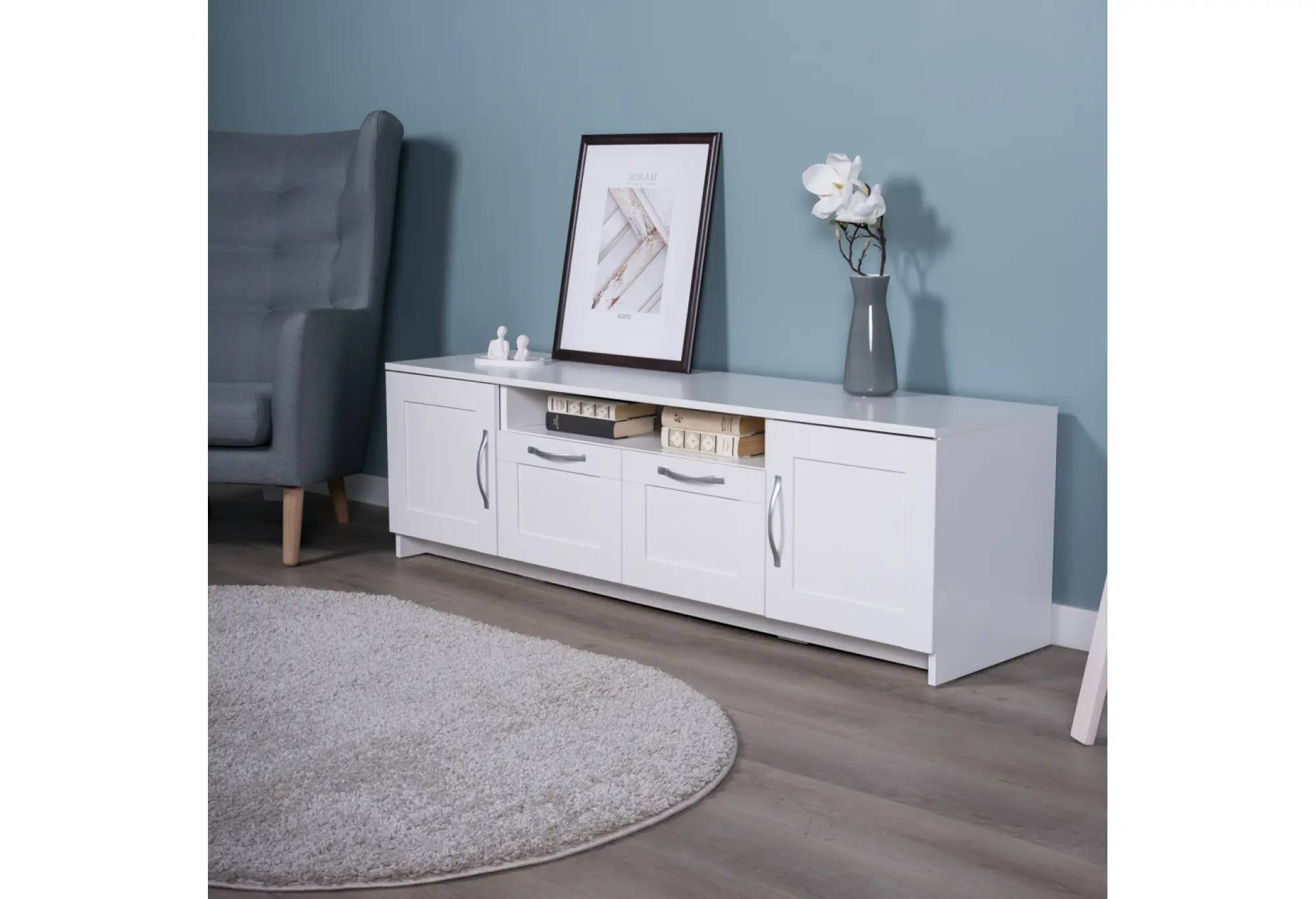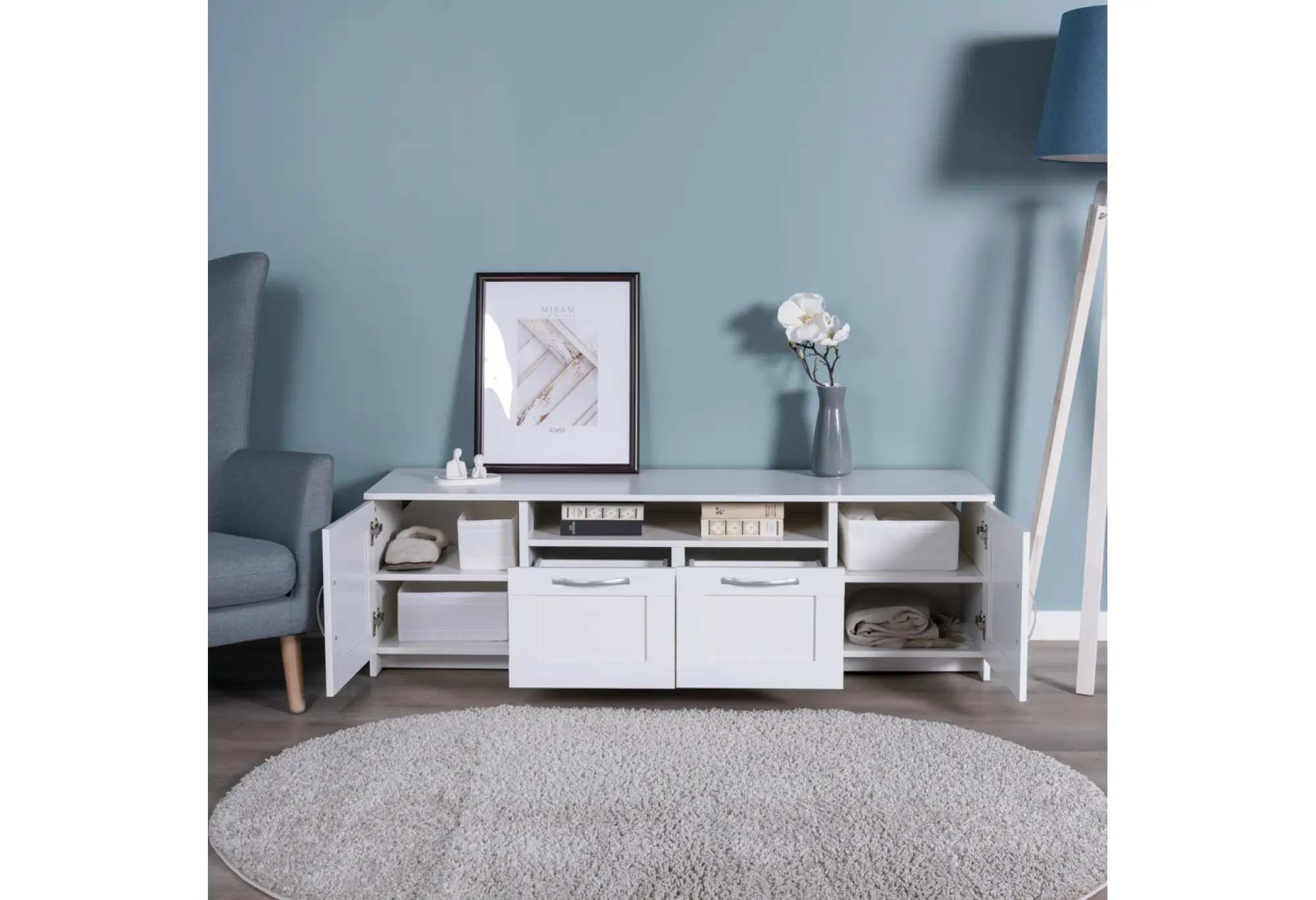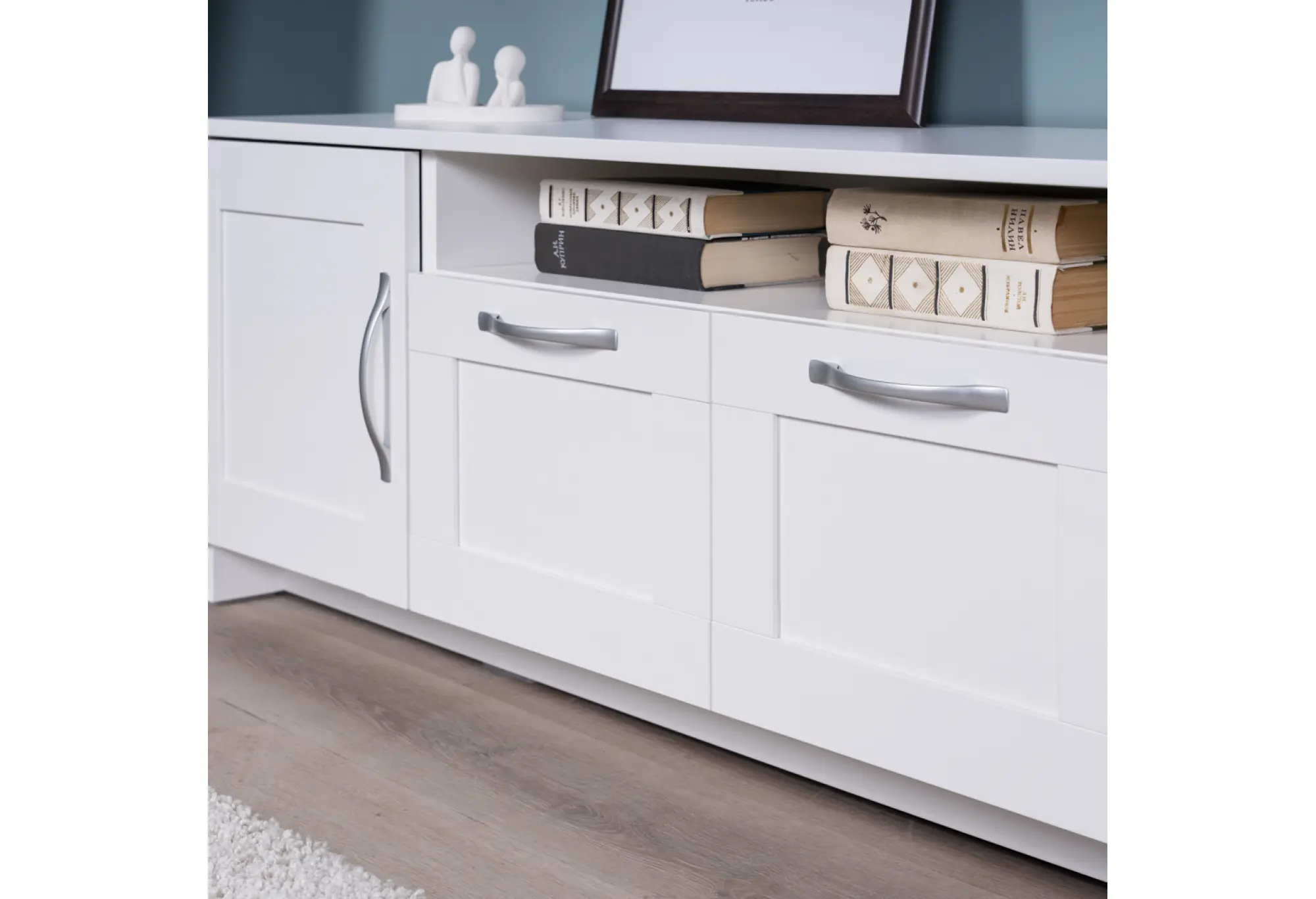Тумба СИРИУС под телевизор напольня широкая с двумя ящиками, цвет белый