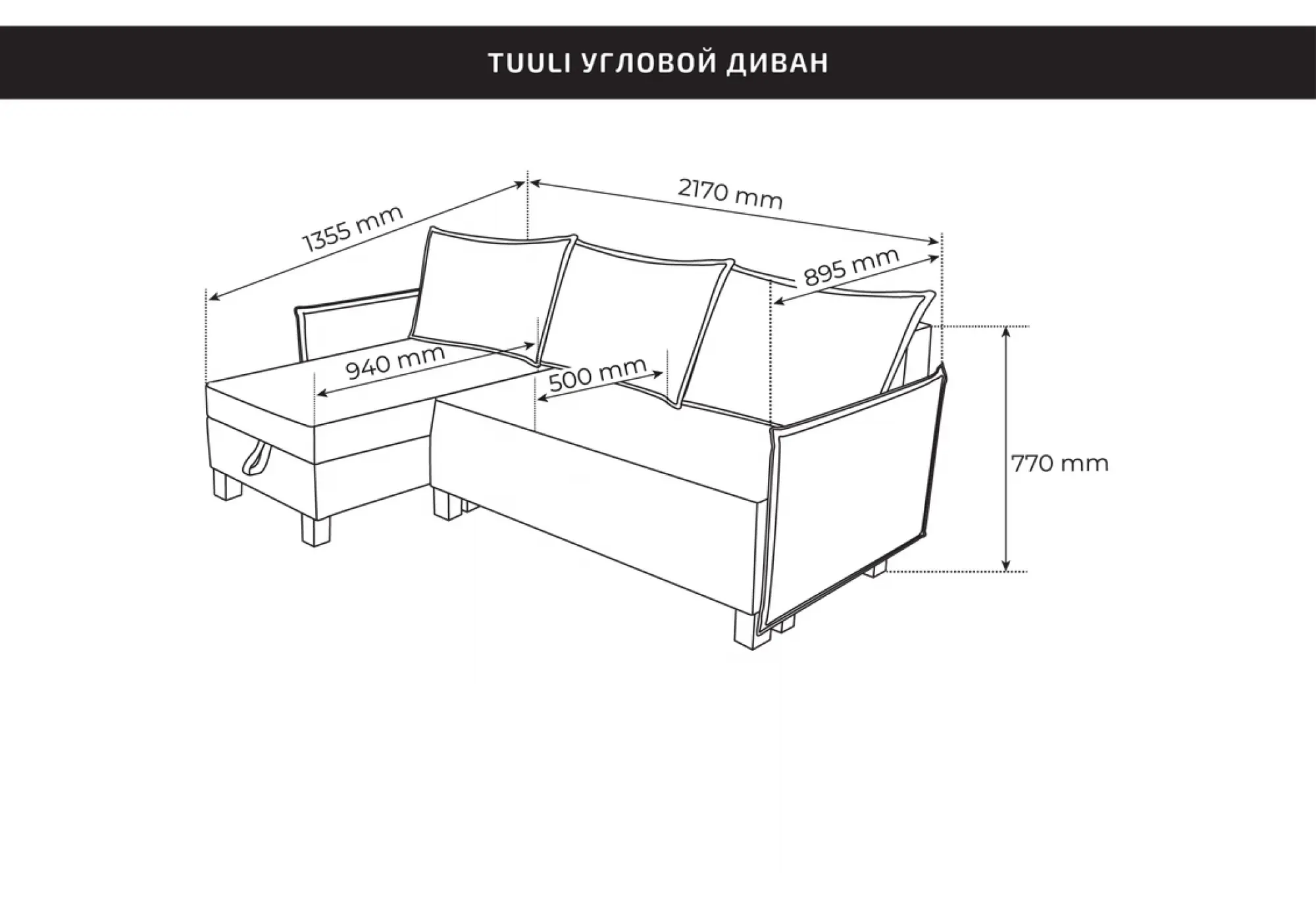 Механизм трансформации «Тик-Так» позволяет разложить диван в полноценное спальное место размером 1310×2030 мм. Конструкция рассчитана на регулярное использование - раскладывание выполняется плавно, без необходимости тянуть диван по полу. Угловая секция универсальная — ее можно расположить как справа, так и слева, адаптируя диван под планировку комнаты и перестановки в будущем.