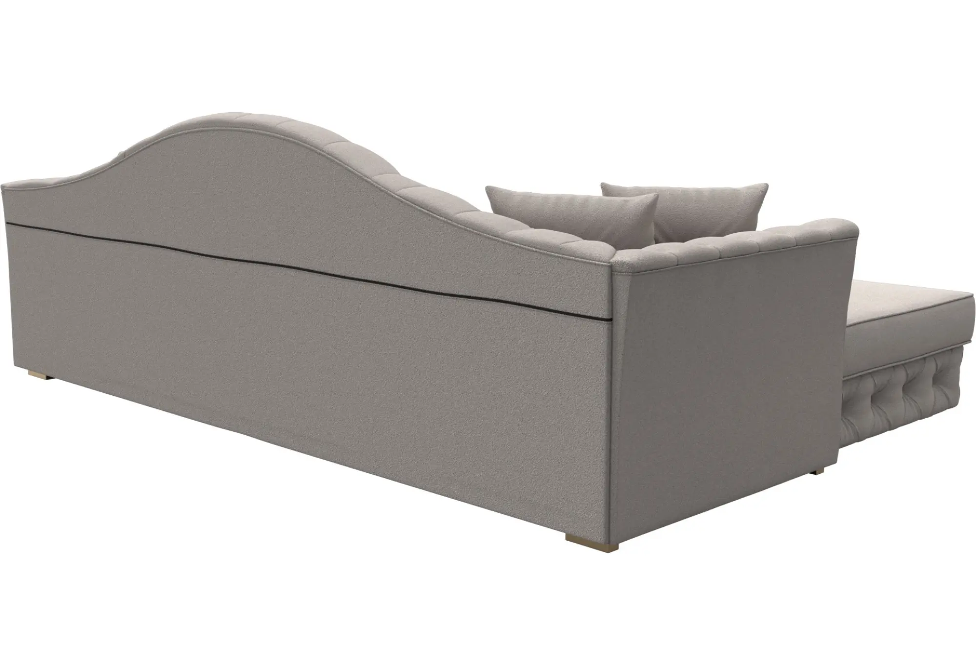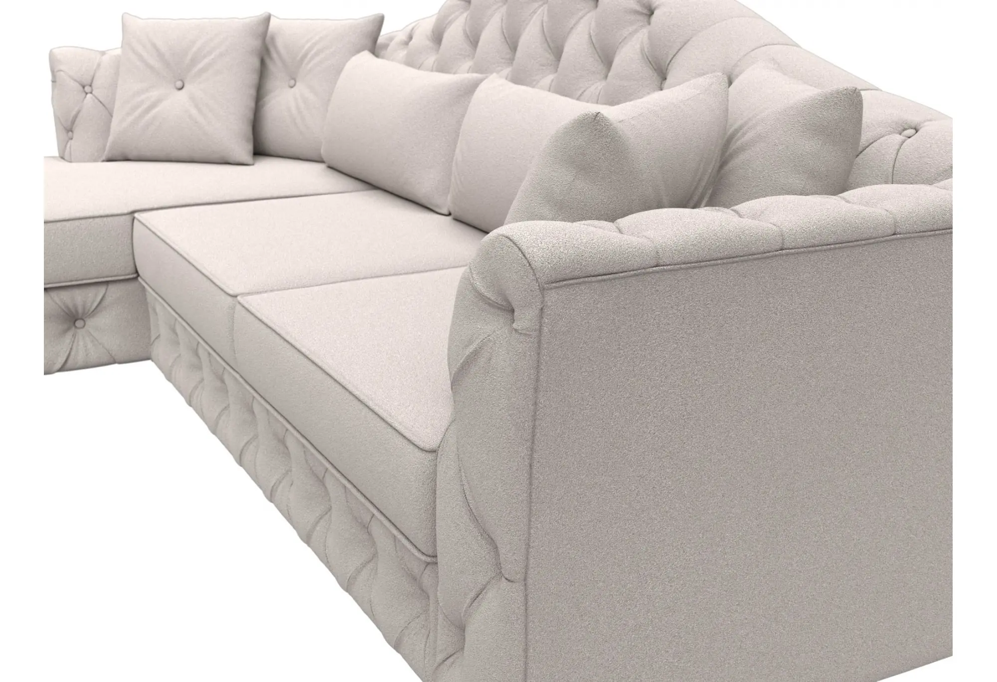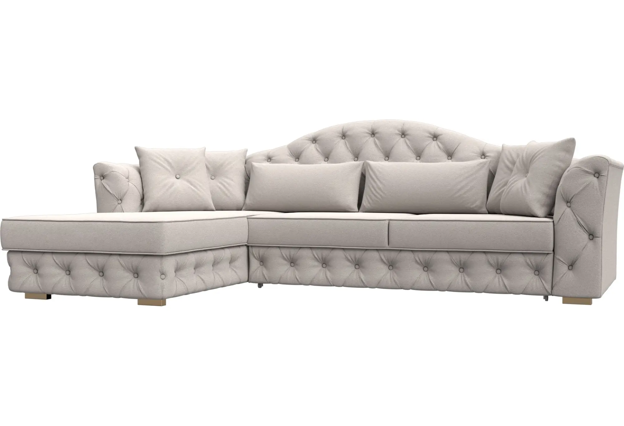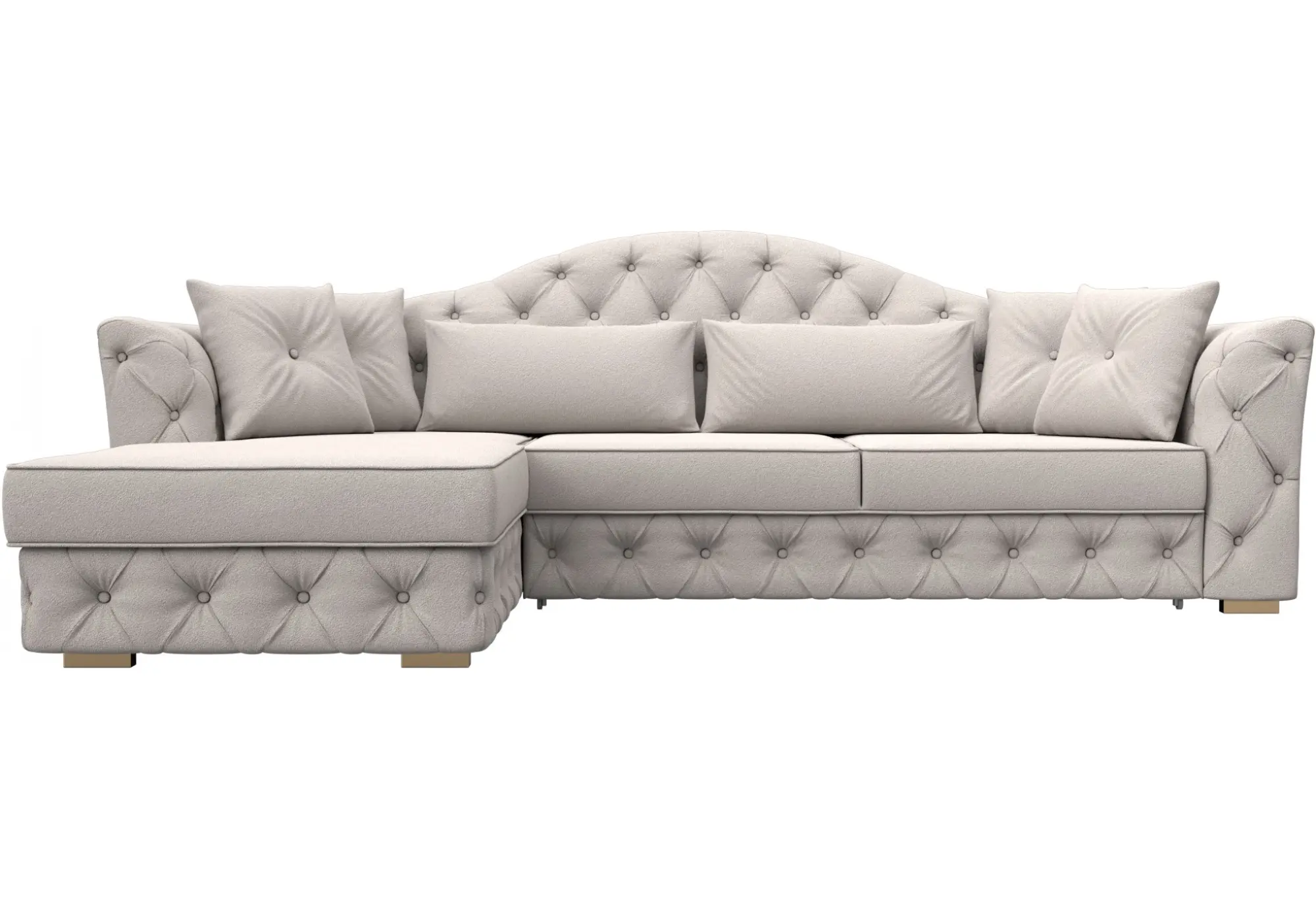 Акцент на декоративные элементы - мягкие декоративные подушки и каретная стяжка на спинке придают особый шарм и уют. Несмотря на отсутствие бельевого ящика, диван обеспечивает функциональность и комфорт.
