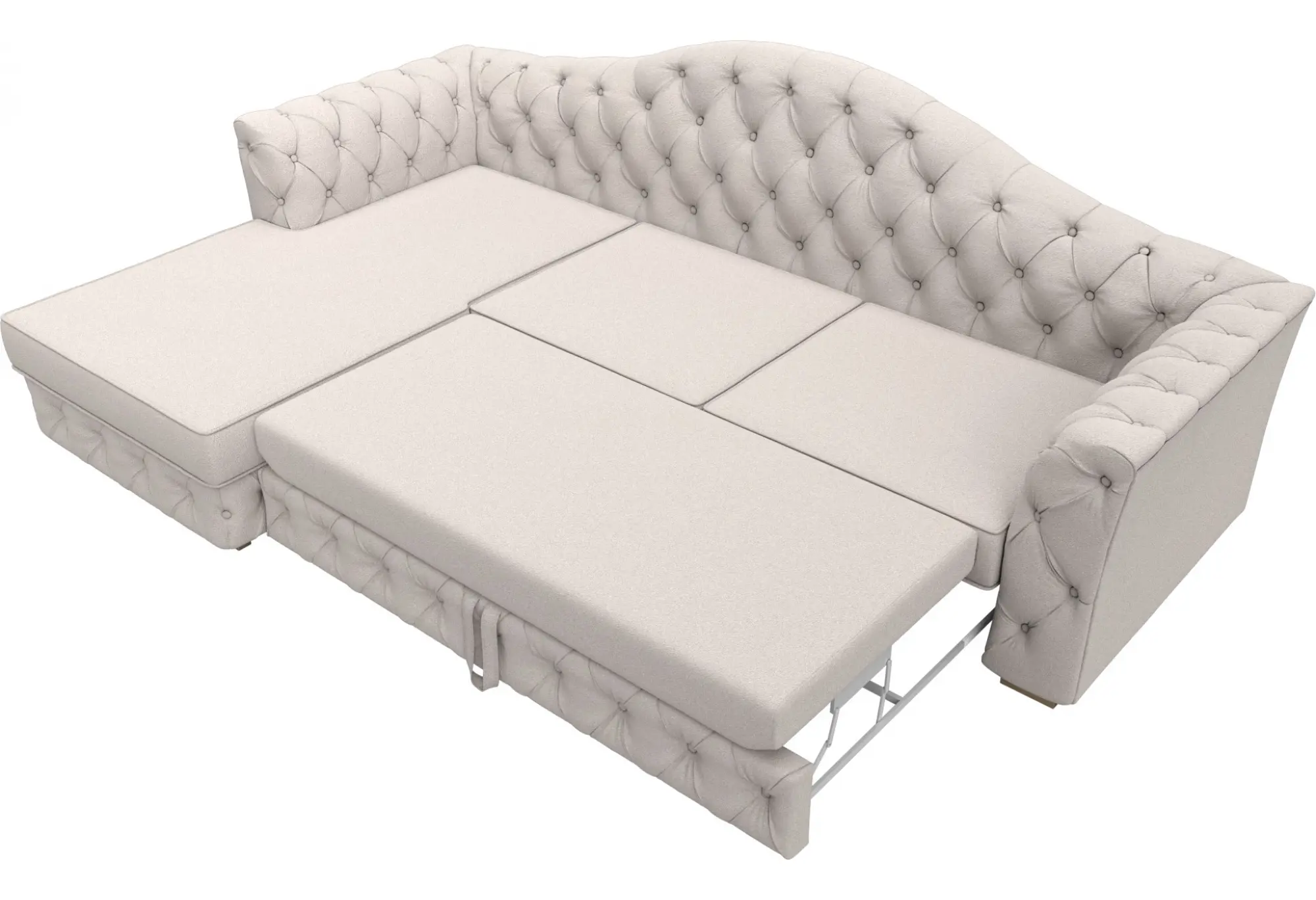 Его каркас надежно выполнен из прочного бруса и реек, обеспечивающих долговечность и устойчивость. Деревянные ножки добавляют лёгкость конструкции. Раскладной механизм "дельфин" позволяет легко трансформировать диван в просторное спальное место, достигающее размера 1410х2020 мм, что будет удобно для двоих человек.