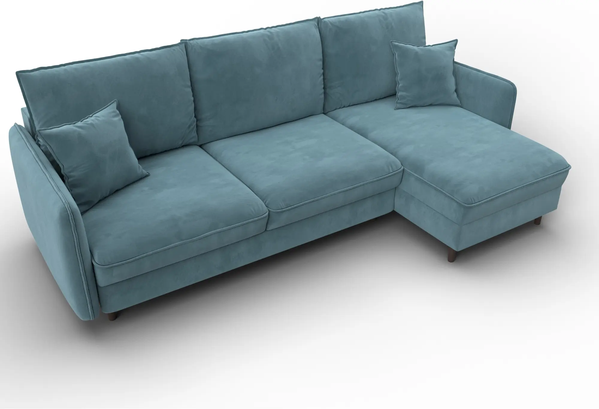 Угловой диван Лига-064 НПБ в бирюзовом велюре — это сочетание стиля и функциональности для вашей гостиной. Его универсальный угол позволяет разместить диван в любом пространстве, а механизм раскладки "Пантограф" (тик-так) трансформирует его в полноценное спальное место размером 1420x2310 мм. Независимый пружинный блок обеспечивает ортопедический комфорт, а съемные подушки позволяют легко адаптировать диван под ваши нужды.