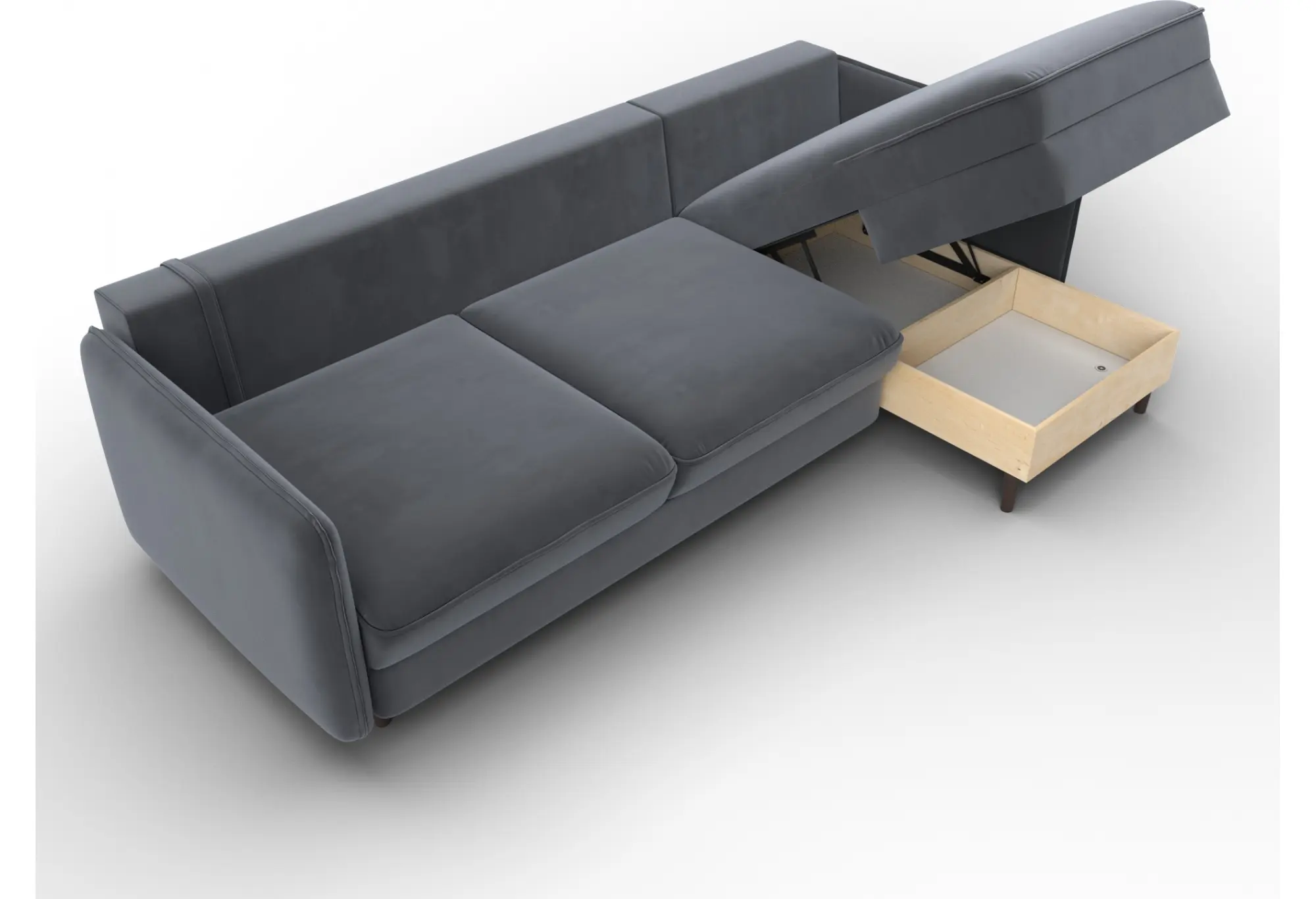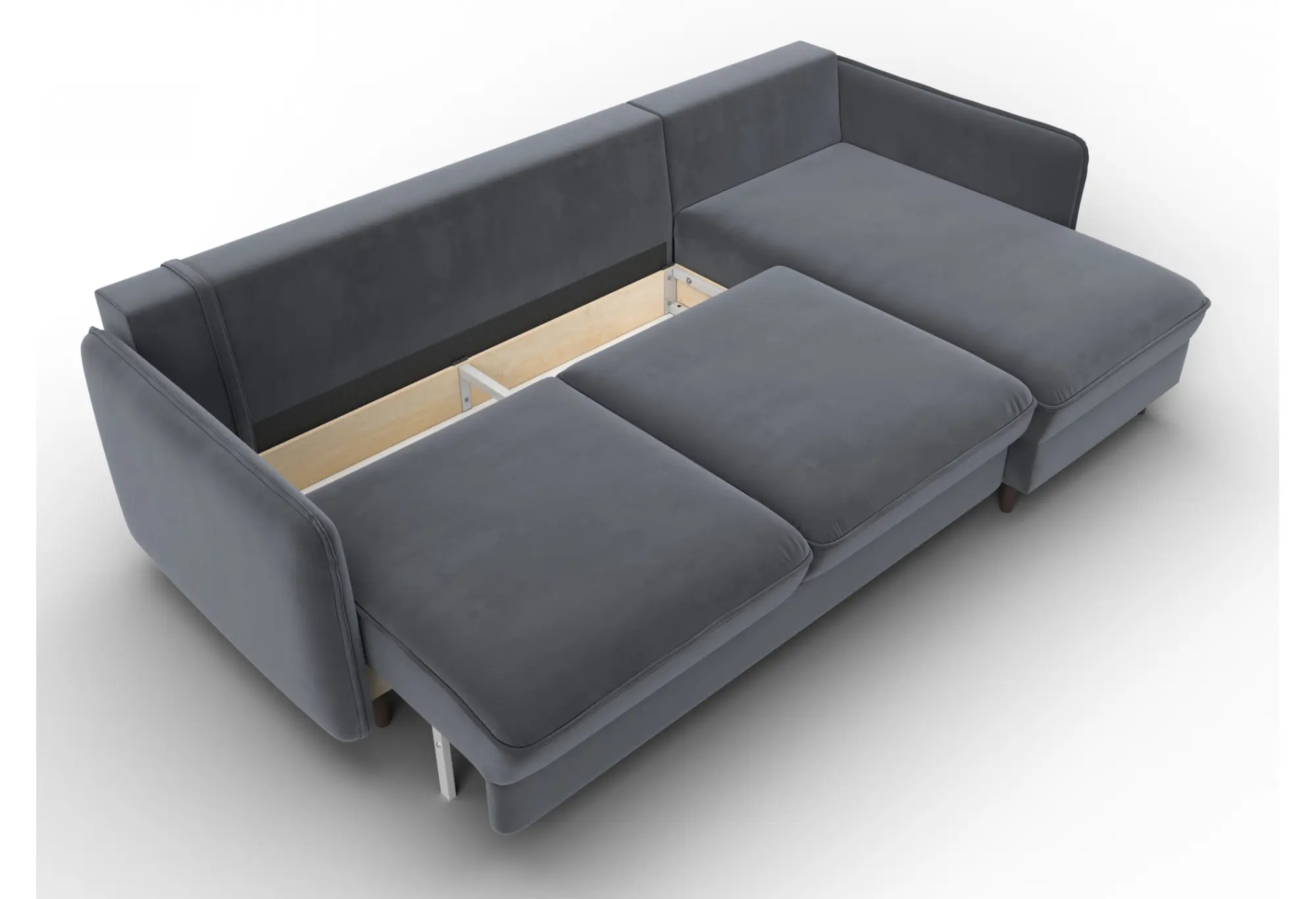 Угловой диван Лига-064 – это сочетание элегантности и функциональности. Выполненный из мягкого велюра серого цвета, он станет стильным акцентом в вашей гостиной. Прочный каркас из ДСП и независимый пружинный блок обеспечивают максимальный комфорт и долговечность. Механизм раскладки "пантограф" преобразует диван в просторное спальное место, идеально подходящее для двух человек.