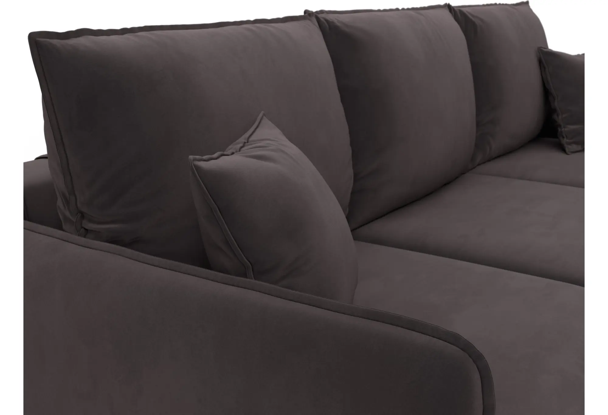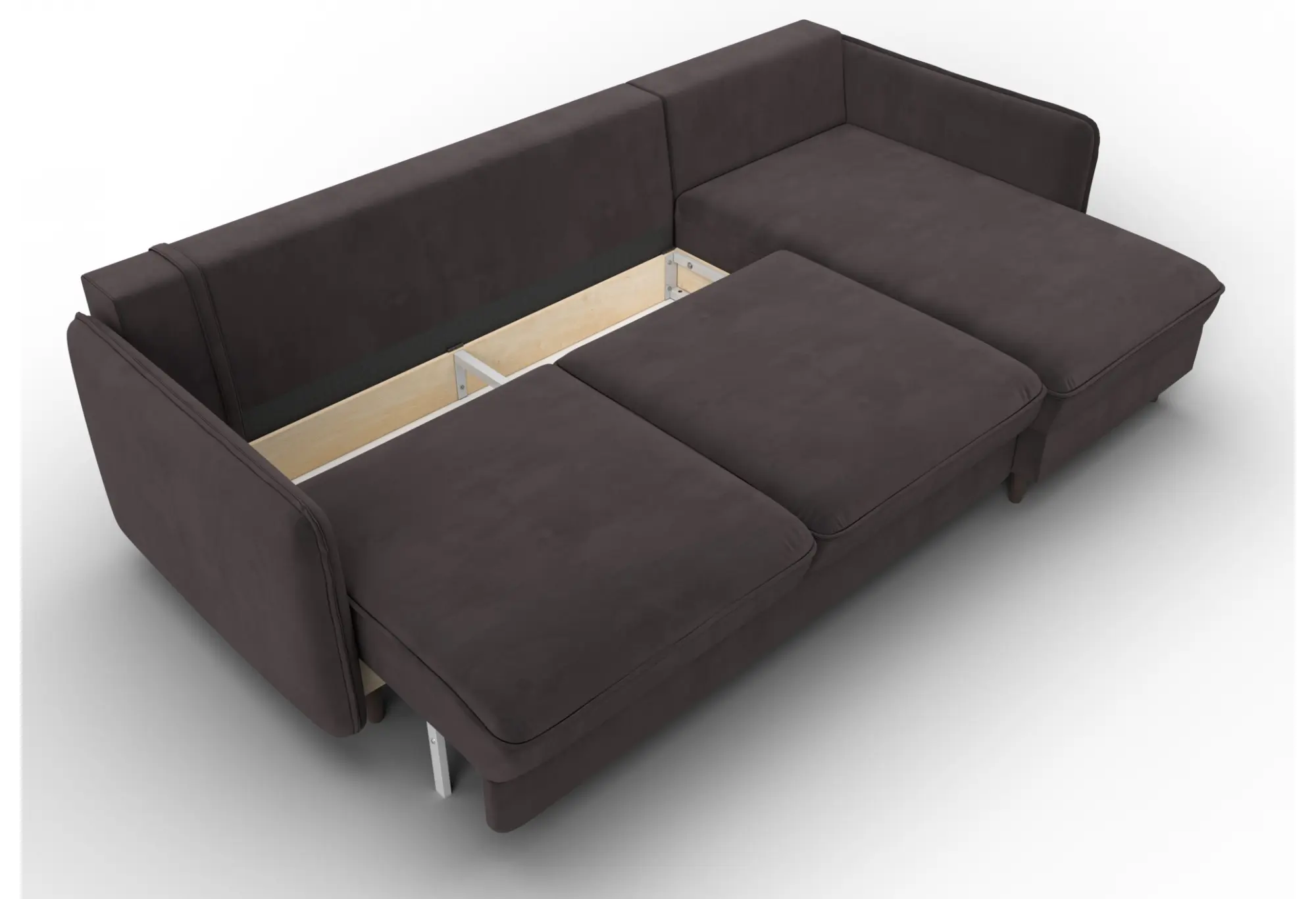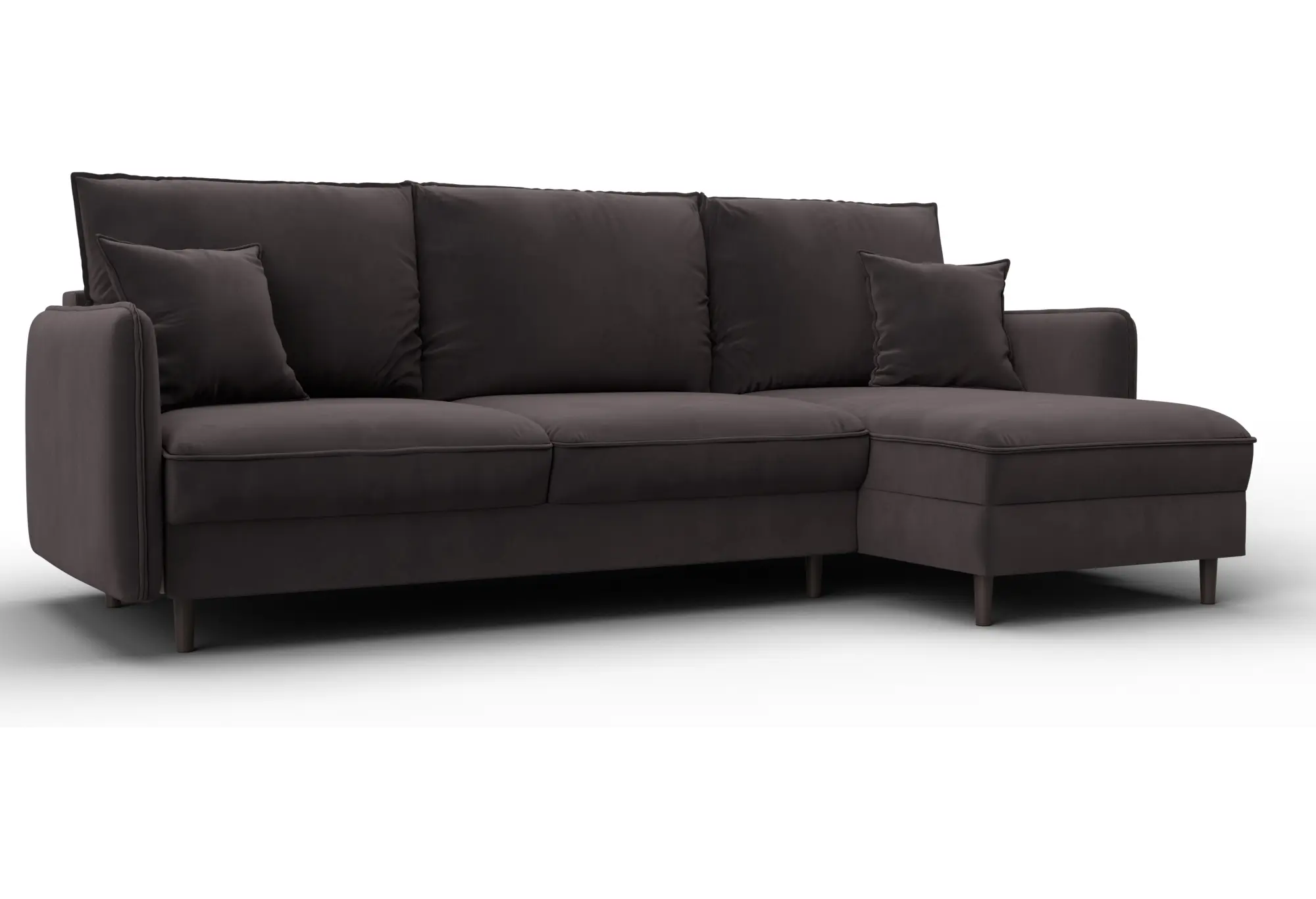 Угловой диван Лига-064 НПБ – стильное и функциональное решение для вашей гостиной. Благодаря универсальному углу и механизму трансформации "Пантограф" диван легко превращается в просторное спальное место. Элегантное коричневое велюровое покрытие добавляет уют и теплоту вашему интерьеру. Каркас из ДСП обеспечивает долговечность, а независимый пружинный блок и мягкий пенополиуретан гарантируют комфортный отдых. Диван оборудован вместительными ящиками для хранения и съемными подушками, что делает его еще более практичным.