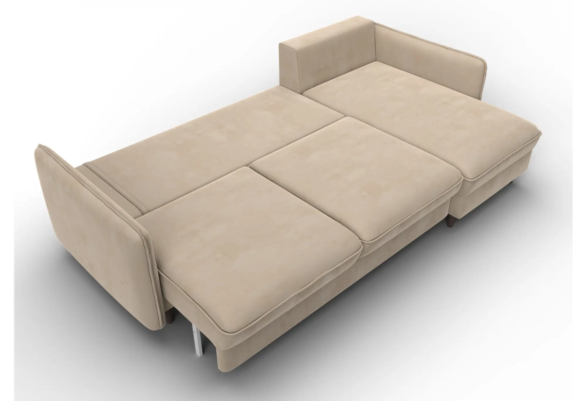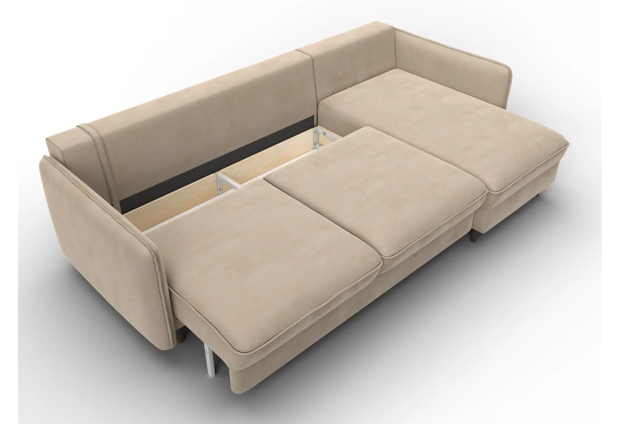 Угловой диван Лига-064 НПБ – стильный и функциональный выбор для вашей гостиной. Эта модель, выполненная из приятного на ощупь велюра в бежевом цвете, станет идеальным решением для создания уютной атмосферы. Уникальный механизм раскладки "Пантограф" позволяет с легкостью превратить диван в просторную двуспальную кровать размером 1420x2310 мм, обеспечивая комфортный отдых для вас и ваших гостей.