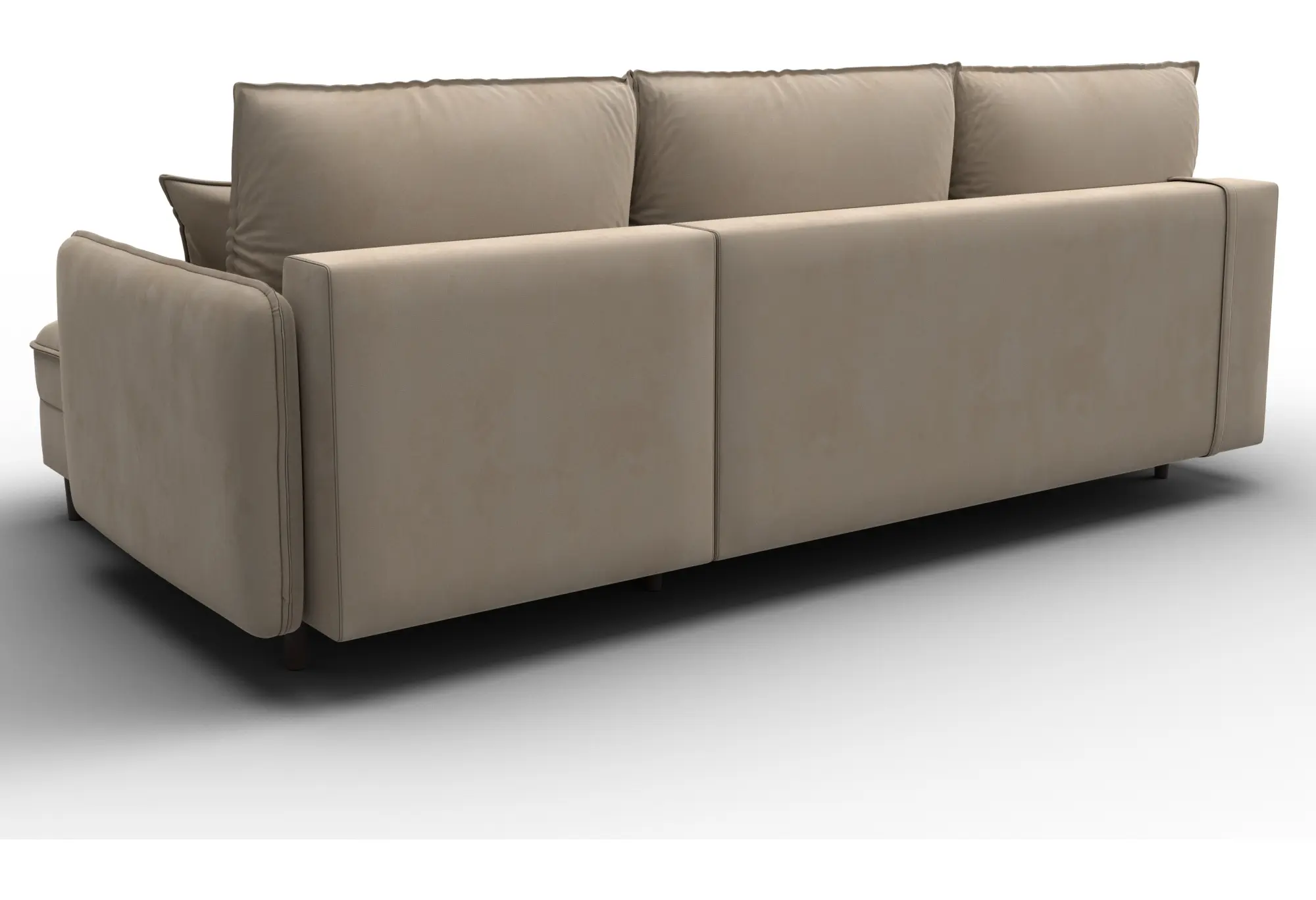 Диван поддерживается прочным каркасом из ДСП, обеспечивая надежность и долговечность конструкции. Встроенный независимый пружинный блок и наполнители из ППУ гарантируют ортопедическую поддержку для вашего тела. Высокие деревянные ножки не только придают изделию дополнительную устойчивость, но и позволяют легко использовать пространство под ним для уборки.