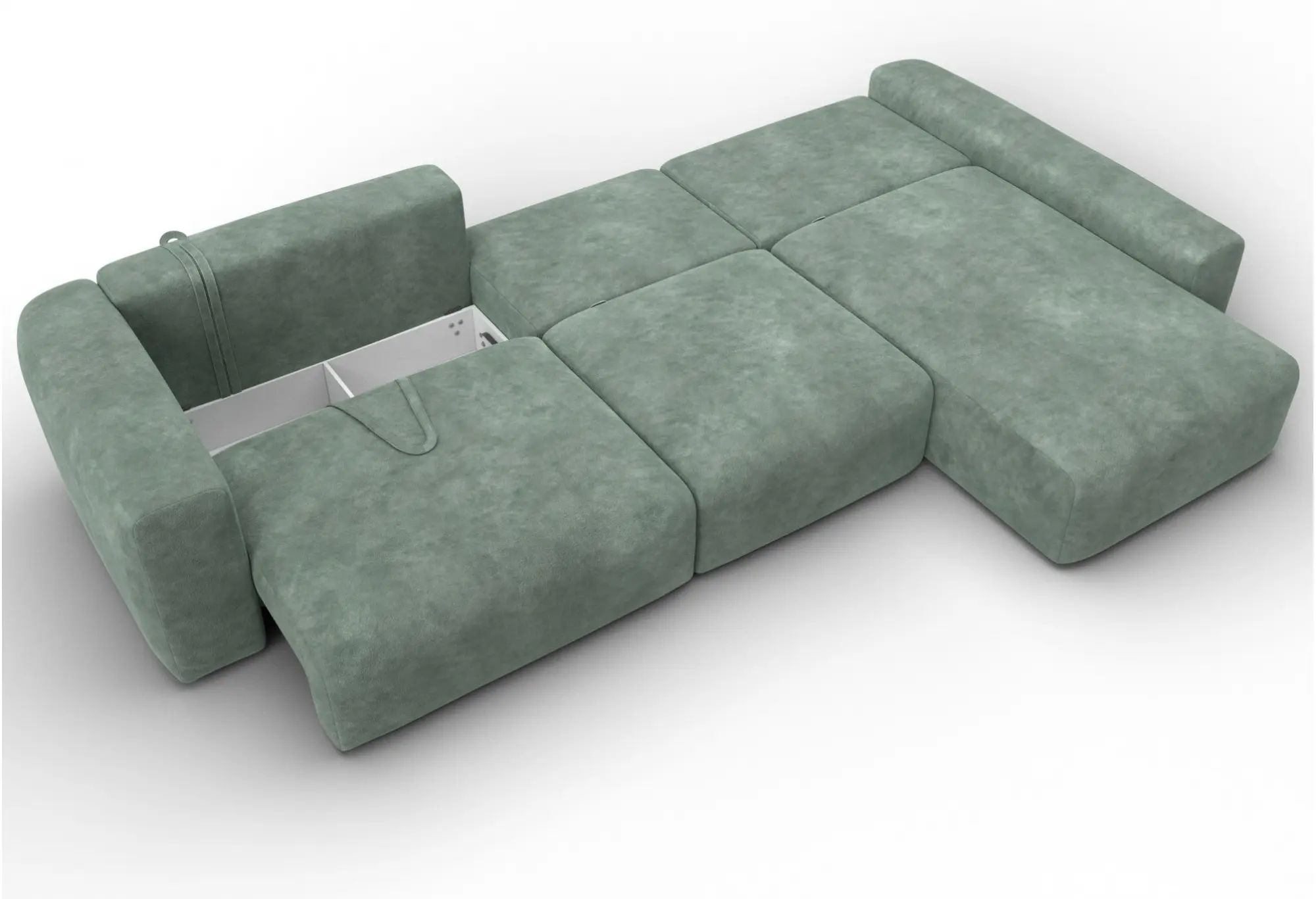 Угловой диван Лига-066 Лонг — это сочетание современного стиля и высокой функциональности. Его лаконичный дизайн в зеленом велюре легко впишется в любой интерьер, добавляя уют и атмосферу элегантности. Встроенный механизм "Еврокнижка" позволяет быстро трансформировать его в просторную кровать размером 2220x1600 мм, обеспечивая комфортный отдых для двоих.