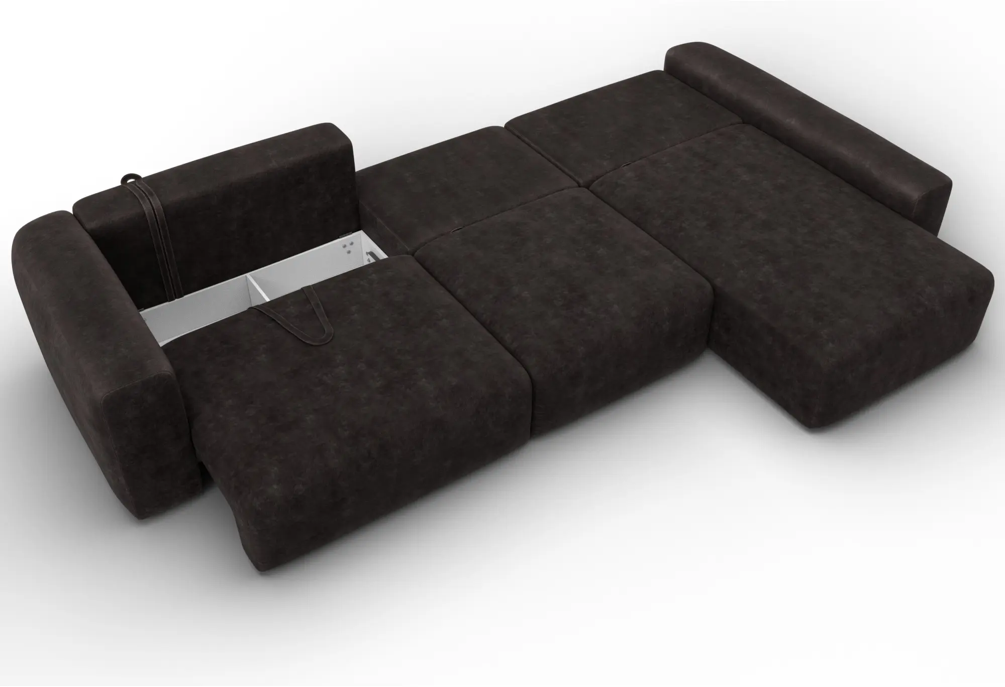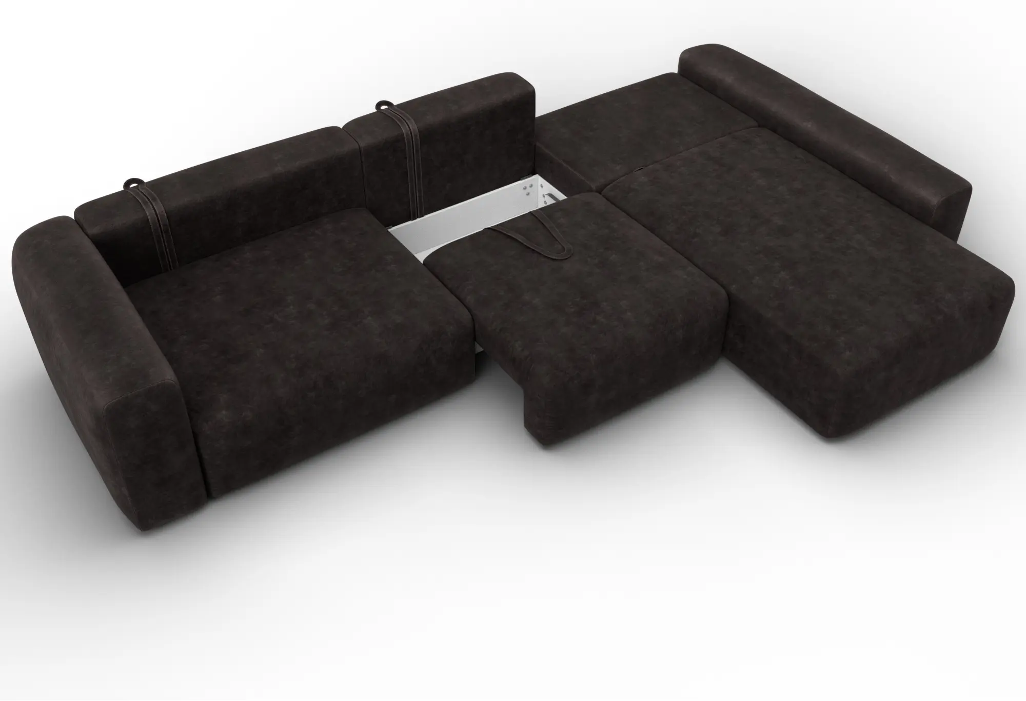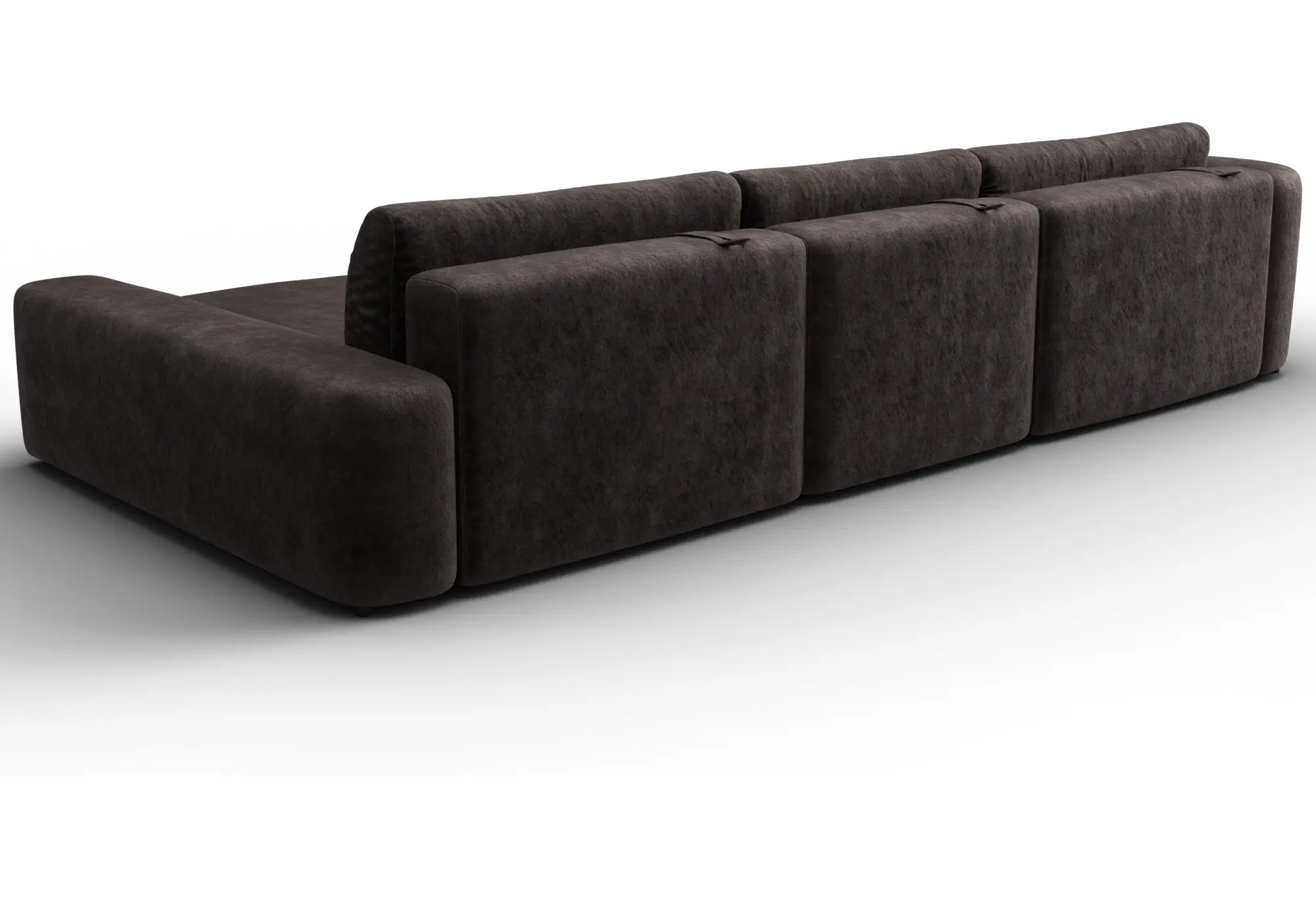 Угловой диван Лига-066 Лонг – гармоничное сочетание современного стиля и практичности. Модель с правым углом выполнена в изысканном коричневом велюре и моментально преобразует любой интерьер гостиной. Великолепный механизм трансформации "Еврокнижка" позволяет без усилий превратить диван в просторное спальное место размером 2220x1600 мм.