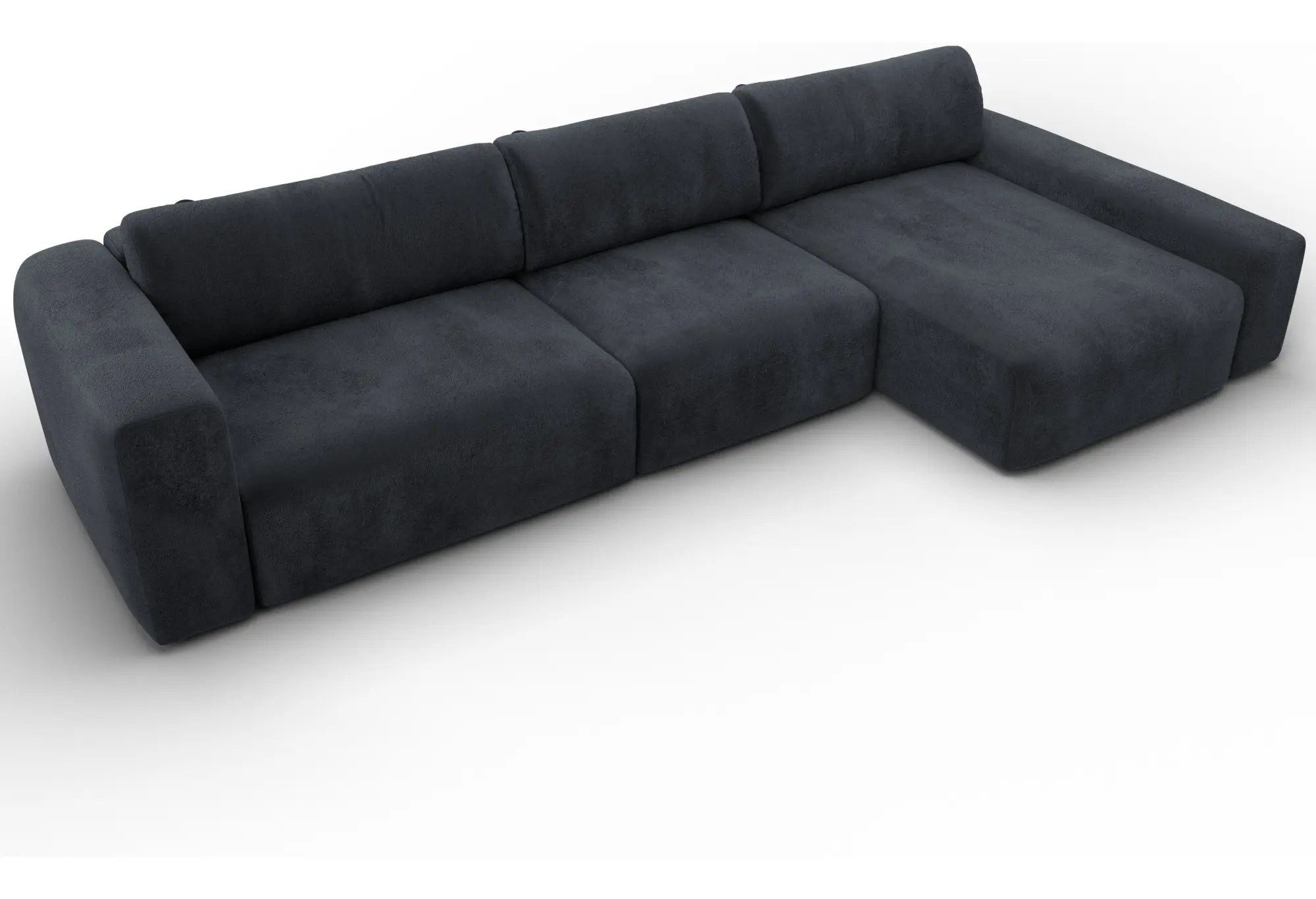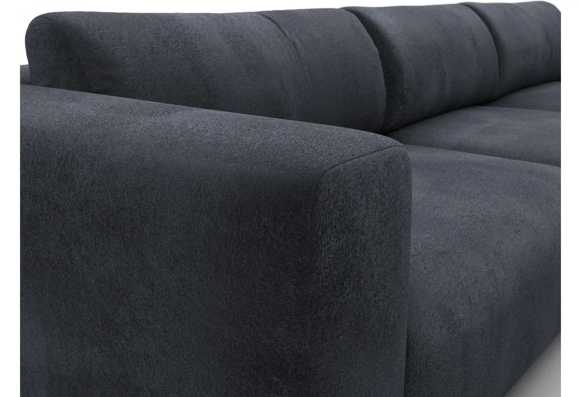 Угловой диван Лига-066 Лонг предлагает изысканную комбинацию современного дизайна и практичности. Его стильный вид в темно-сером велюре идеально вписывается в любой интерьер, добавляя уют и элегантность. Способность трансформироваться в просторное спальное место размером 2220x1600 мм делает его отличным решением для гостей или повседневного использования.