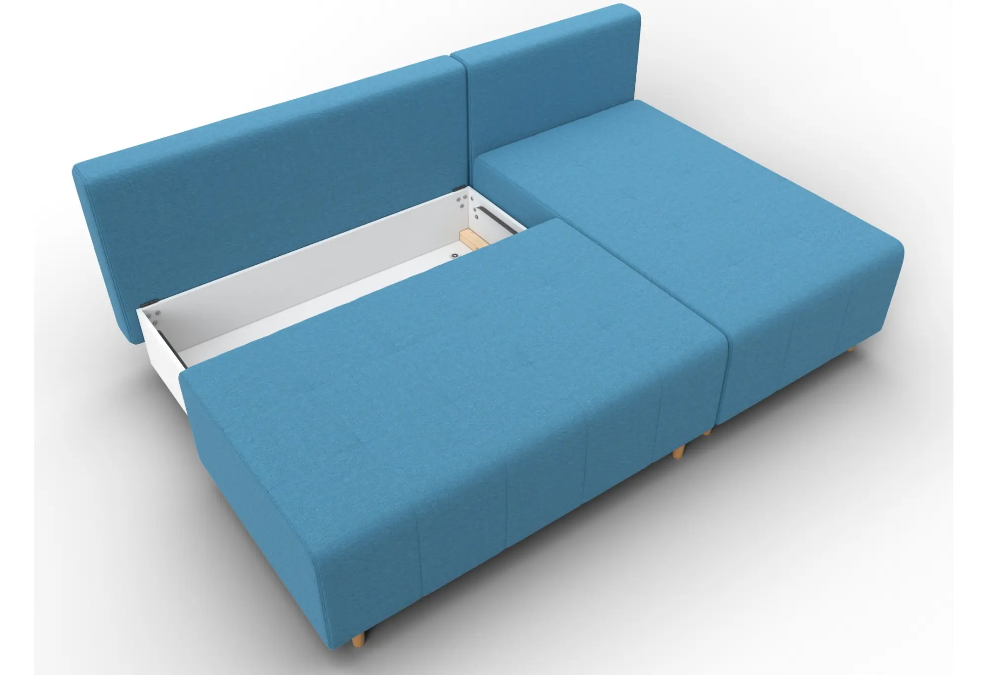 Функция универсального угла позволяет собрать диван в зависимости от требуемого расположения, а устойчивые деревянные ножки обеспечивают дополнительную прочность и надёжность конструкции. Отсутствие подлокотников добавляет эстетики и расширяет возможности по размещению мебели.