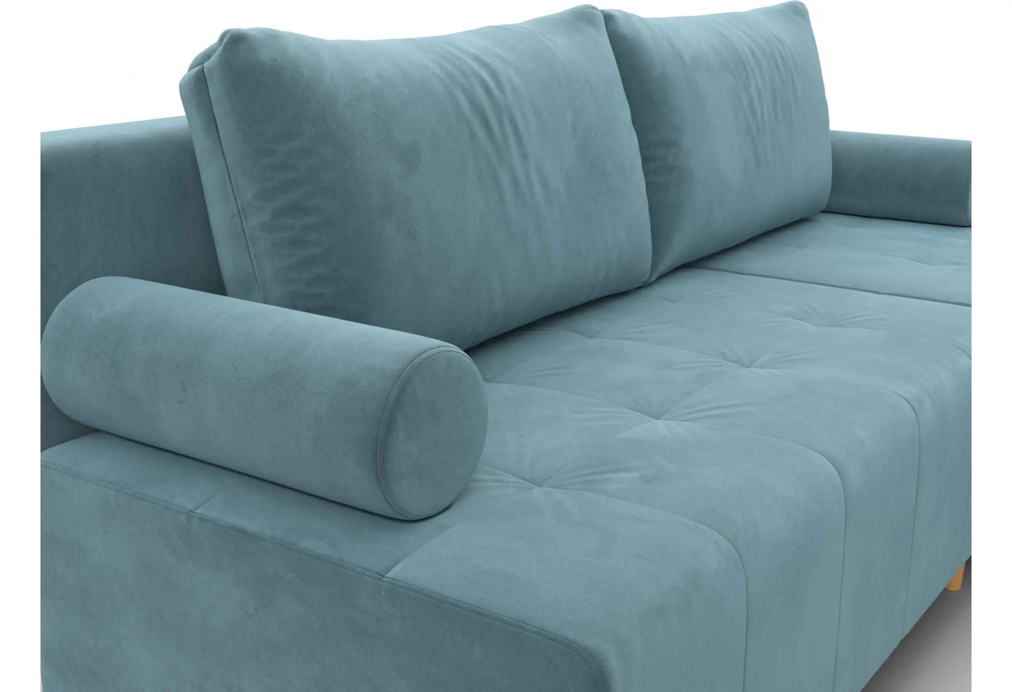 Угловой диван Лига-102 в эффектном бирюзовом велюре станет стильным акцентом в вашей гостиной. Компактные габариты позволяют разместить его даже в небольшом помещении, обеспечивая максимальный комфорт. Диван легко трансформируется в полноценное спальное место благодаря механизму «еврокнижка». Два больших мягких подушки на спинке добавляют уют и поддерживают комфортный отдых.