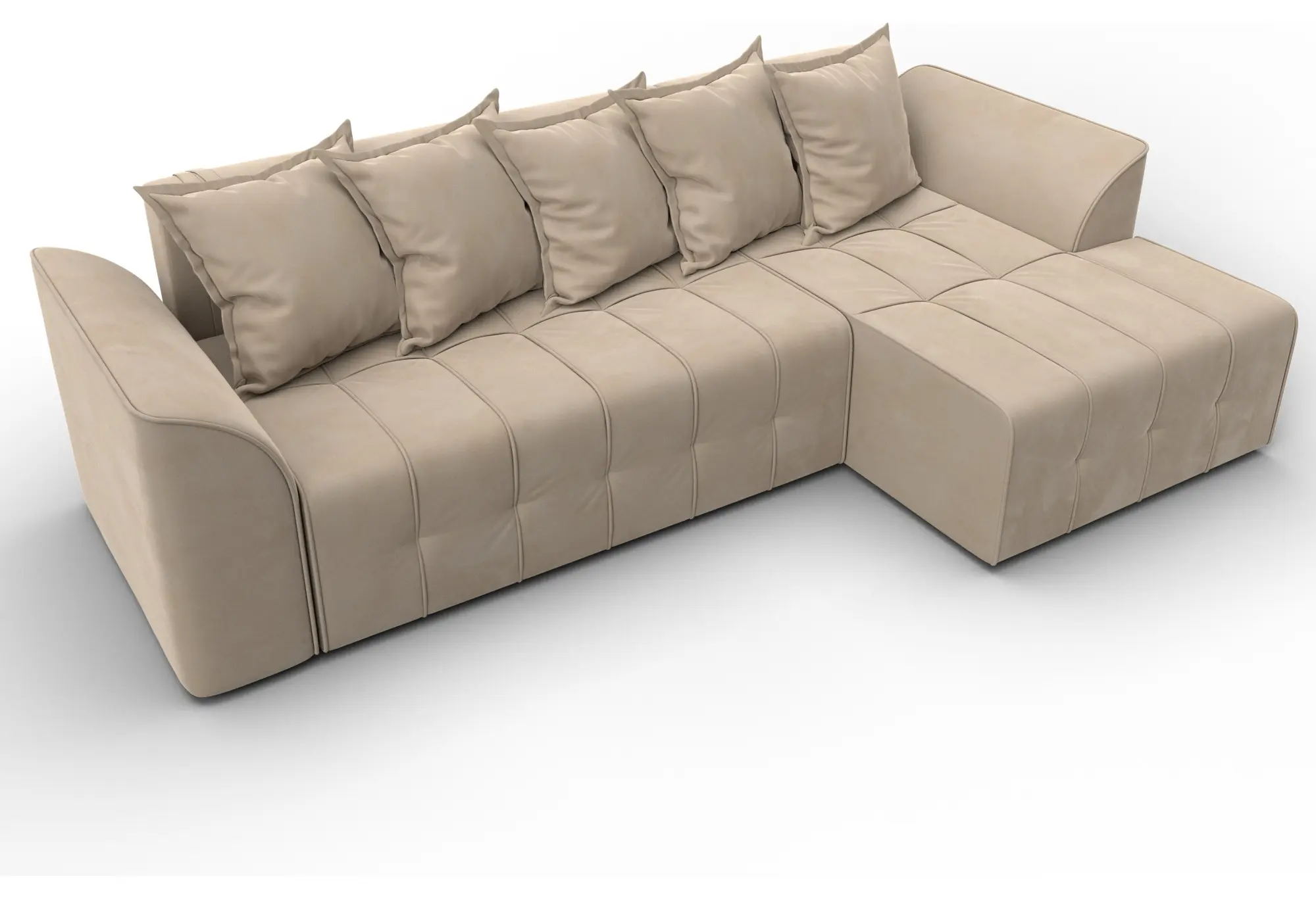 Диван угловой Лига-113 угол правый SEVEN 729 бежевый (Велюр)