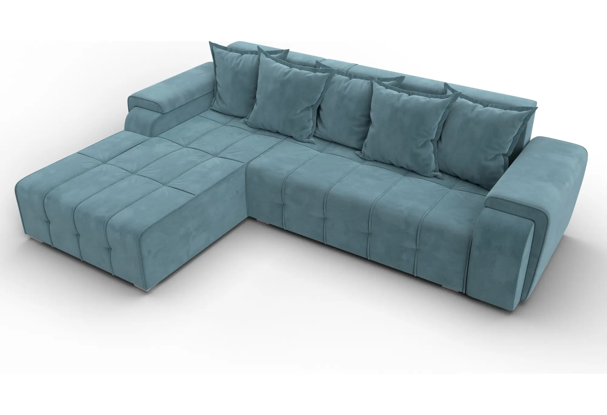Диван угловой Лига-121 левый угол SEVEN 113 бирюзовый (Велюр)