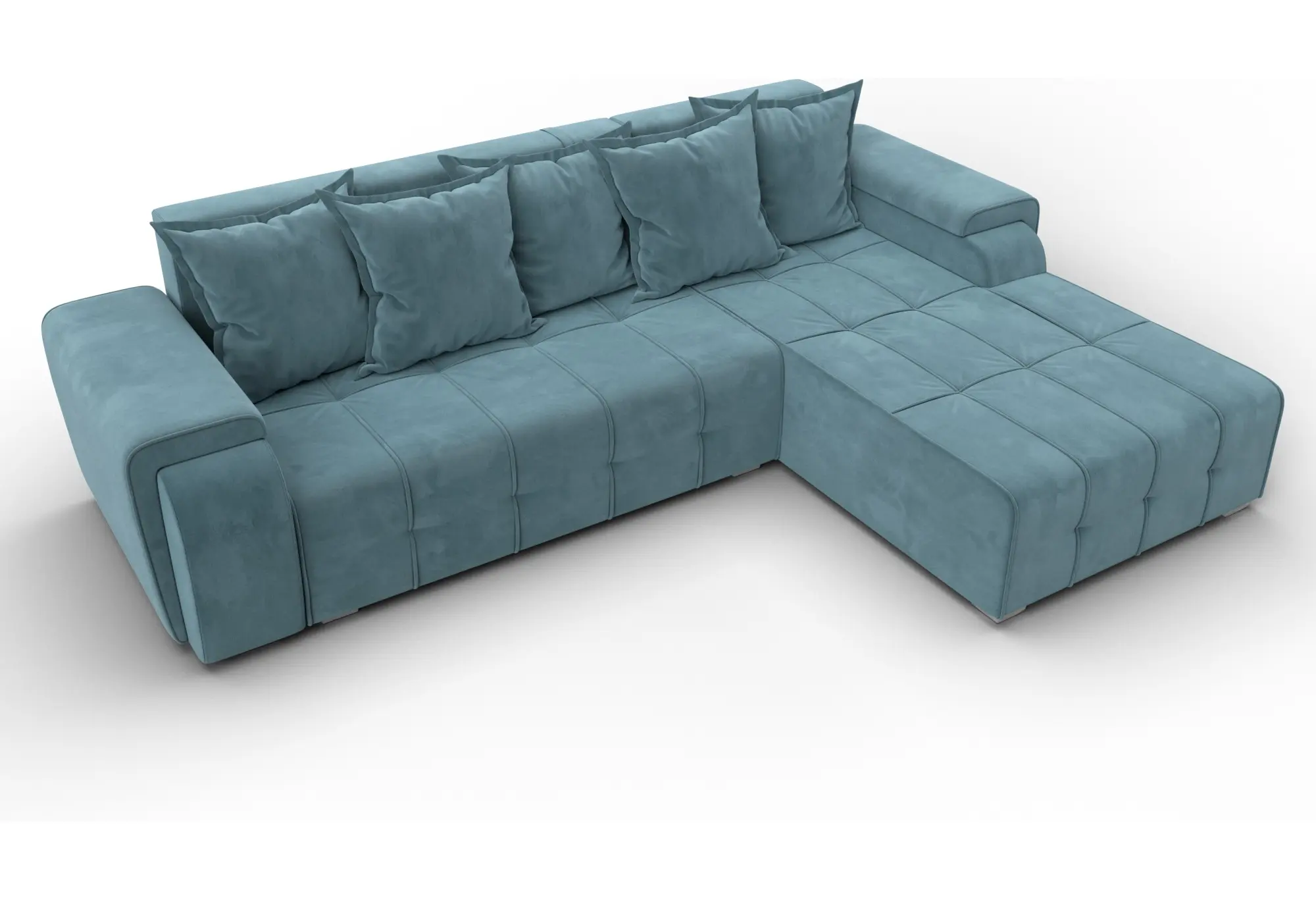 Диван угловой Лига-121 правый угол SEVEN 113 бирюзовый (Велюр)