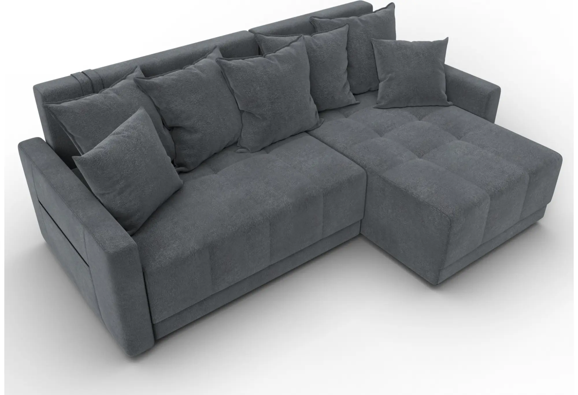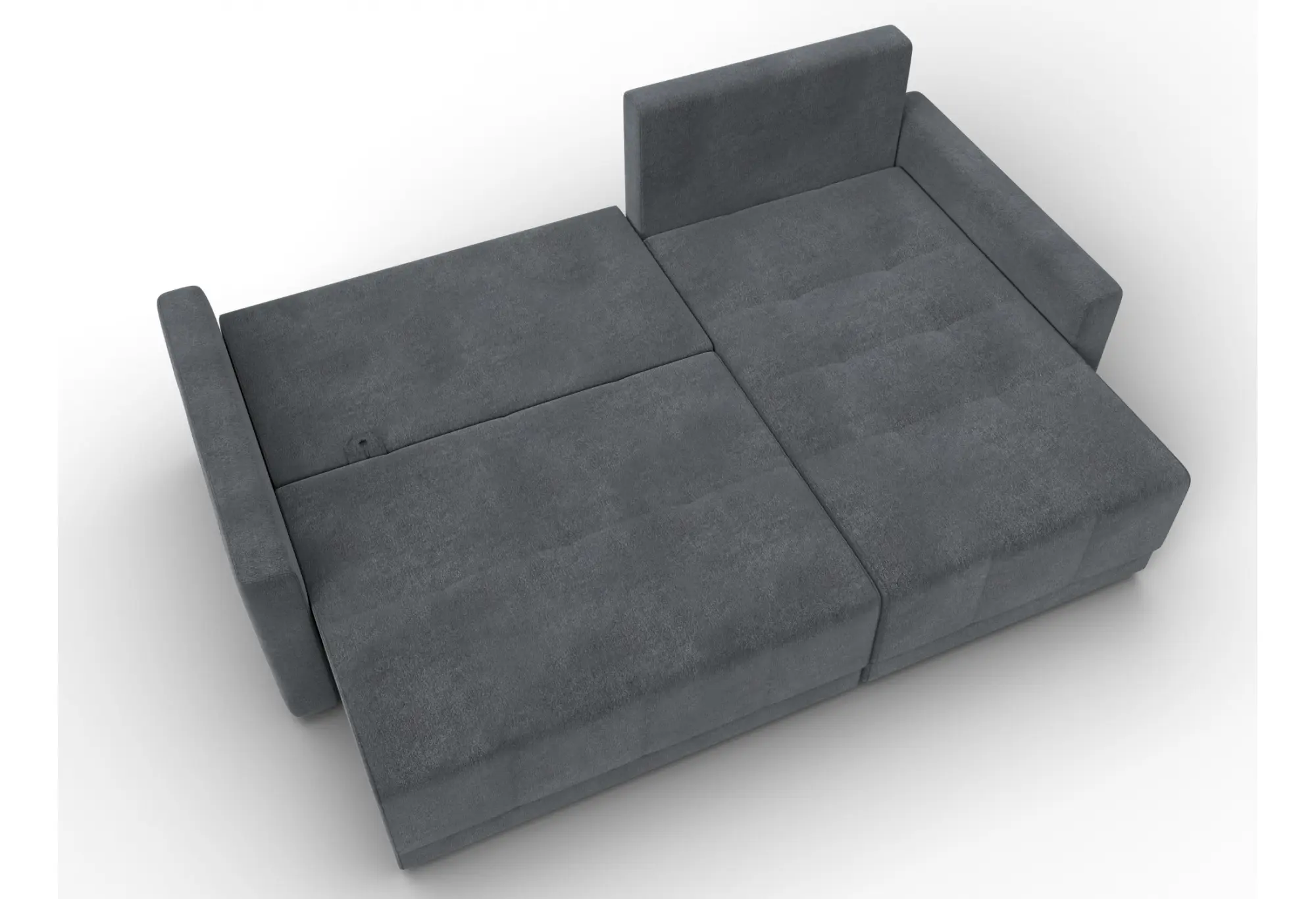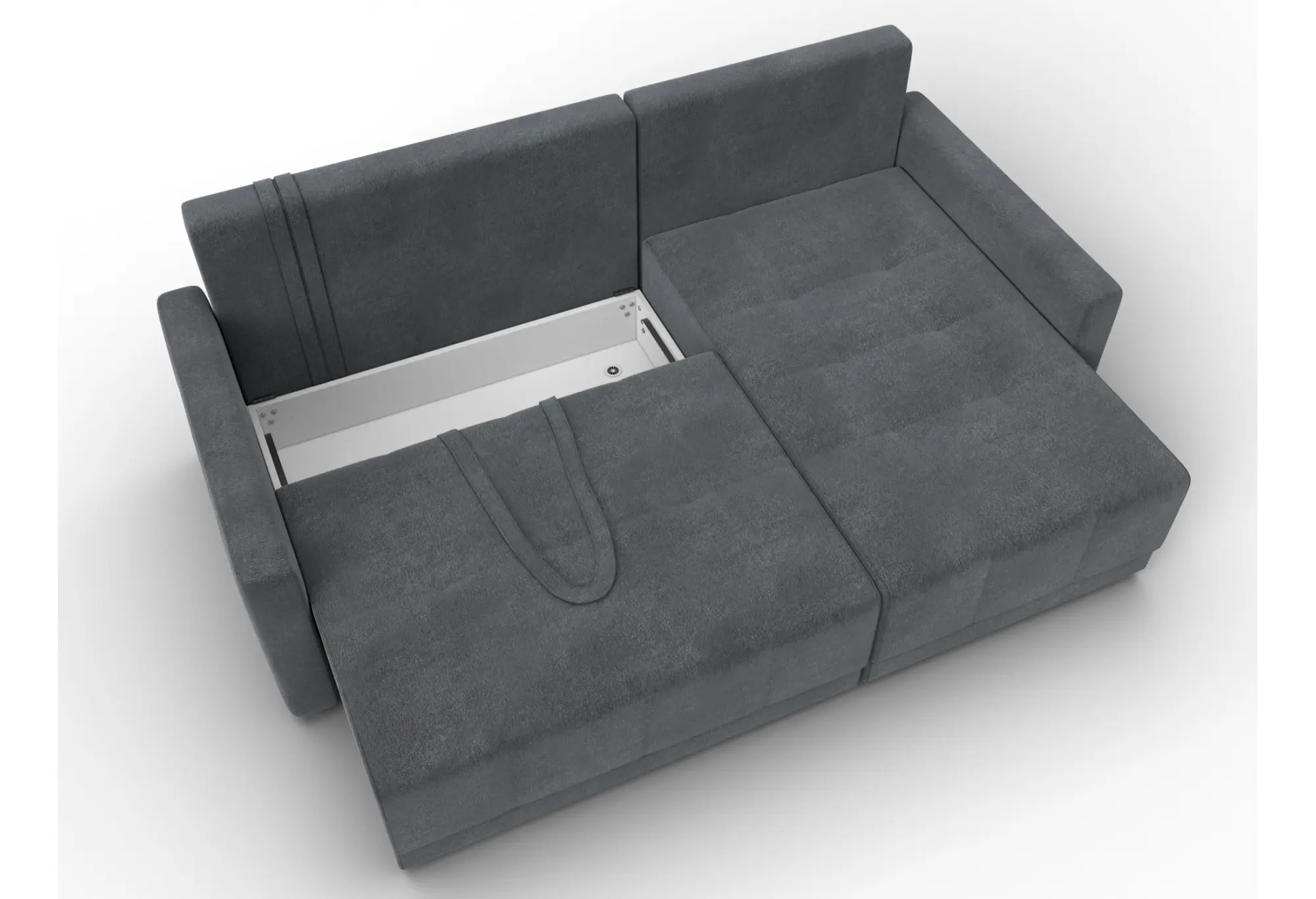 Механизм «еврокнижка» позволяет быстро превратить диван в спальное место размером 1240×1910 мм. При раскладывании сиденье выдвигается вперед, а спинка опускается, образуя ровную поверхность — на ней комфортно разместятся двое взрослых. В основании расположен вместительный бельевой ящик, где удобно хранить подушки, пледы и постельные комплекты, освобождая место в шкафах.