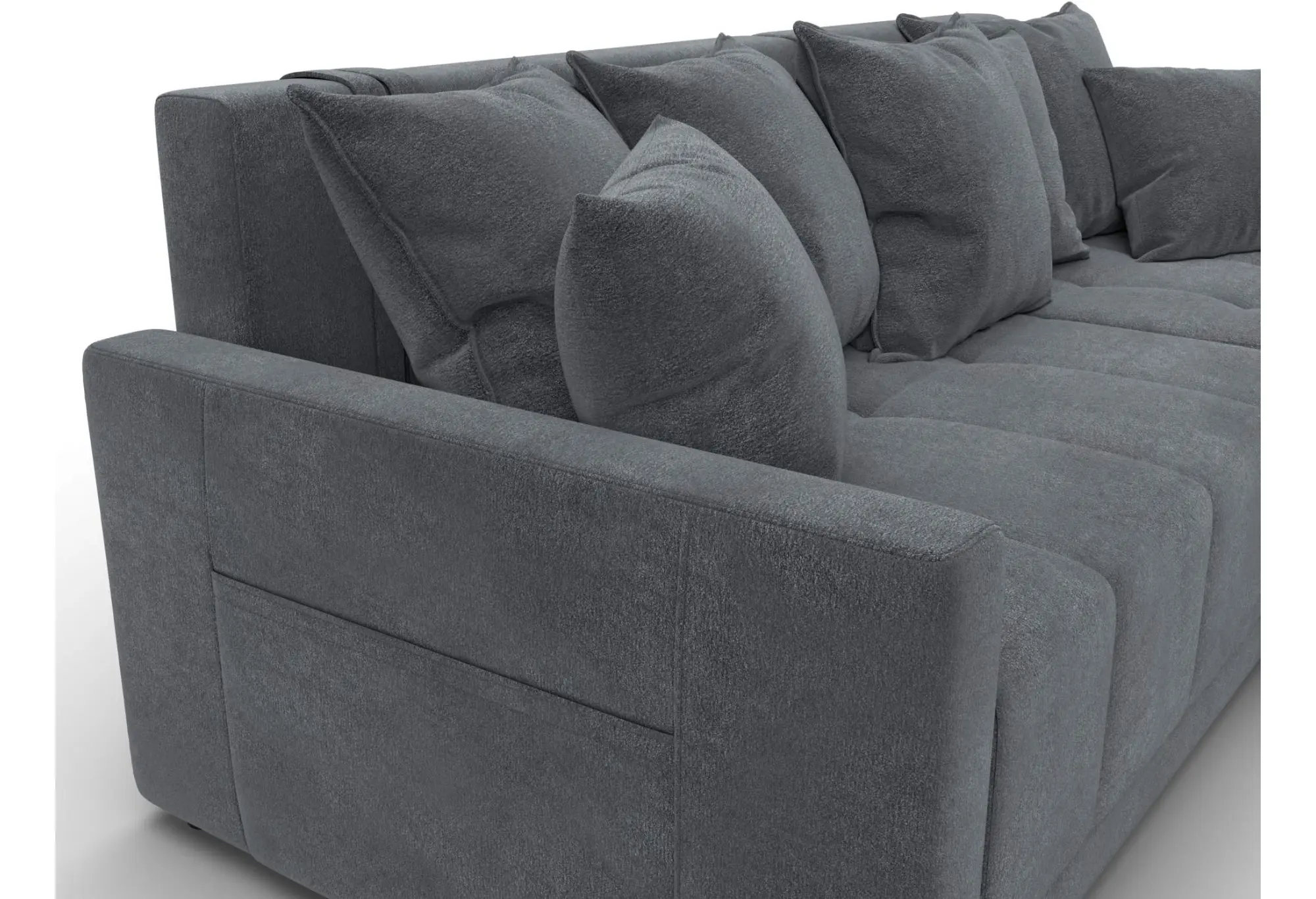 Мягкие съемные подушки формируют объемную спинку и позволяют регулировать поддержку, а прямые подлокотники создают дополнительный комфорт при отдыхе. На подлокотниках предусмотрены карманы для мелочей — в них удобно держать пульт, журналы или гаджеты. Пластиковые ножки обеспечивают устойчивость дивана и защищают нижнюю часть от случайных повреждений при уборке.
