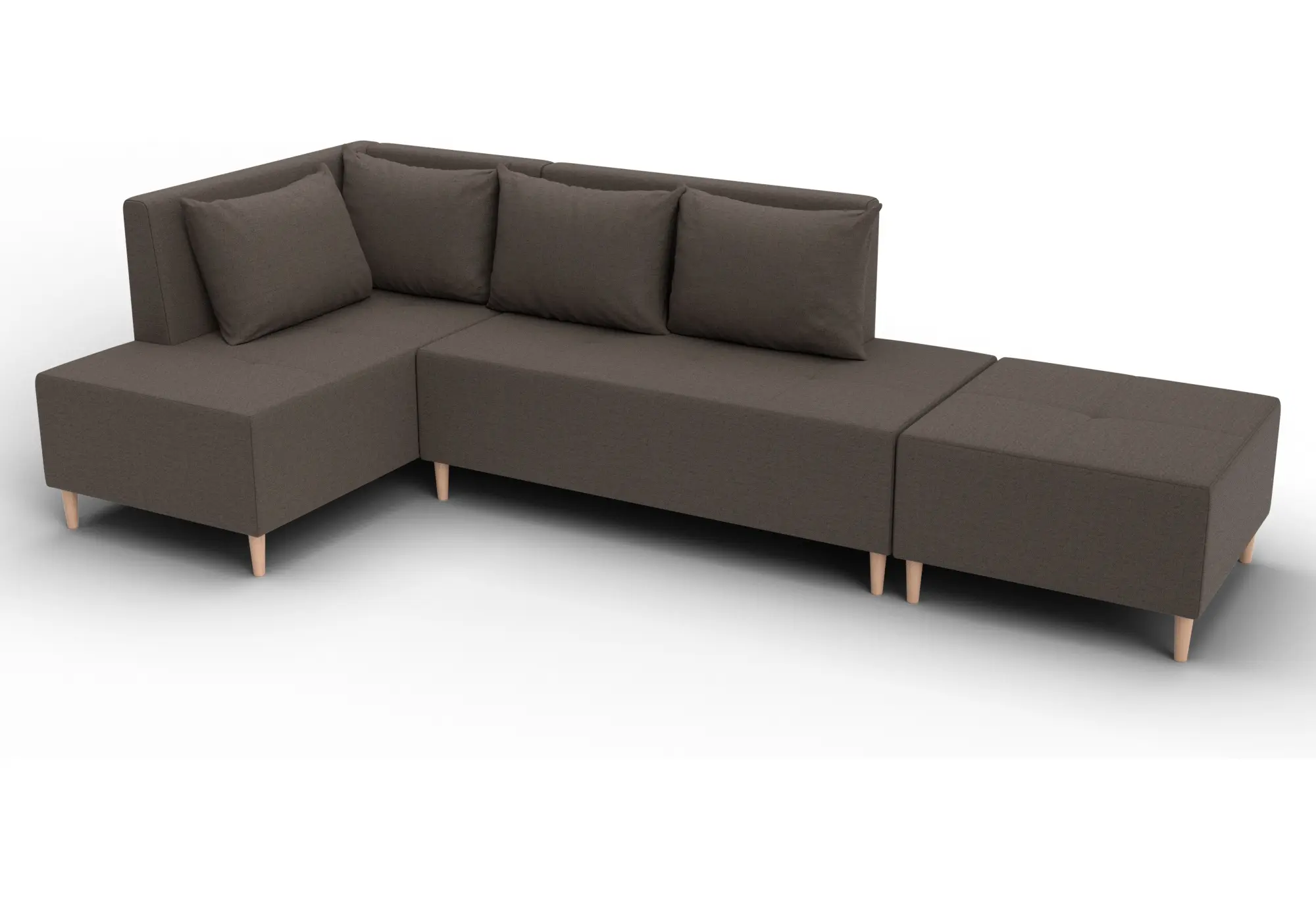 Диван угловой модульный с пуфом Лига-126 угол левый Амур 05 коричневый (Рогожка)