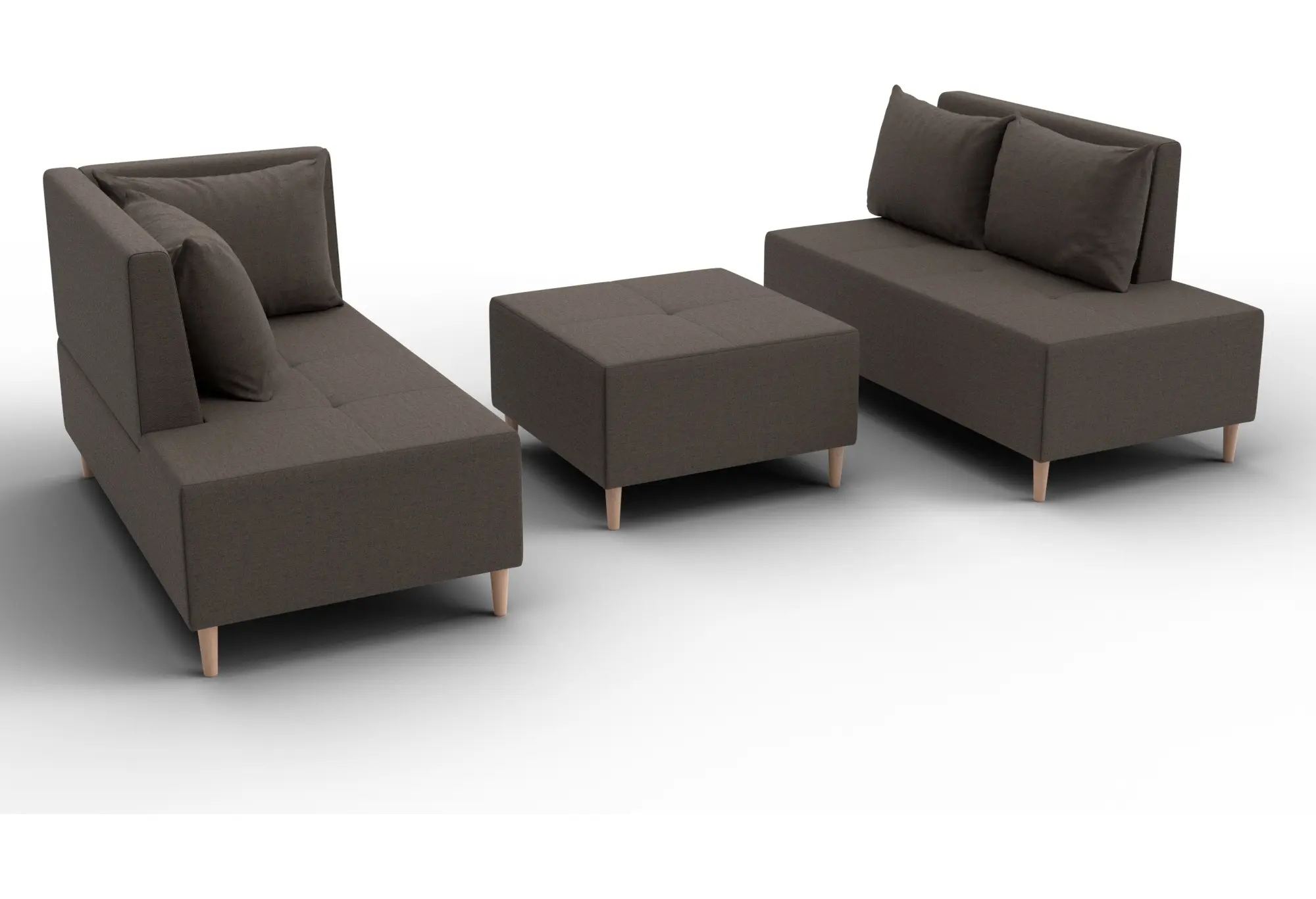 - Два основных модуля + пуф – можно собирать в разных вариациях.