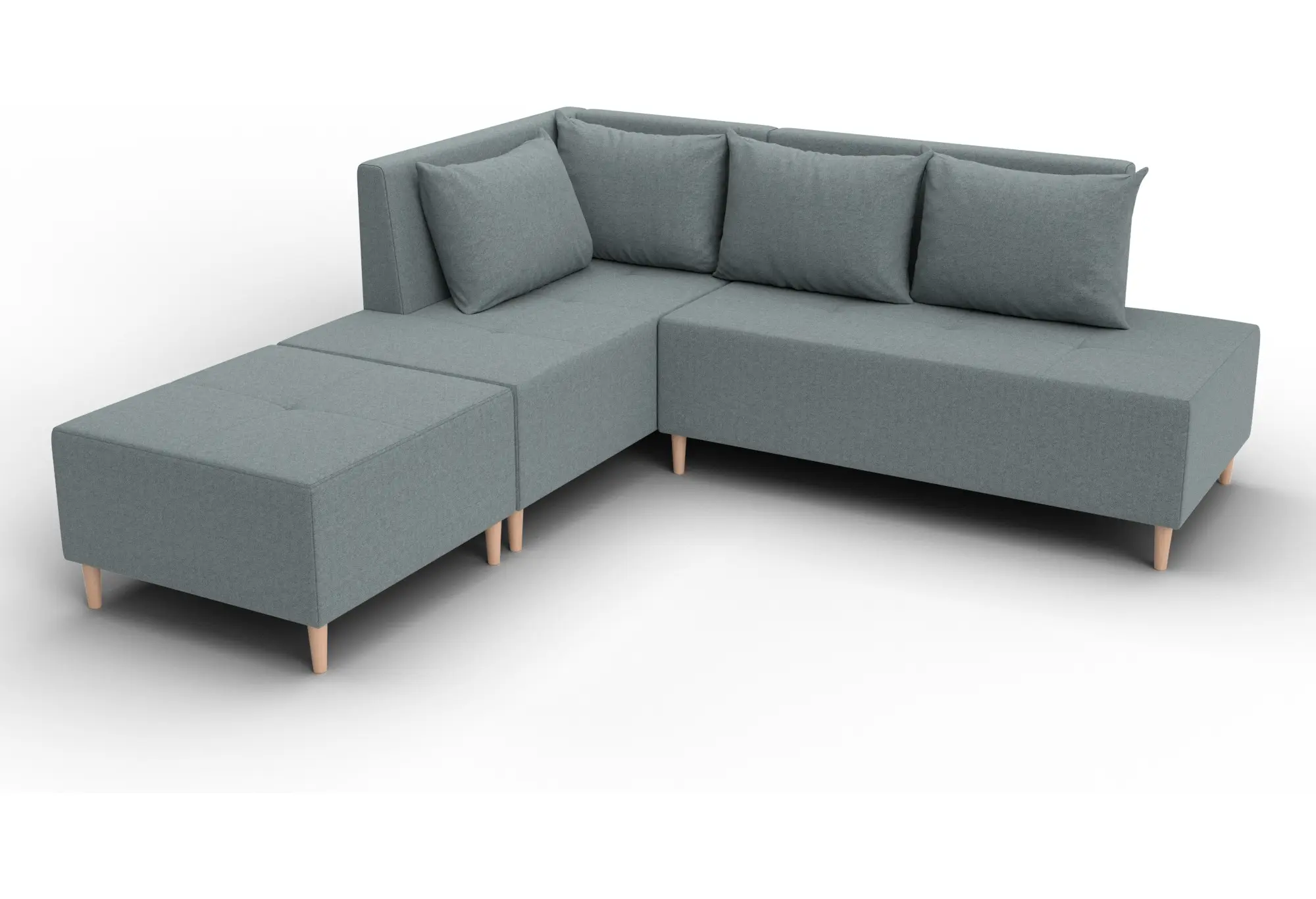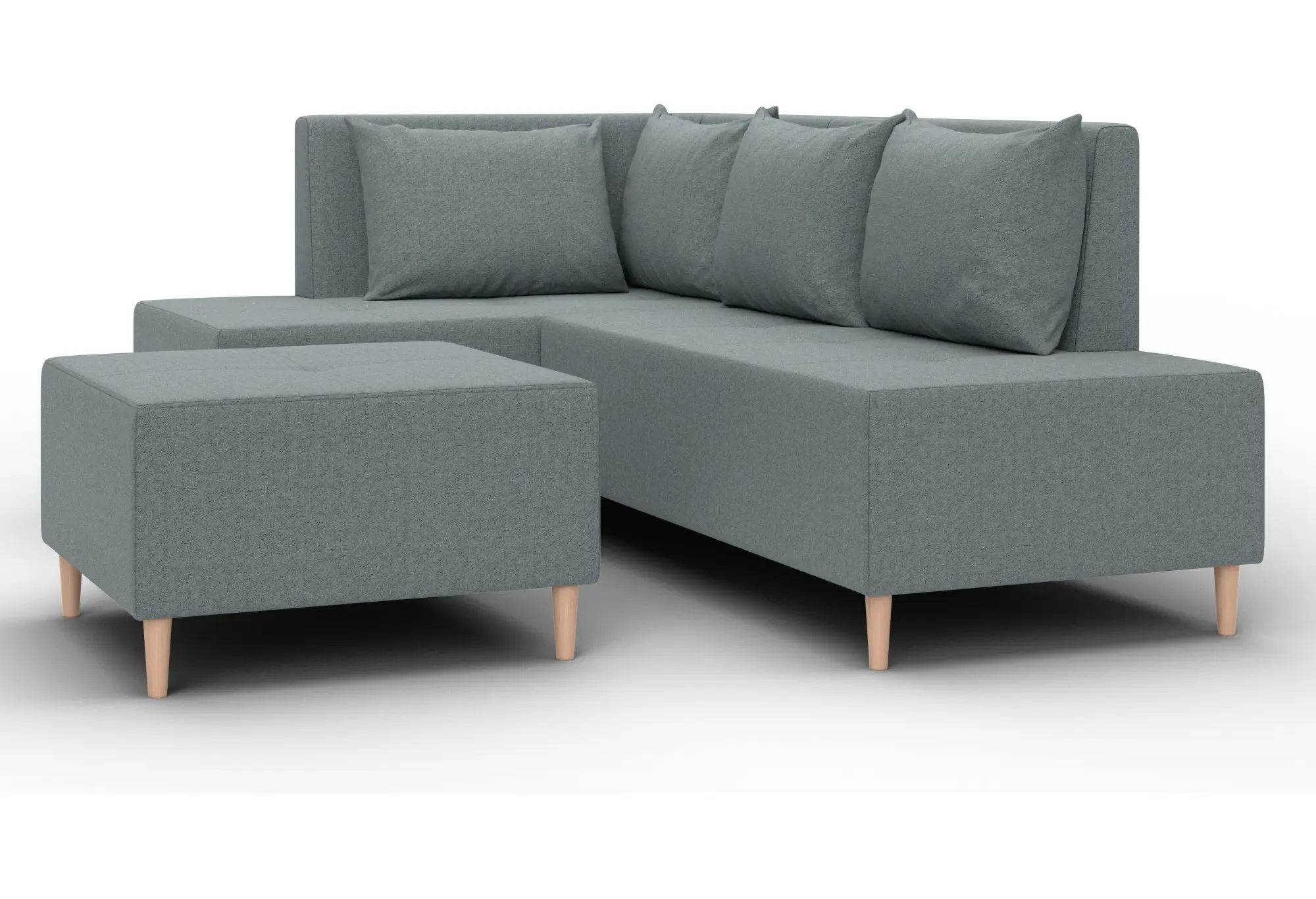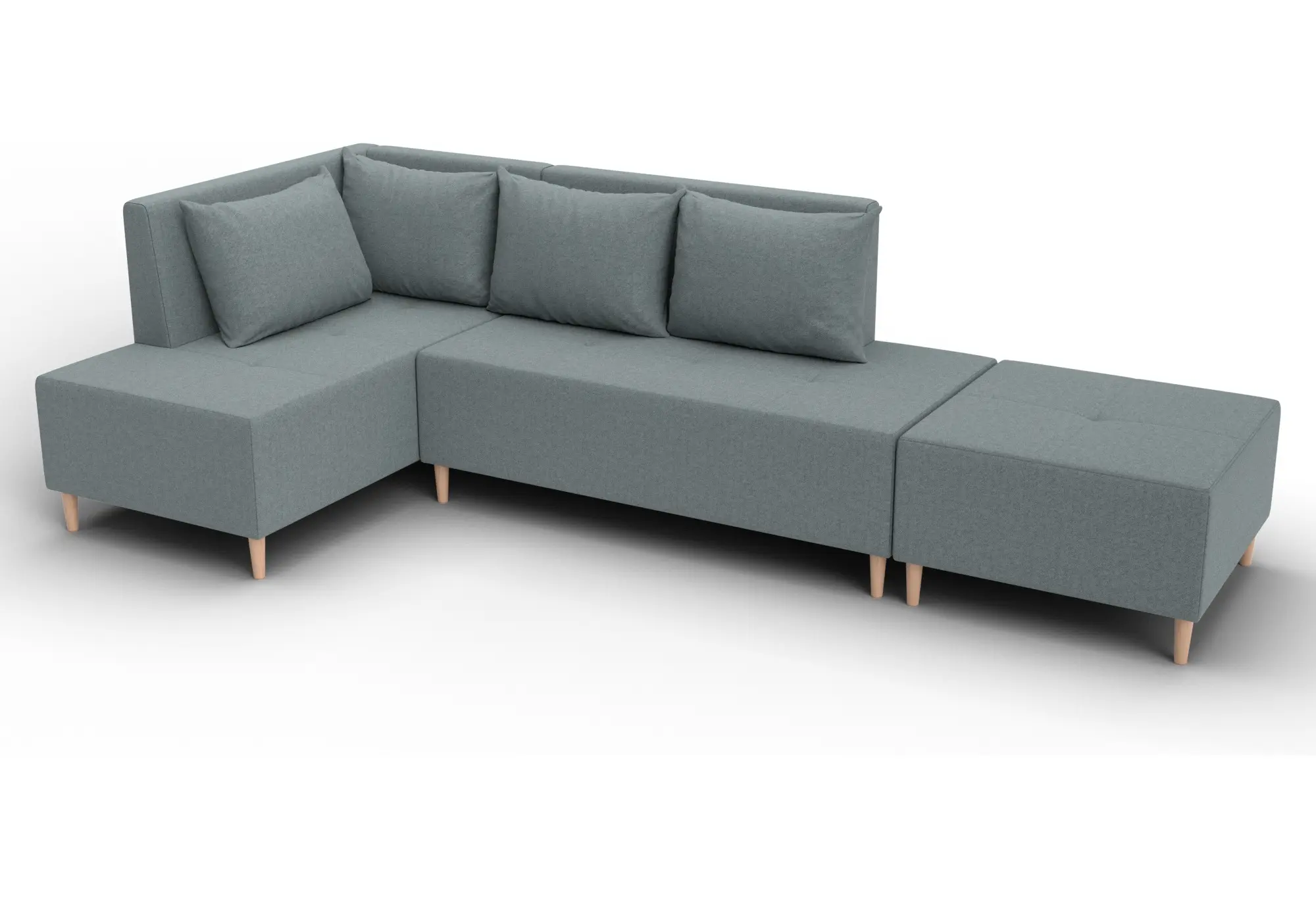 Модульный диван с пуфом Лига-126 – это современное решение для тех, кто ценит гибкость и функциональность. Модель состоит из двух основных модулей и отдельного пуфа. Вы можете собрать угловой диван, удобную зону отдыха или приставить пуф к дивану, чтобы удлинить спальное место. Прочный каркас из ДСП, ЛДСП, фанеры и бруса гарантирует надёжность и долгий срок службы. Мягкие съёмные подушки обеспечивают комфорт, а пуф (75×75×42 см) можно использовать как дополнительное сиденье, подставку для ног или небольшой столик. Высокие деревянные ножки придают дивану элегантный вид и облегчают уборку. Спальное место – 60×197 см. Широкий выбор расцветок.