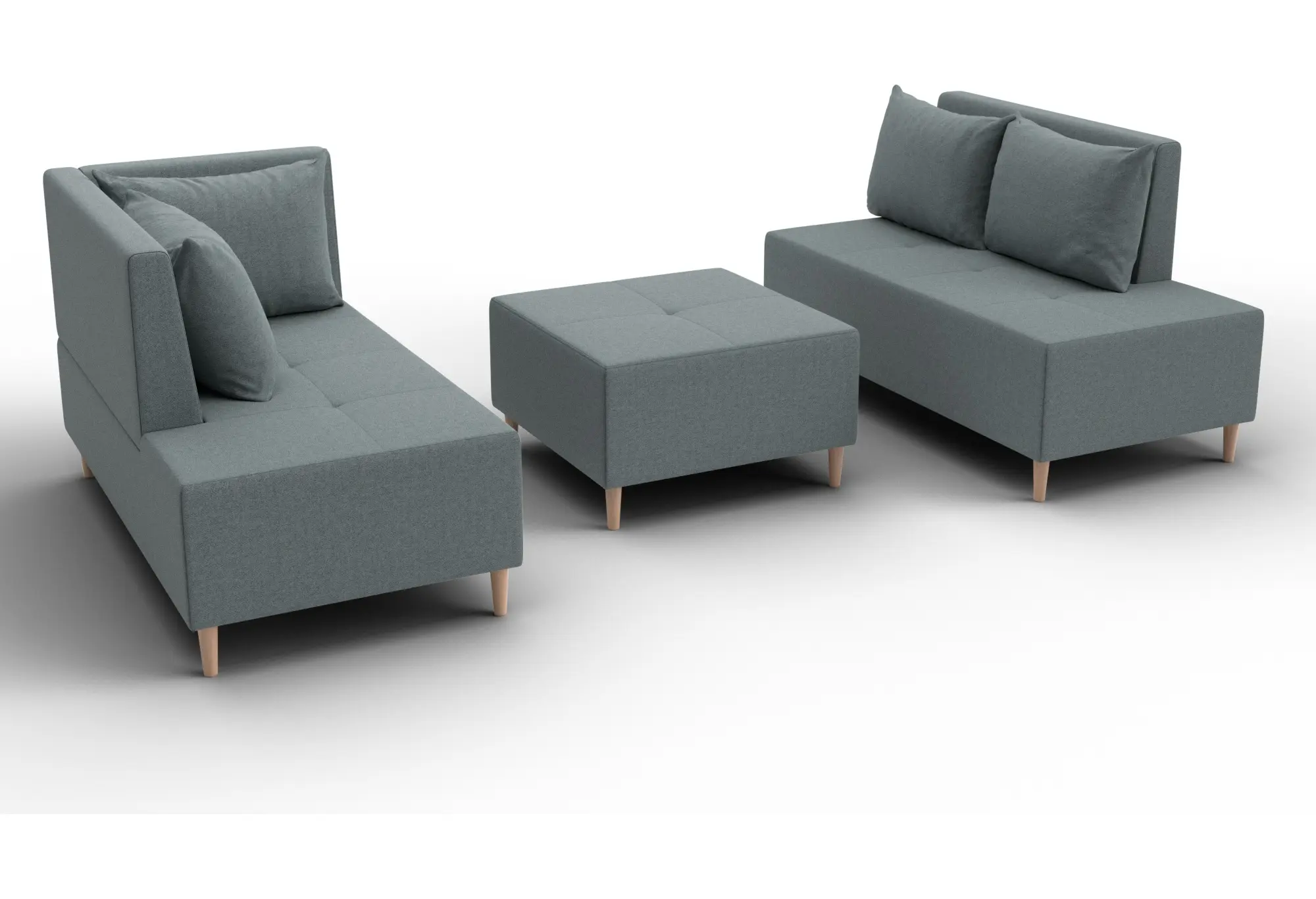 - Два основных модуля + пуф – можно собирать в разных вариациях.