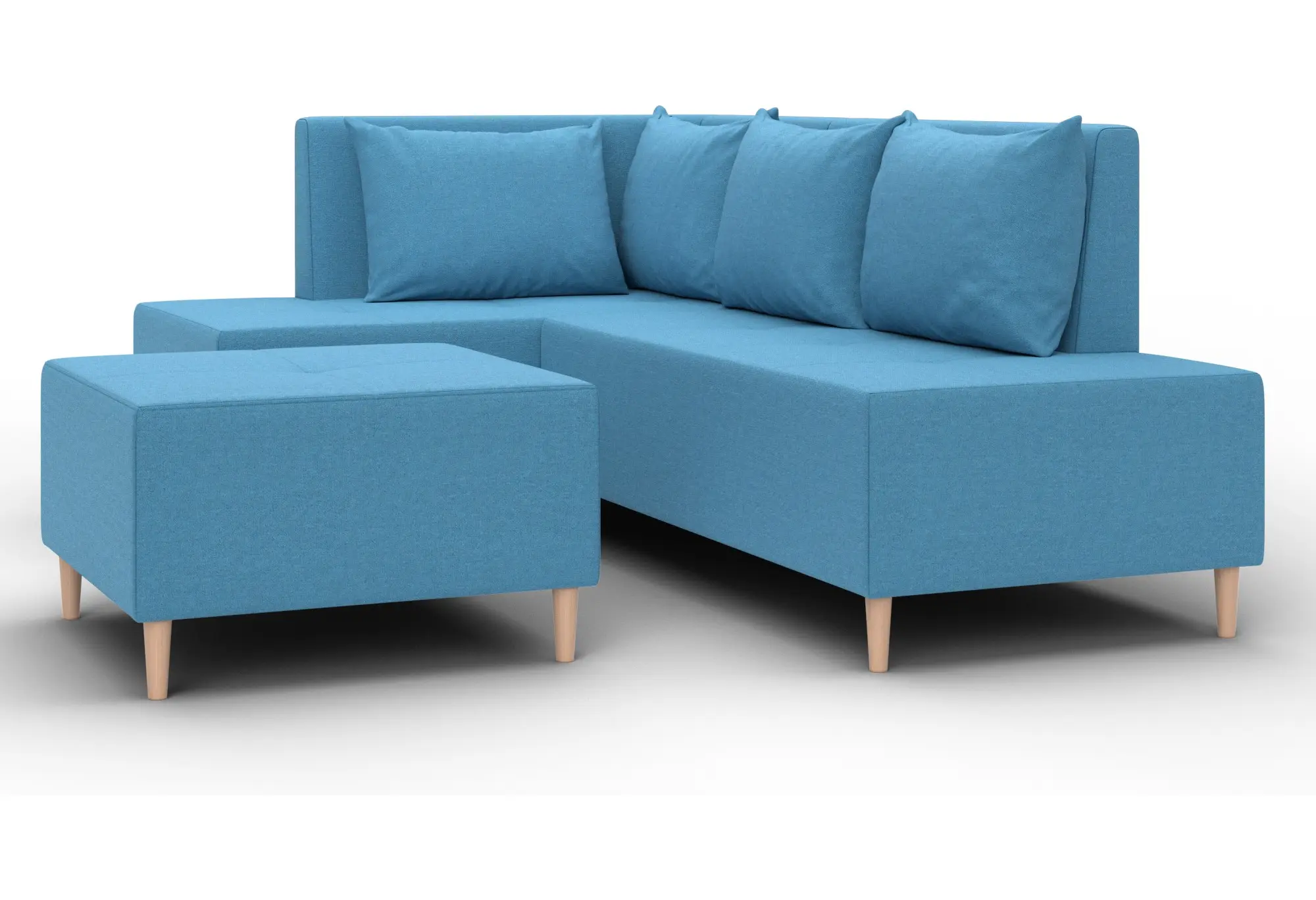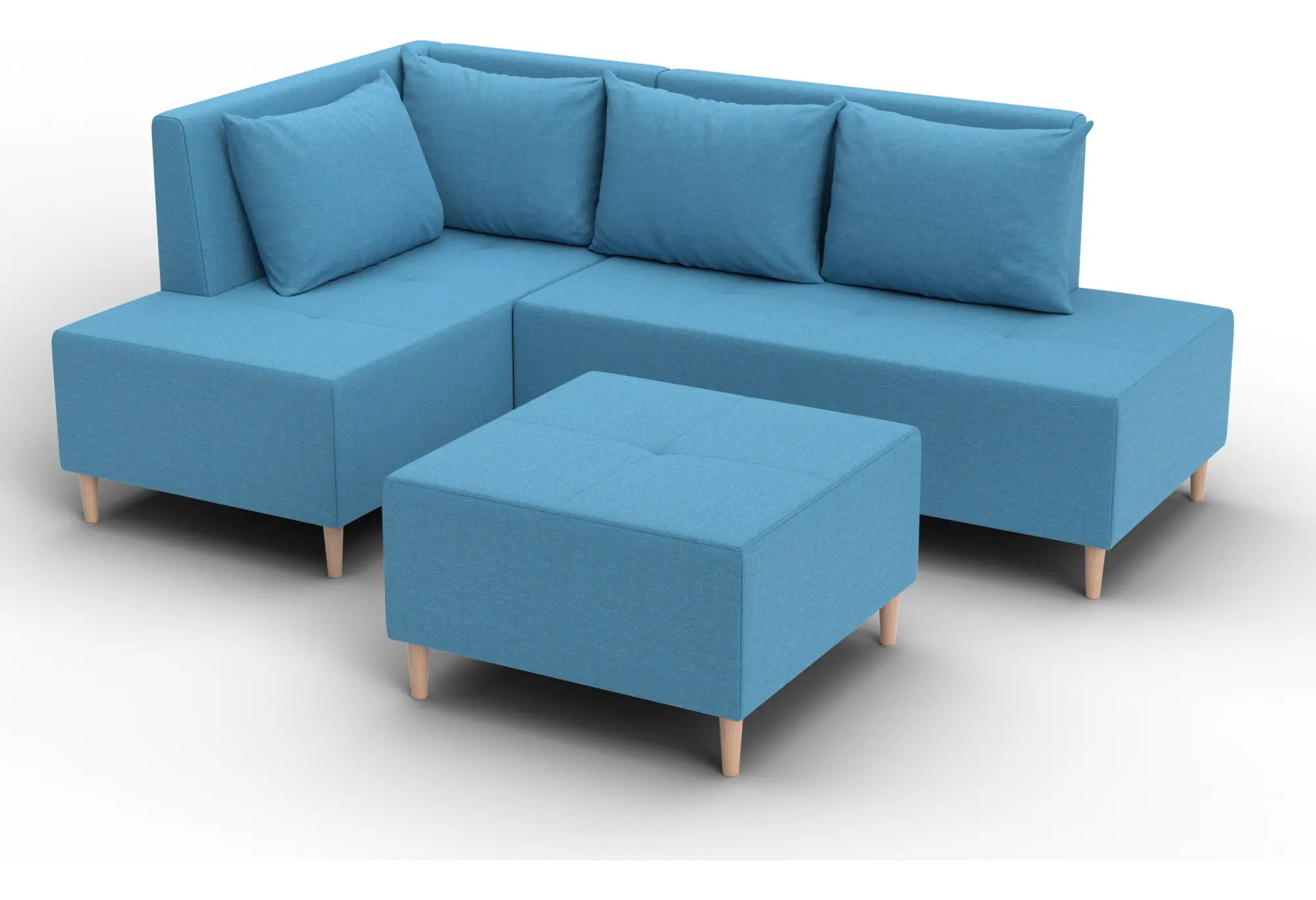 Диван угловой модульный с пуфом Лига-126 угол левый Амур 10 голубой (Рогожка)