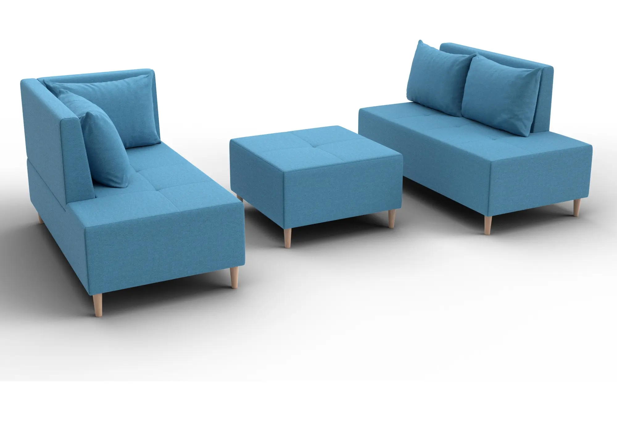 - Два основных модуля + пуф – можно собирать в разных вариациях.