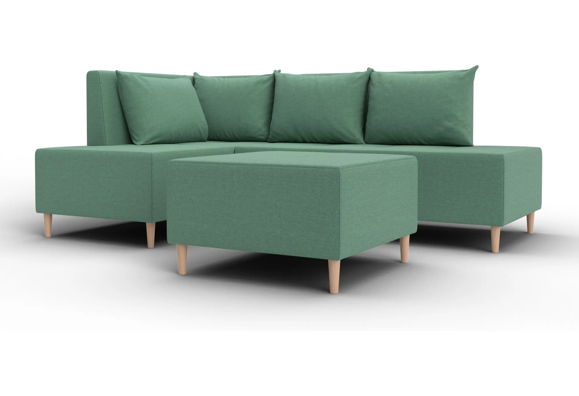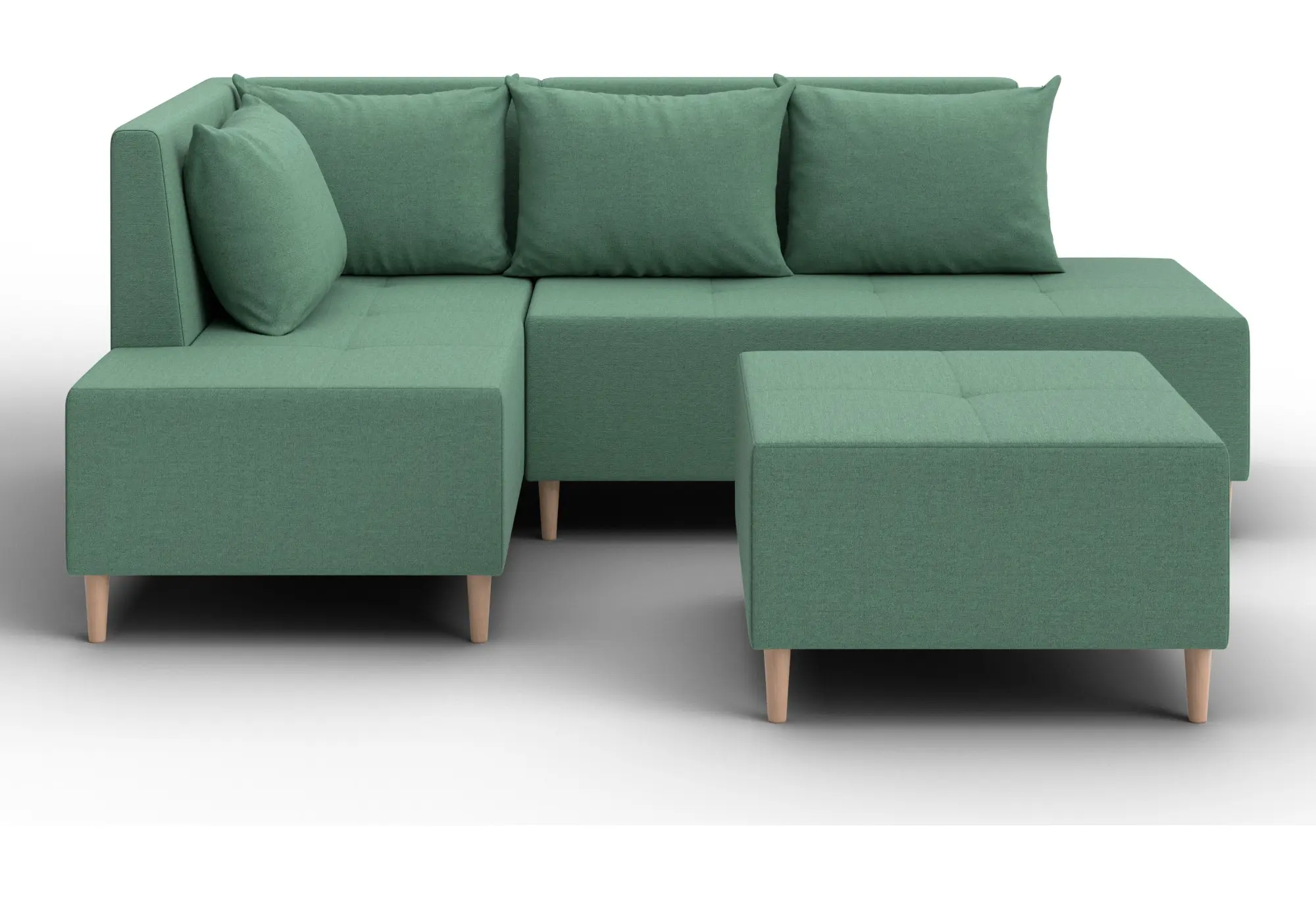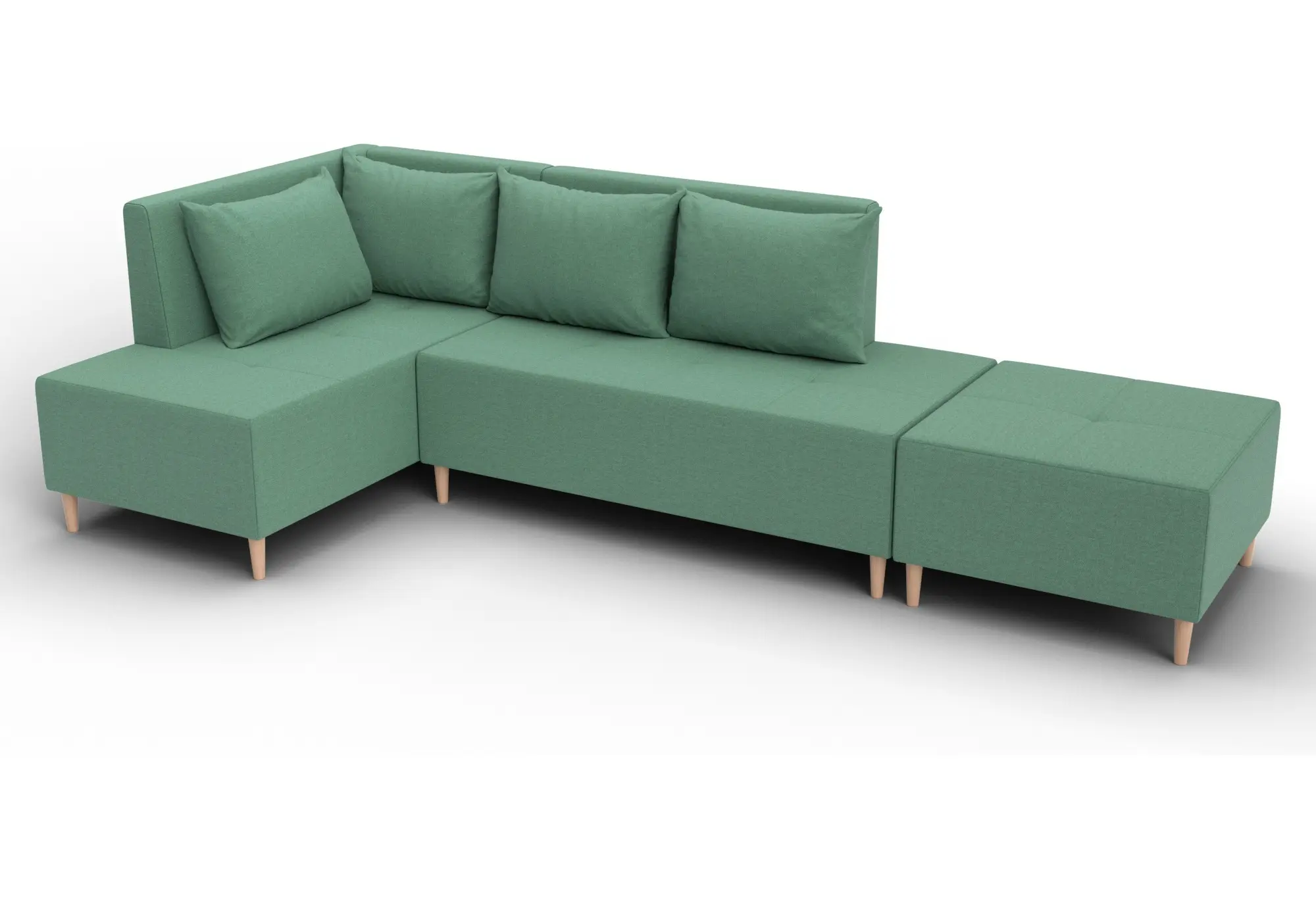 Диван угловой модульный с пуфом Лига-126 угол левый Амур 11 зеленый (Рогожка)