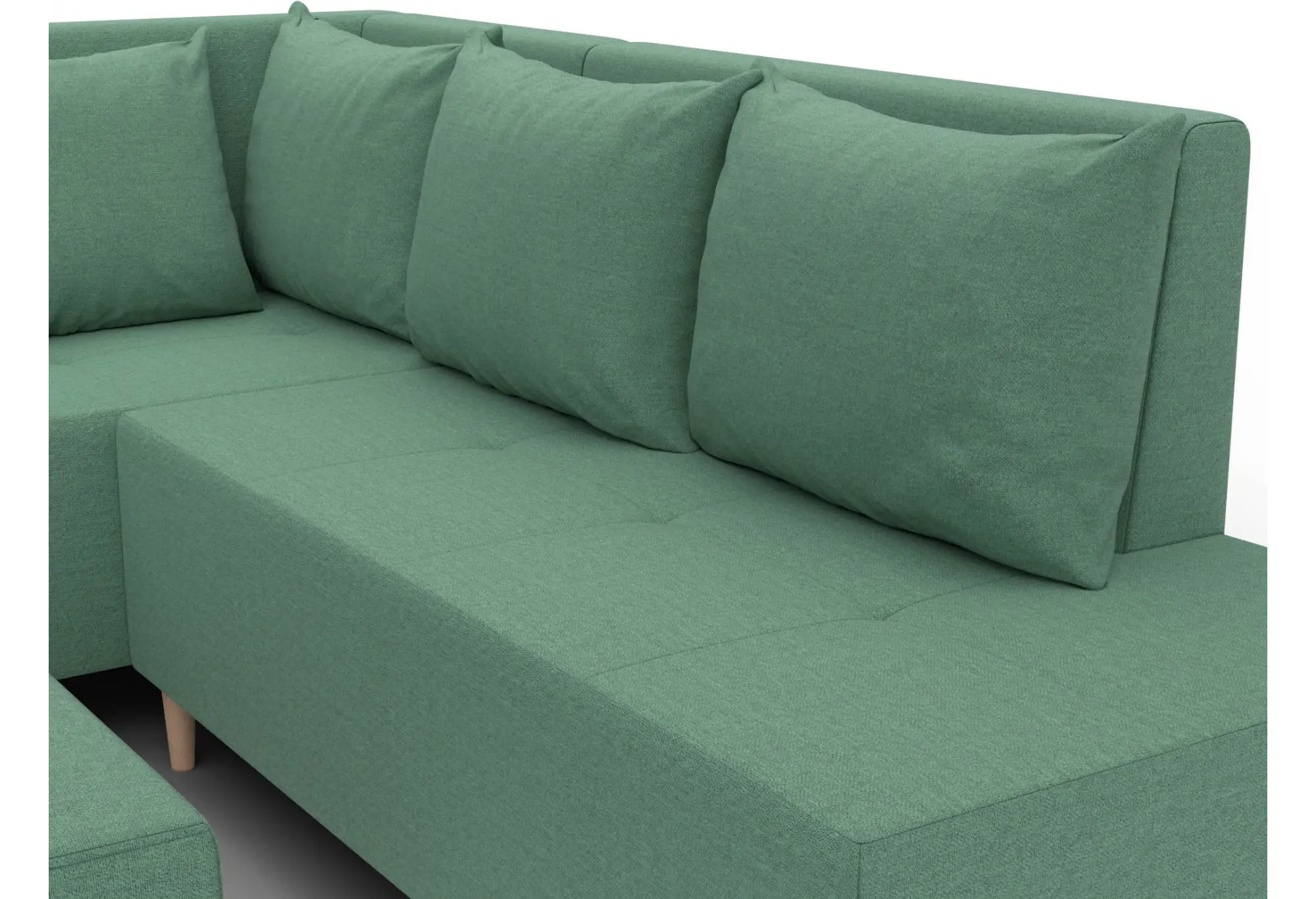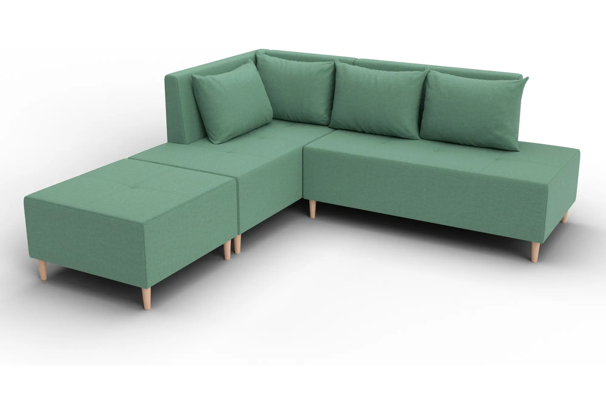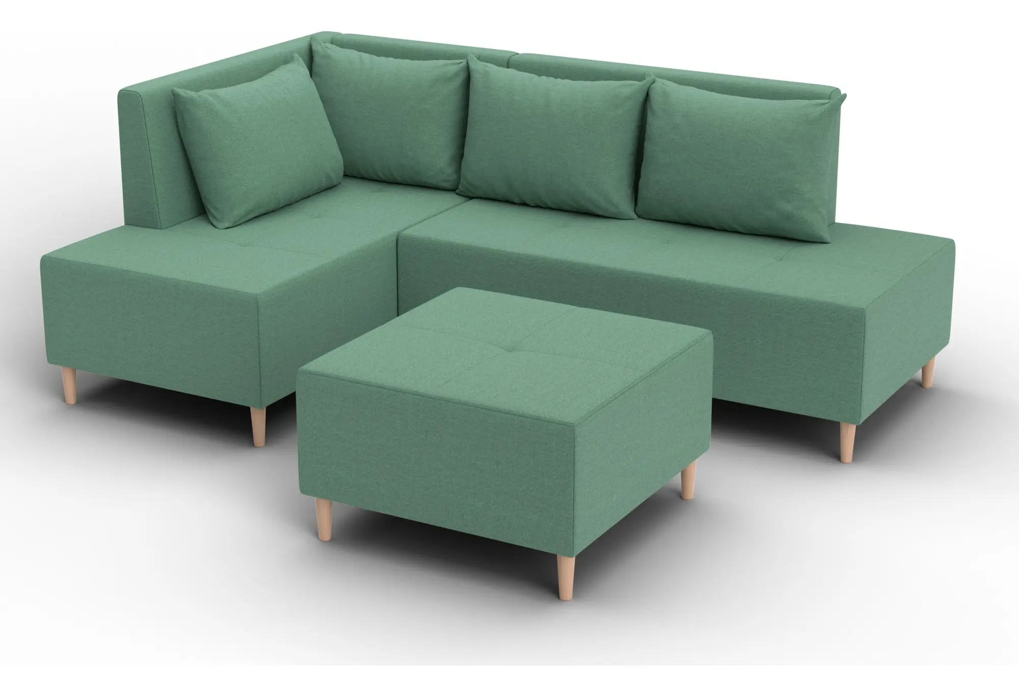 Диван угловой модульный с пуфом Лига-126 угол левый Амур 11 зеленый (Рогожка)