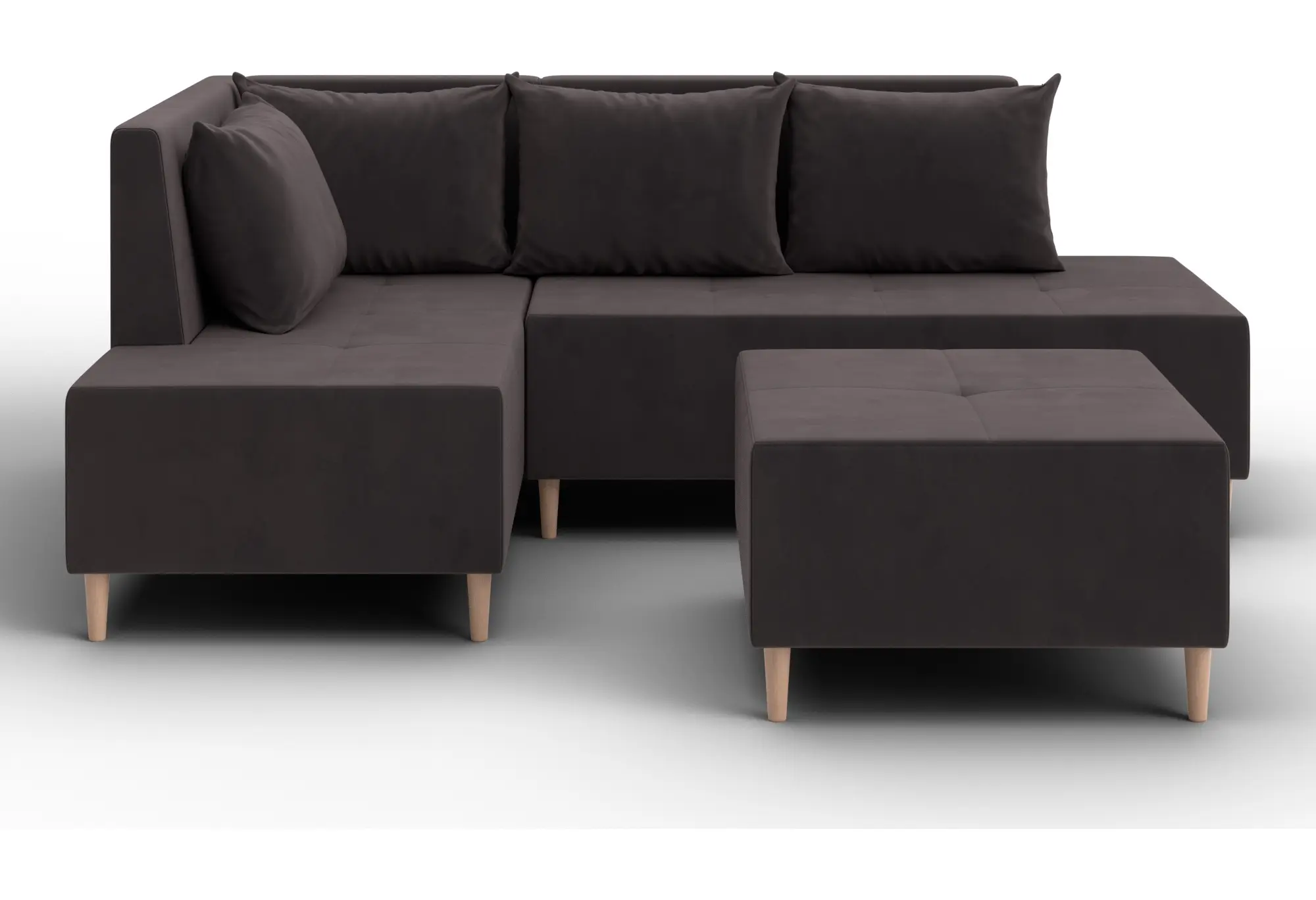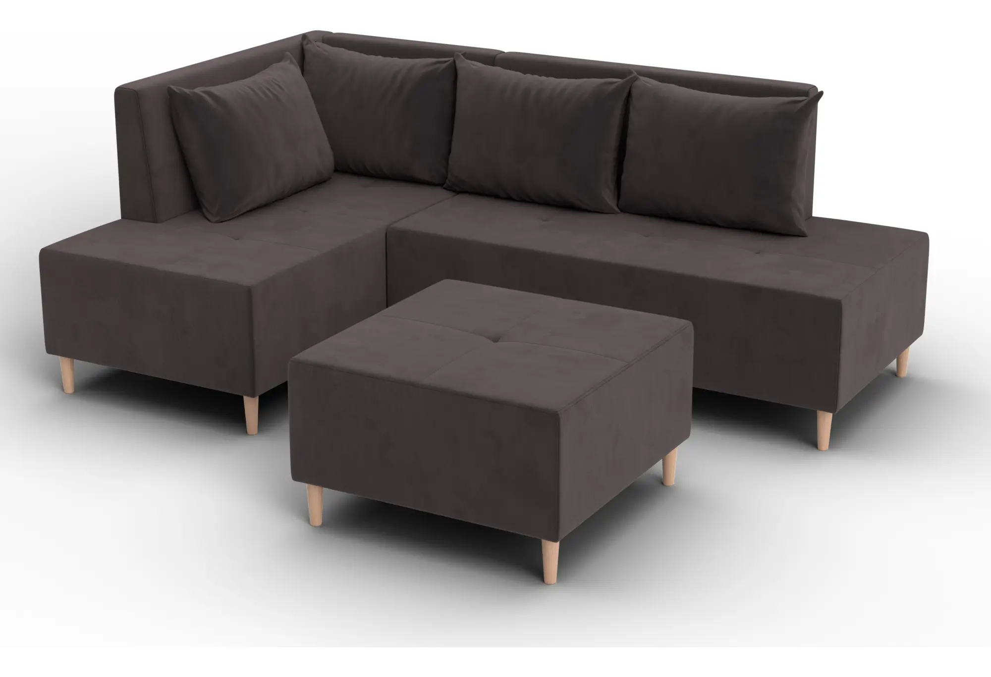 Диван угловой модульный с пуфом Лига-126 угол левый SEVEN 727 коричневый (Велюр)