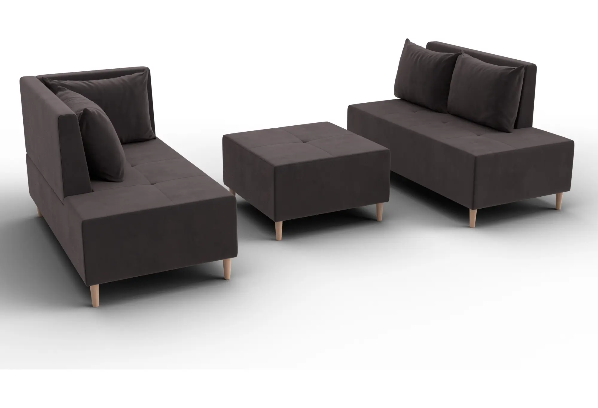 - Два основных модуля + пуф – можно собирать в разных вариациях.