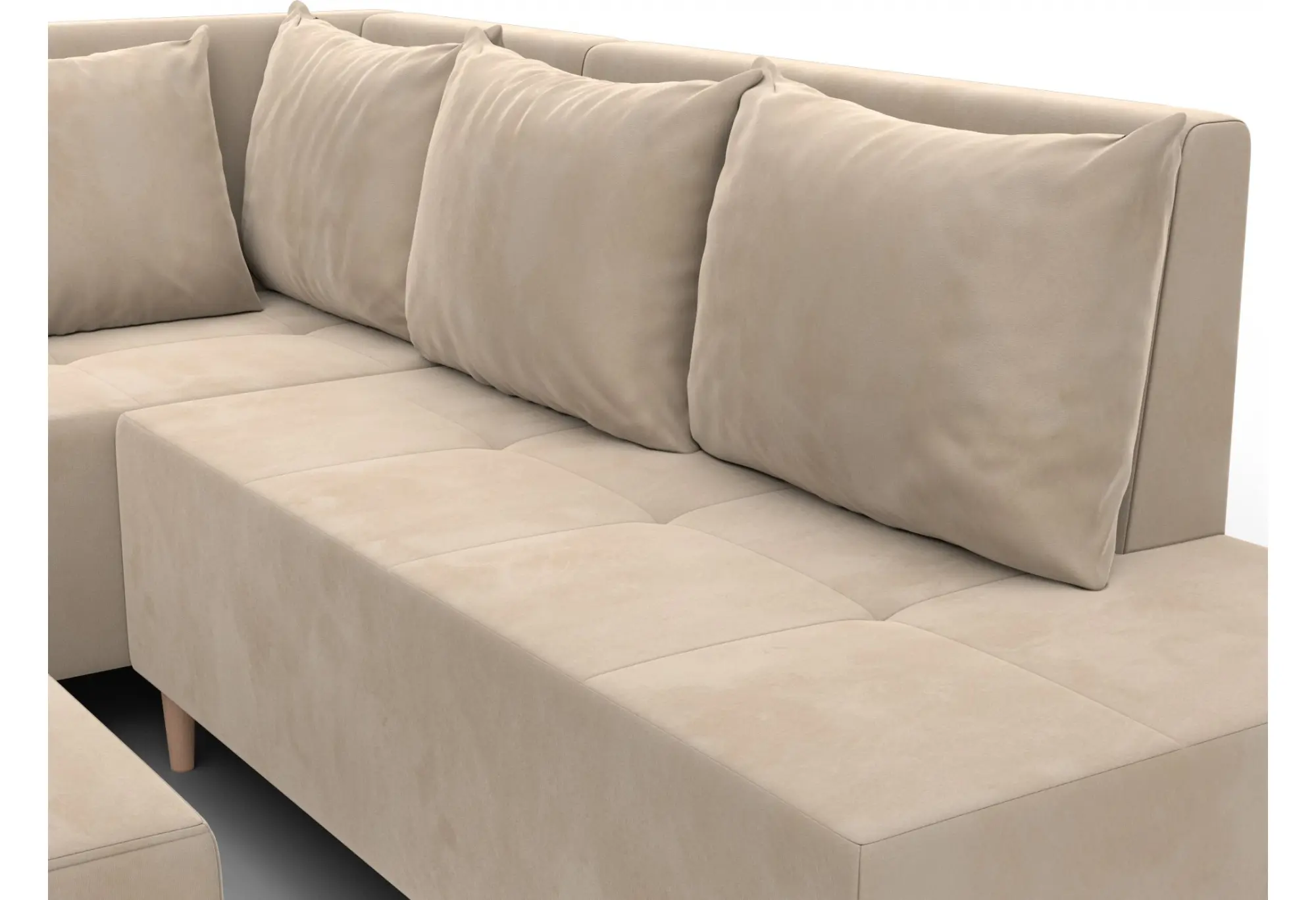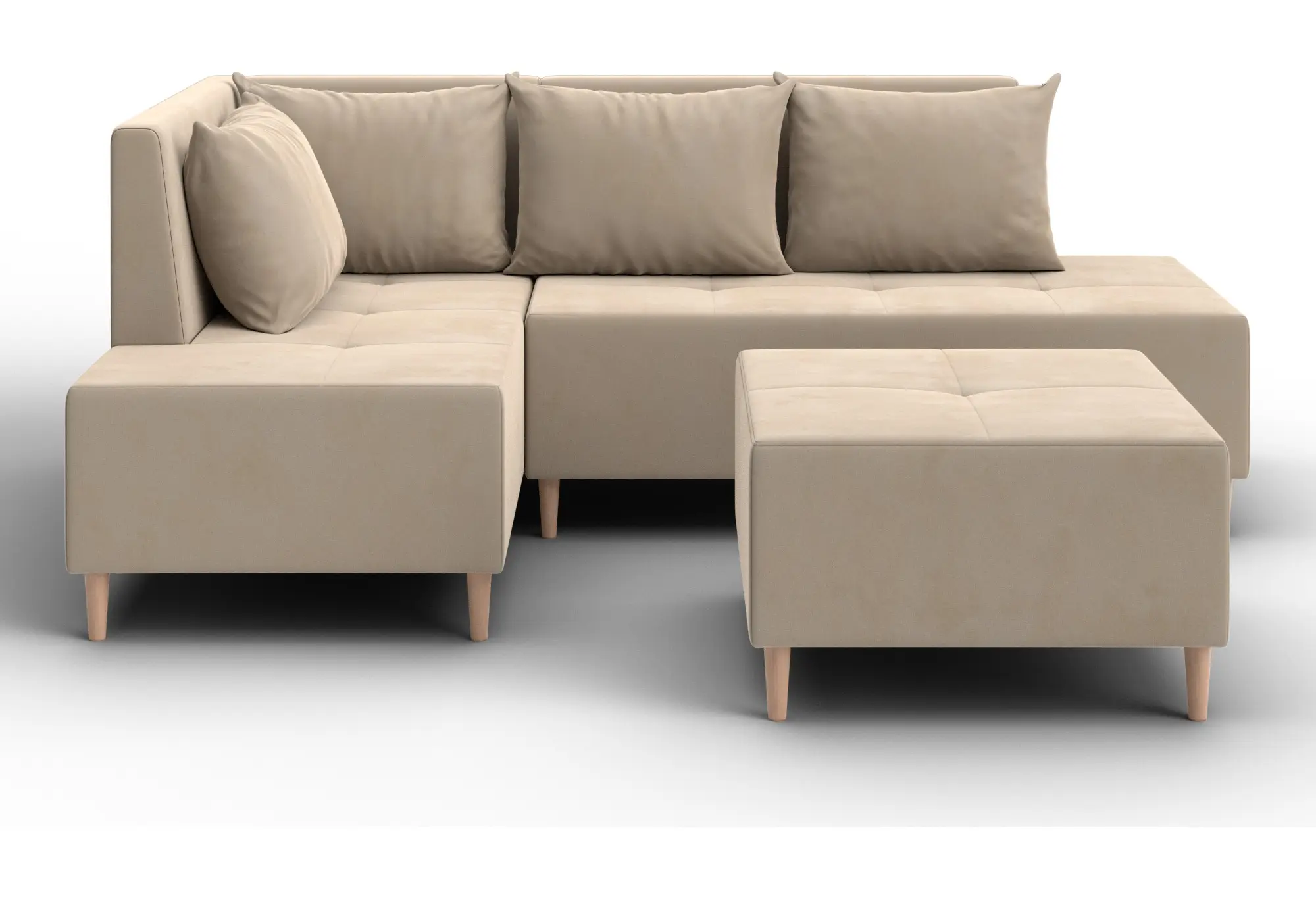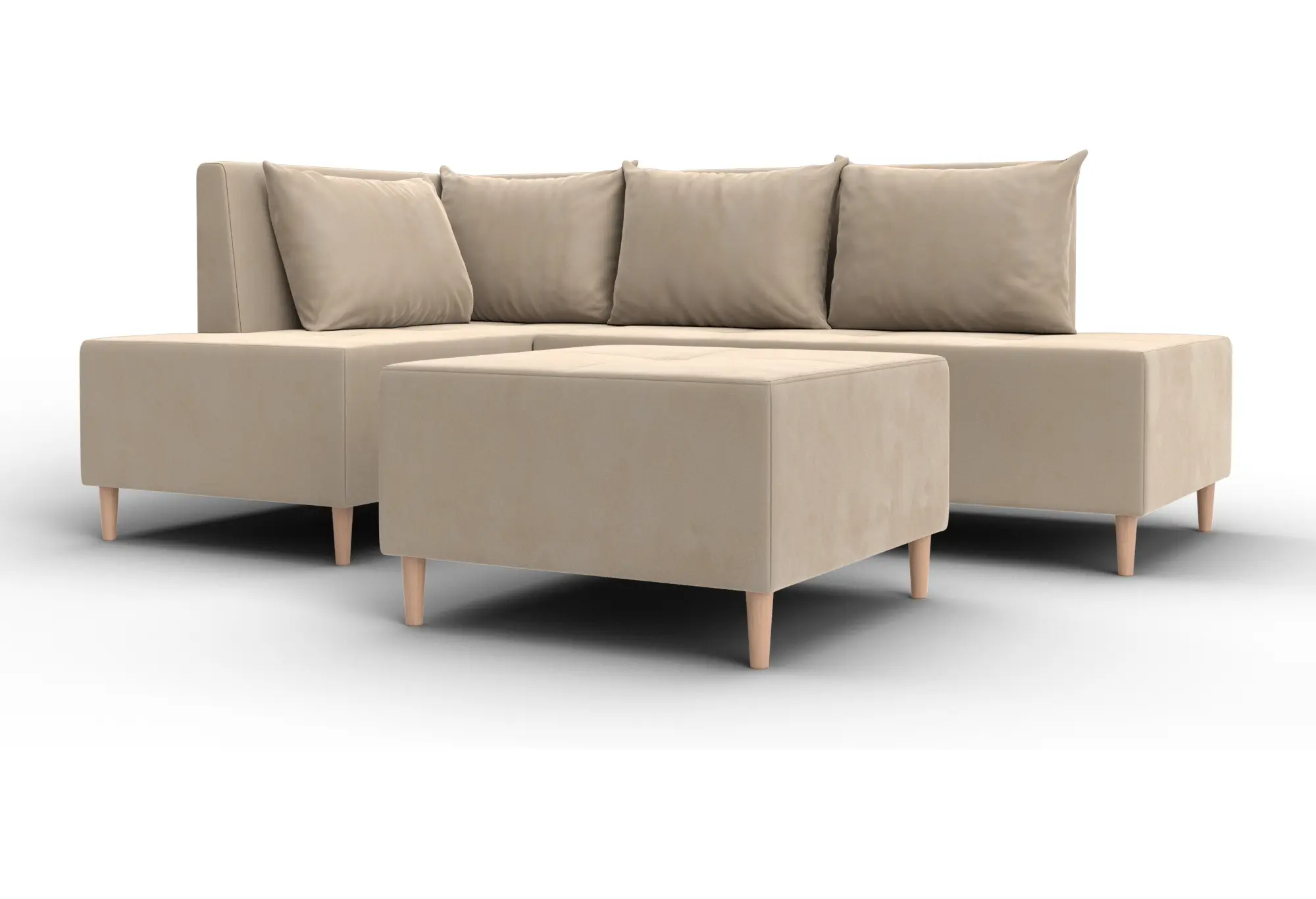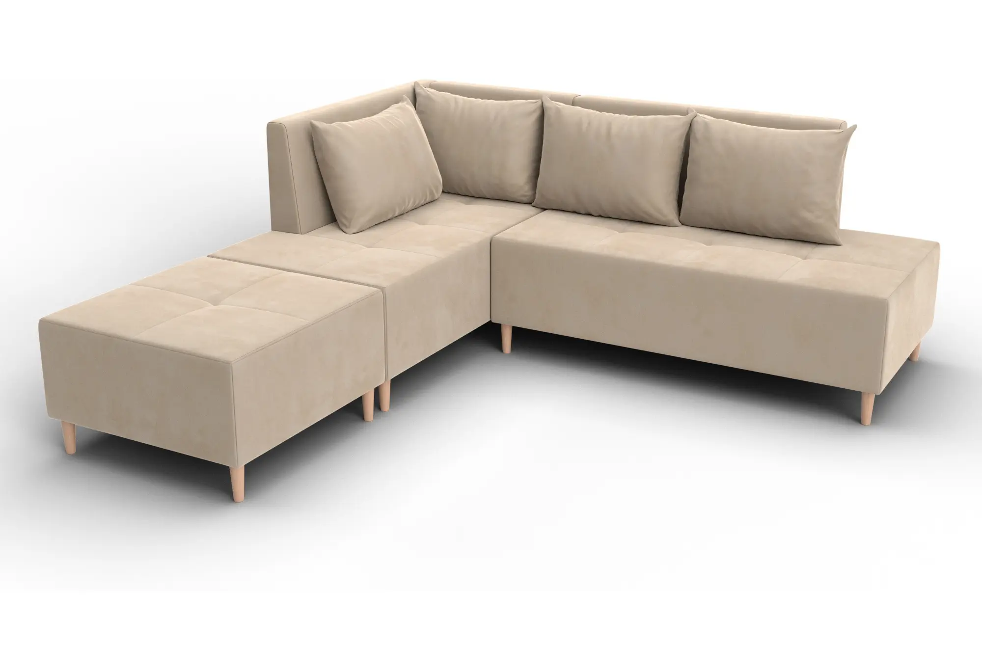 Диван угловой модульный с пуфом Лига-126 угол левый SEVEN 729 бежевый (Велюр)