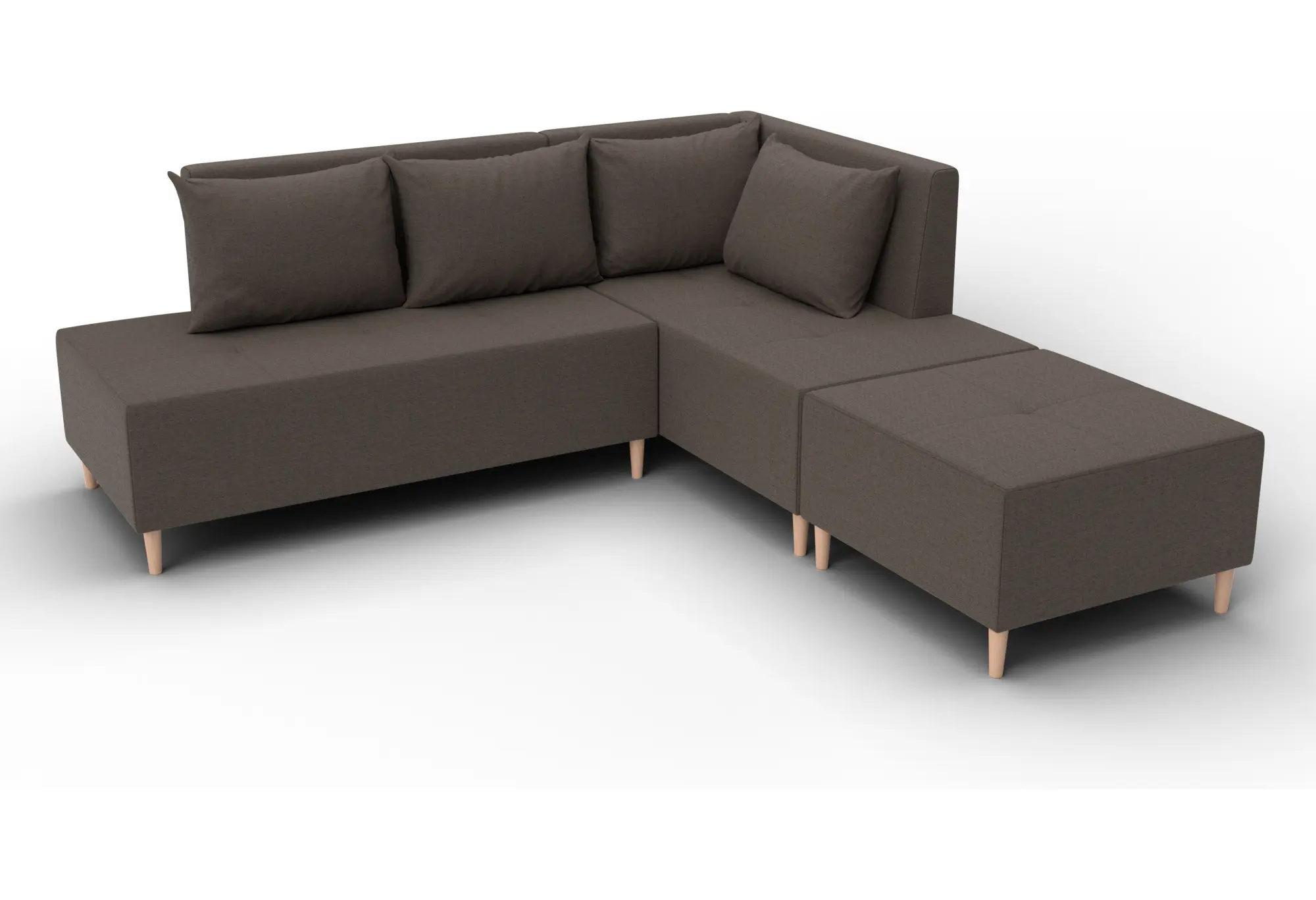 Диван угловой модульный с пуфом Лига-126 угол правый Амур 05 коричневый (Рогожка)