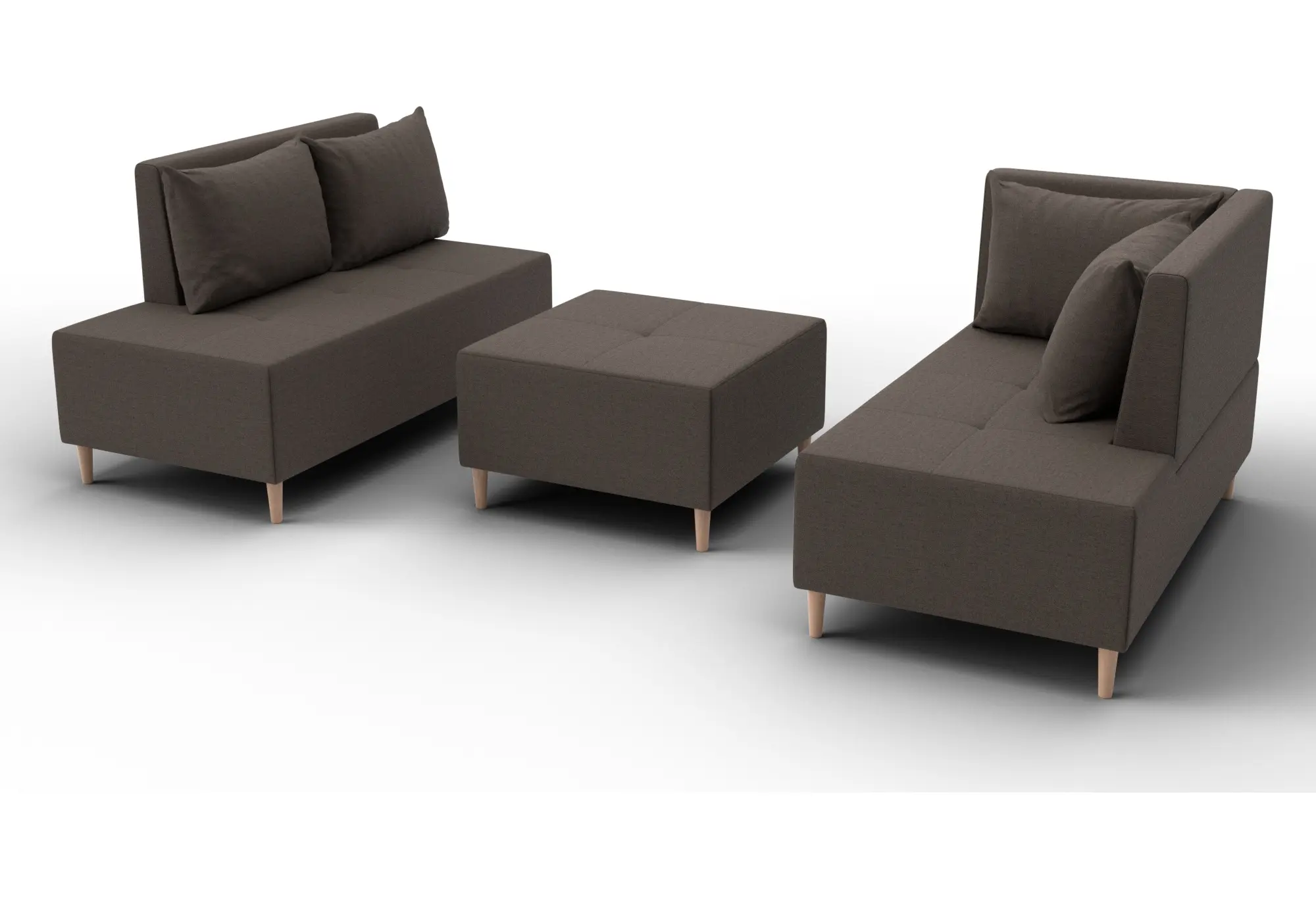 - Два основных модуля + пуф – можно собирать в разных вариациях.