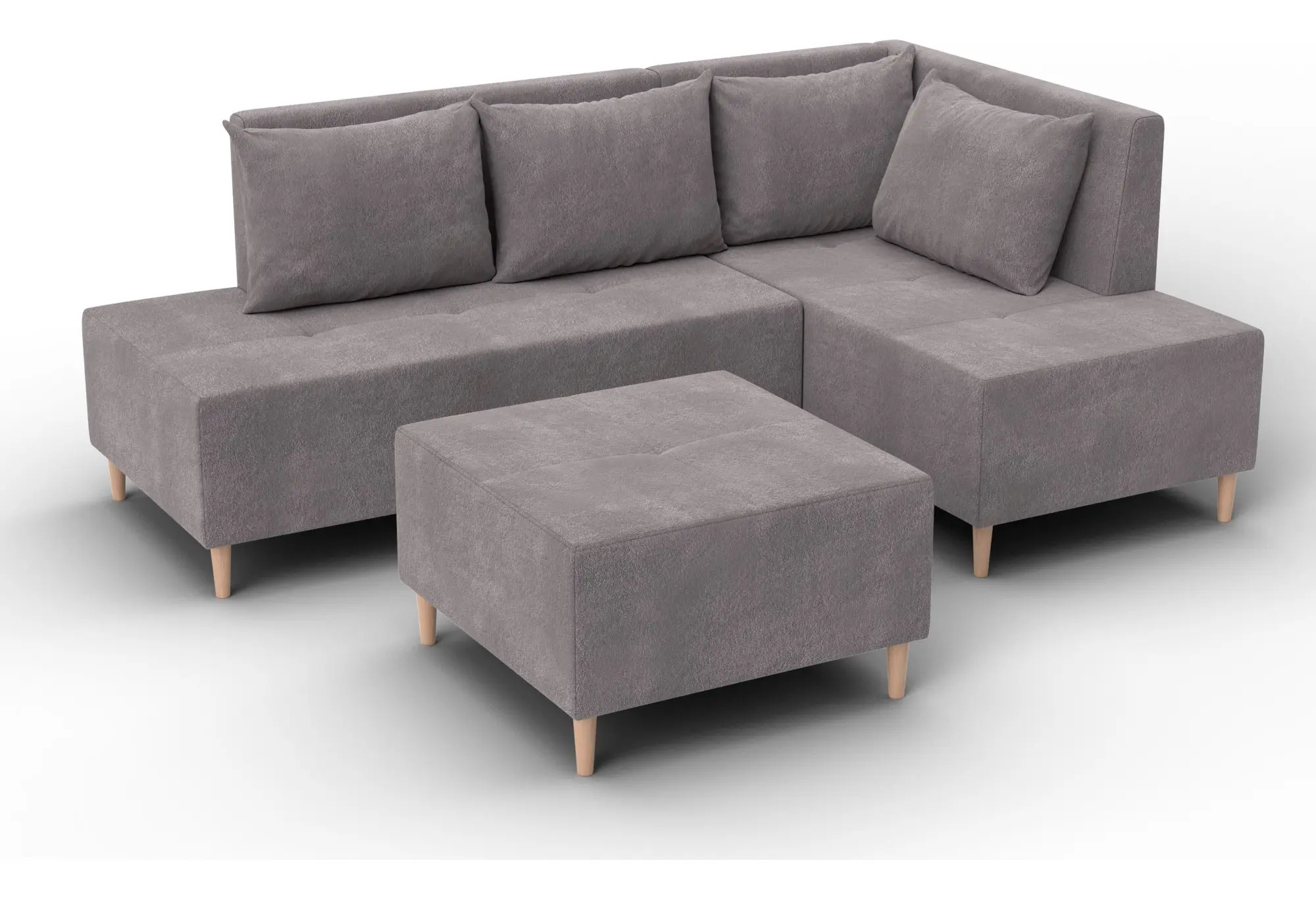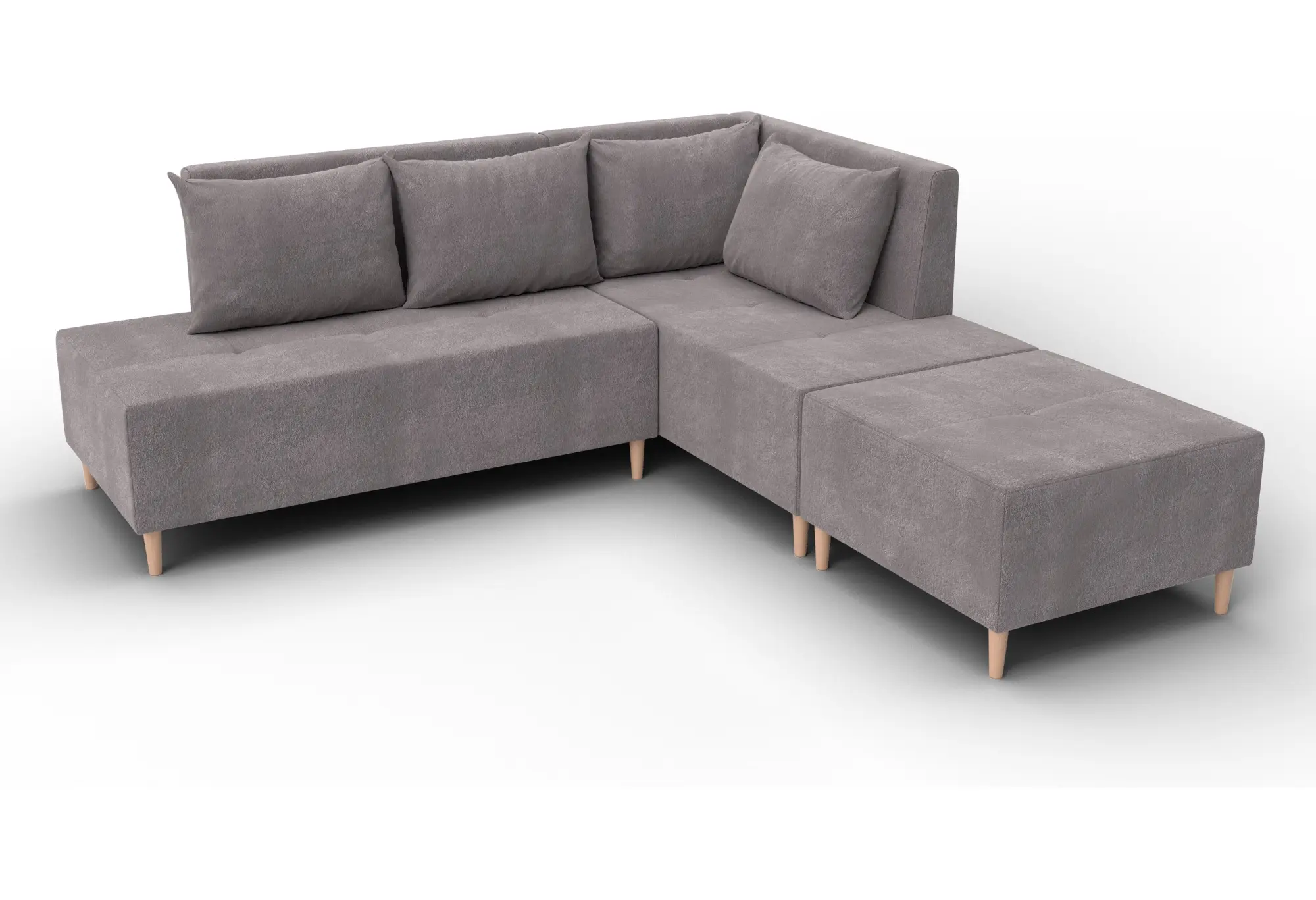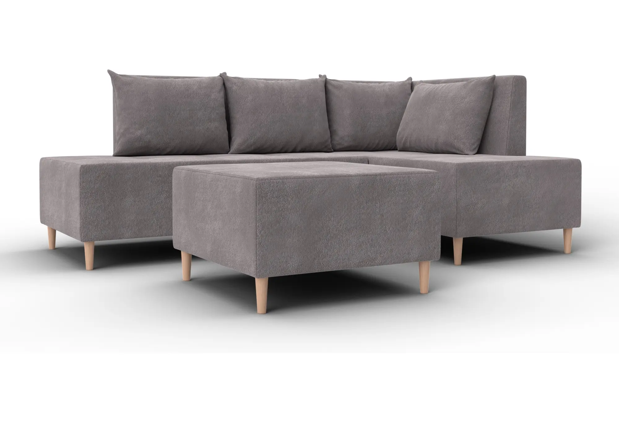 Модульный диван с пуфом Лига-126 – это современное решение для тех, кто ценит гибкость и функциональность. Модель состоит из двух основных модулей и отдельного пуфа. Вы можете собрать угловой диван, удобную зону отдыха или приставить пуф к дивану, чтобы удлинить спальное место. Прочный каркас из ДСП, ЛДСП, фанеры и бруса гарантирует надёжность и долгий срок службы. Мягкие съёмные подушки обеспечивают комфорт, а пуф (75×75×42 см) можно использовать как дополнительное сиденье, подставку для ног или небольшой столик. Высокие деревянные ножки придают дивану элегантный вид и облегчают уборку. Спальное место – 60×197 см. Широкий выбор расцветок.