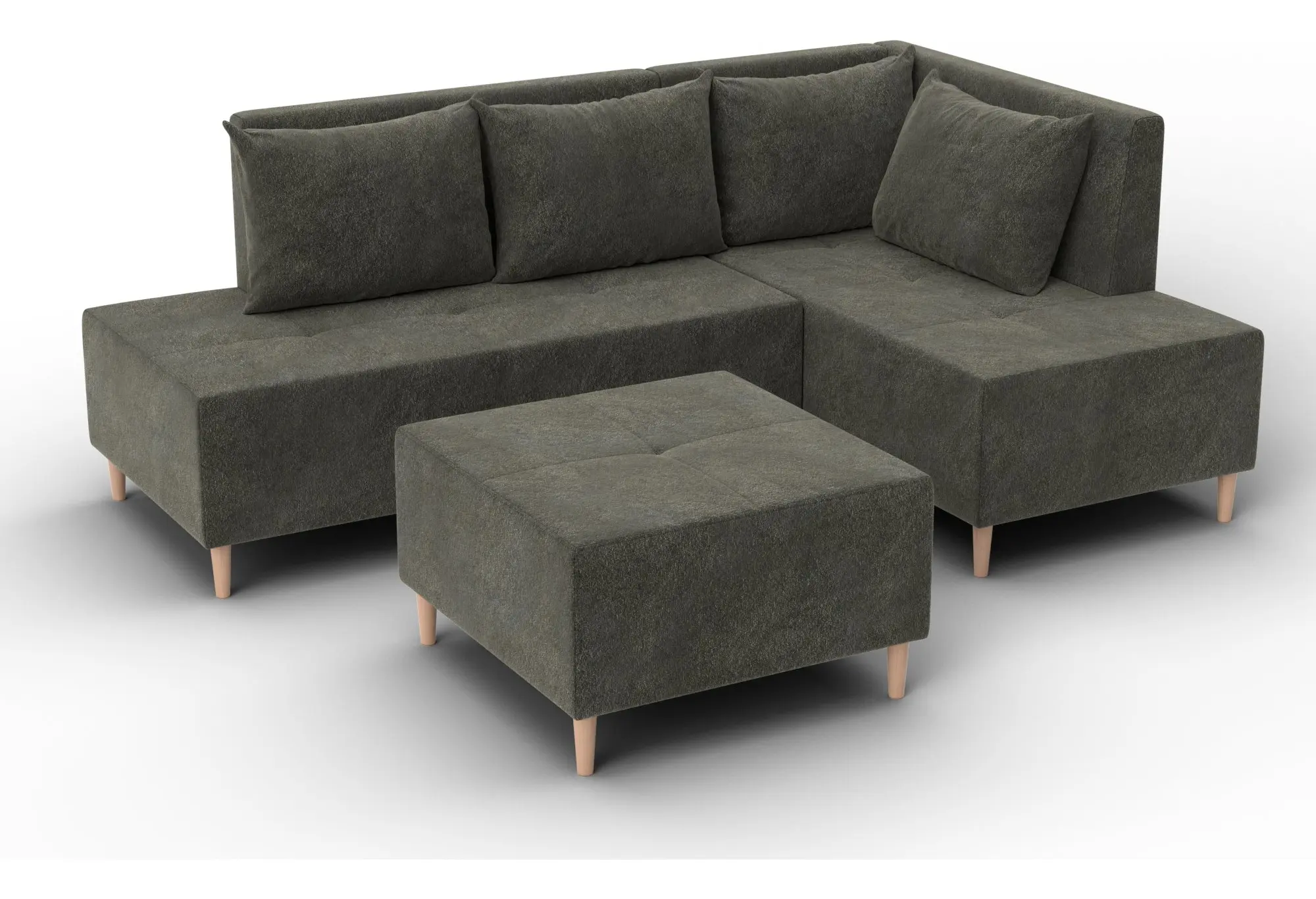 Модульный диван с пуфом Лига-126 – это современное решение для тех, кто ценит гибкость и функциональность. Модель состоит из двух основных модулей и отдельного пуфа. Вы можете собрать угловой диван, удобную зону отдыха или приставить пуф к дивану, чтобы удлинить спальное место. Прочный каркас из ДСП, ЛДСП, фанеры и бруса гарантирует надёжность и долгий срок службы. Мягкие съёмные подушки обеспечивают комфорт, а пуф (75×75×42 см) можно использовать как дополнительное сиденье, подставку для ног или небольшой столик. Высокие деревянные ножки придают дивану элегантный вид и облегчают уборку. Спальное место – 60×197 см. Широкий выбор расцветок.