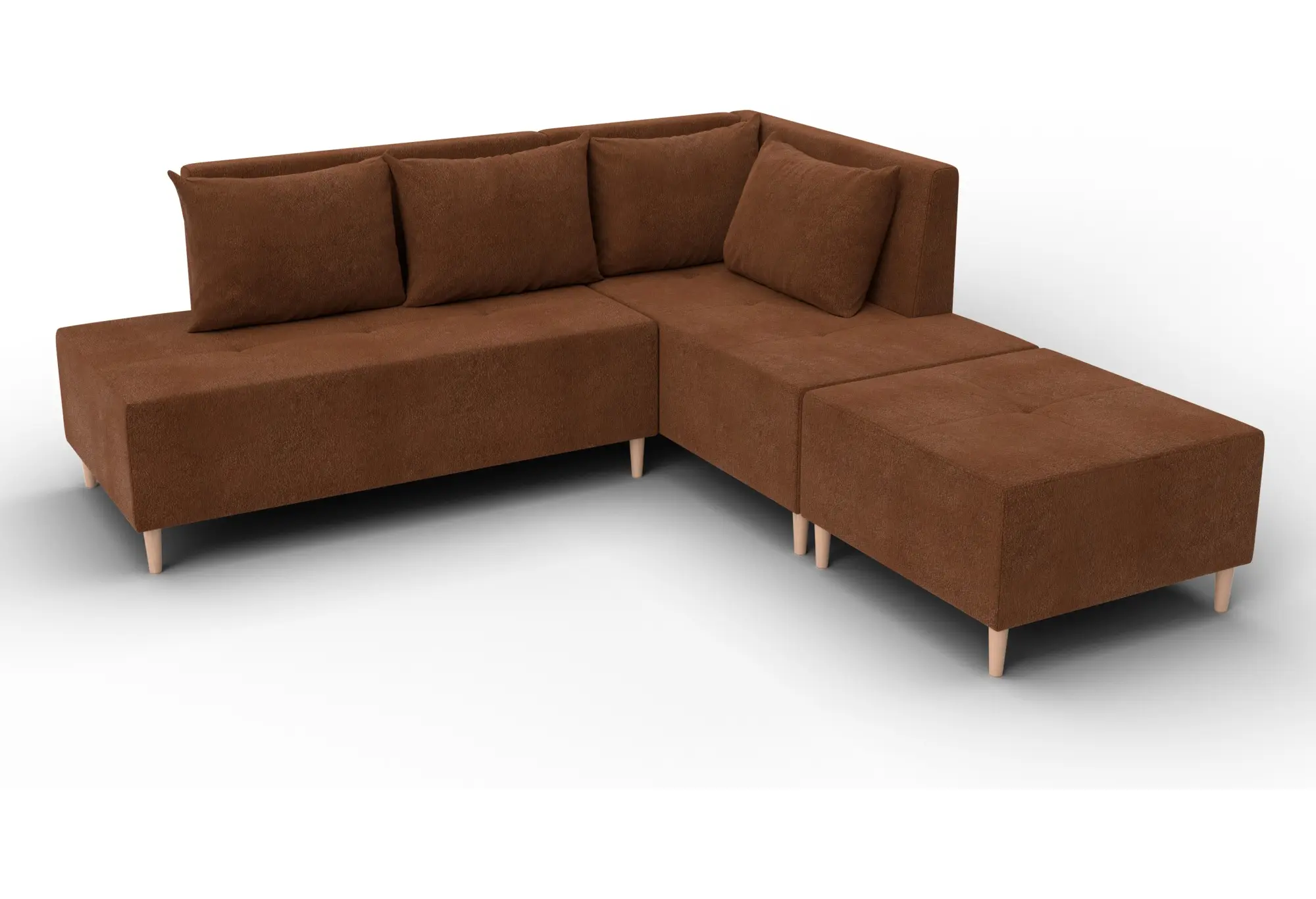 Диван угловой модульный с пуфом Лига-126 угол правый LAIM 14 терракотовый (Велюр)
