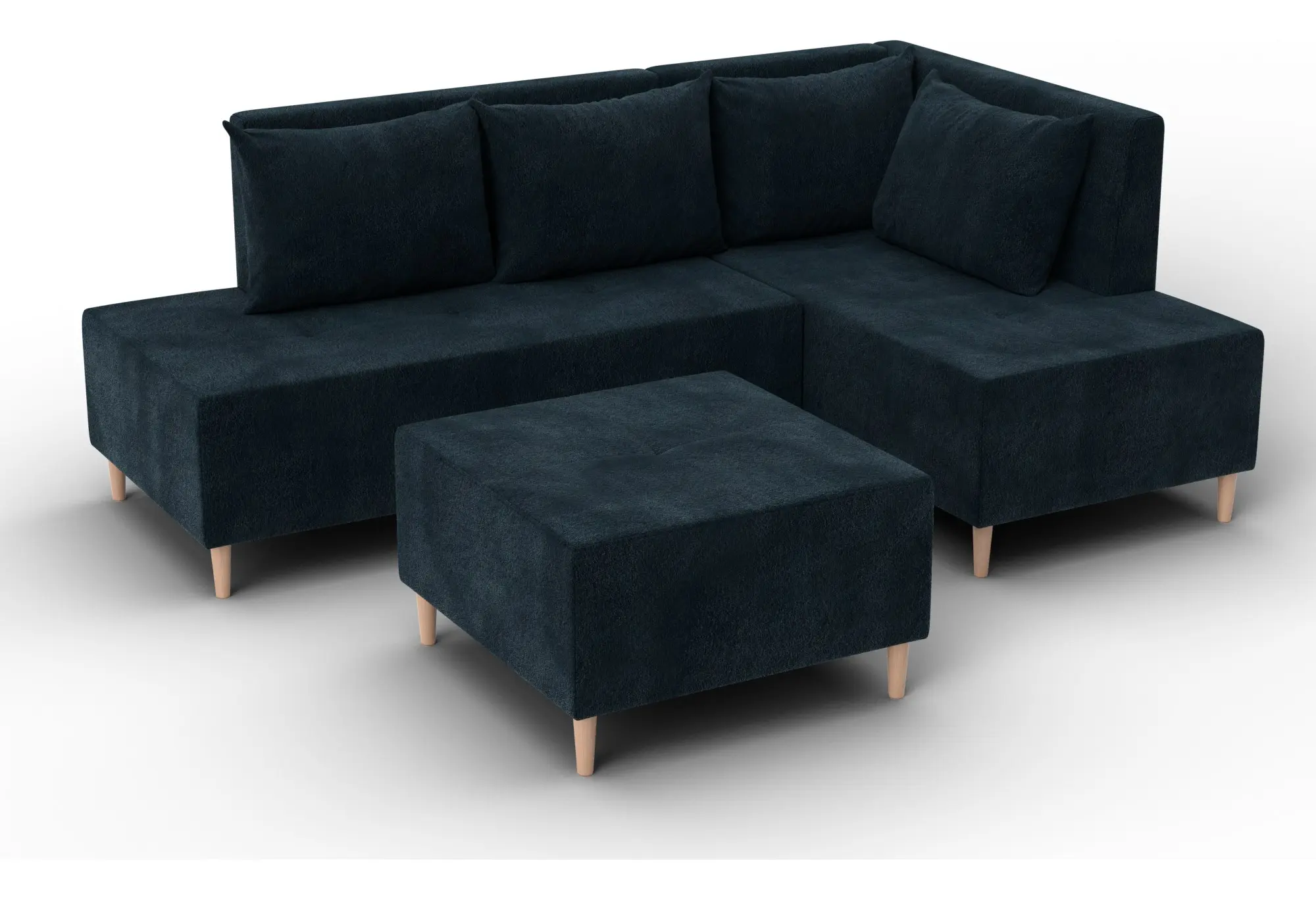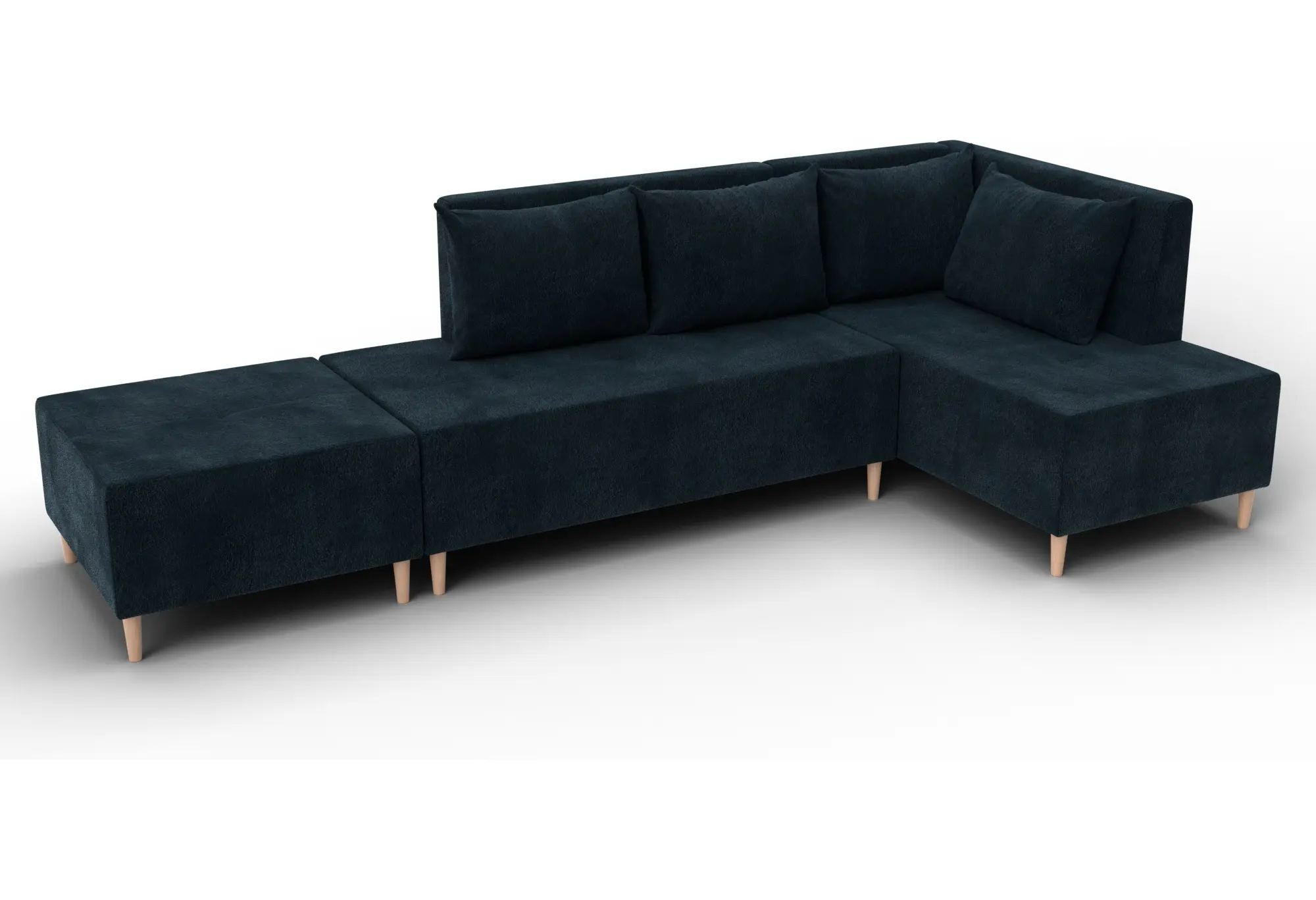 Модульный диван с пуфом Лига-126 – это современное решение для тех, кто ценит гибкость и функциональность. Модель состоит из двух основных модулей и отдельного пуфа. Вы можете собрать угловой диван, удобную зону отдыха или приставить пуф к дивану, чтобы удлинить спальное место. Прочный каркас из ДСП, ЛДСП, фанеры и бруса гарантирует надёжность и долгий срок службы. Мягкие съёмные подушки обеспечивают комфорт, а пуф (75×75×42 см) можно использовать как дополнительное сиденье, подставку для ног или небольшой столик. Высокие деревянные ножки придают дивану элегантный вид и облегчают уборку. Спальное место – 60×197 см. Широкий выбор расцветок.
