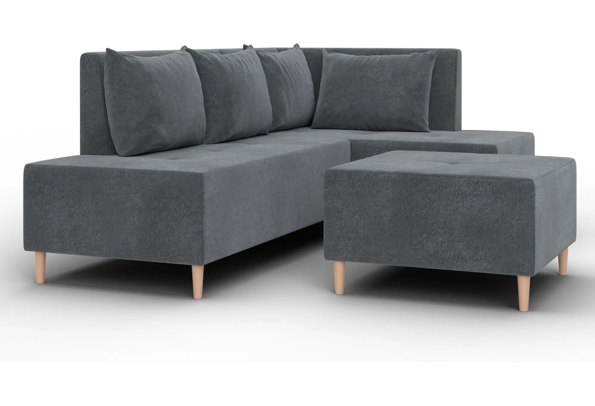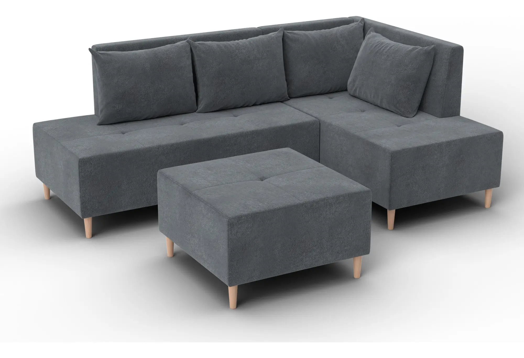 Модульный диван с пуфом Лига-126 – это современное решение для тех, кто ценит гибкость и функциональность. Модель состоит из двух основных модулей и отдельного пуфа. Вы можете собрать угловой диван, удобную зону отдыха или приставить пуф к дивану, чтобы удлинить спальное место. Прочный каркас из ДСП, ЛДСП, фанеры и бруса гарантирует надёжность и долгий срок службы. Мягкие съёмные подушки обеспечивают комфорт, а пуф (75×75×42 см) можно использовать как дополнительное сиденье, подставку для ног или небольшой столик. Высокие деревянные ножки придают дивану элегантный вид и облегчают уборку. Спальное место – 60×197 см. Широкий выбор расцветок.