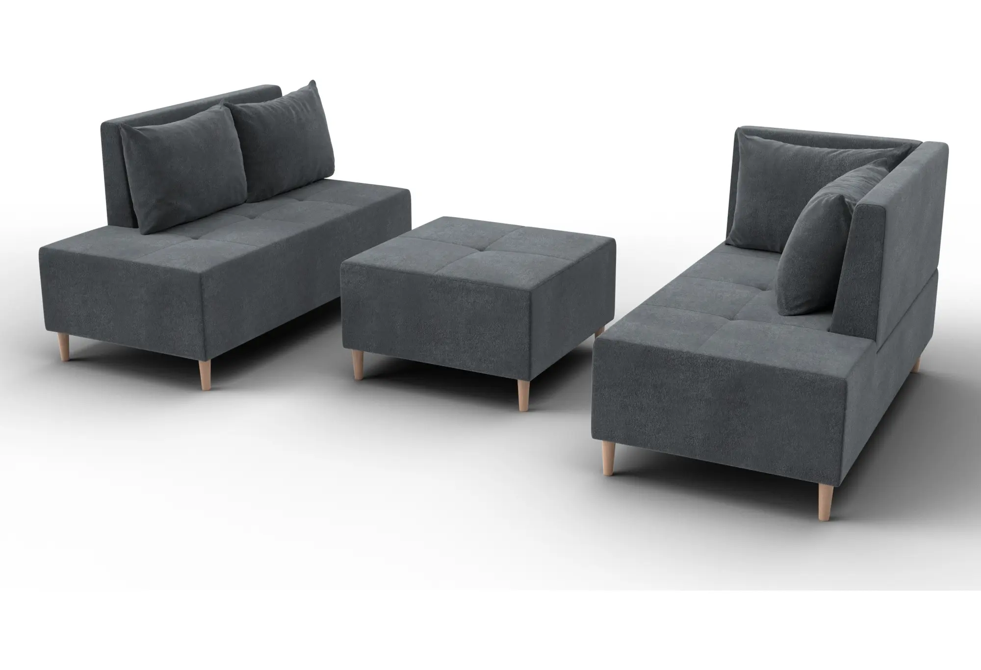 - Два основных модуля + пуф – можно собирать в разных вариациях.