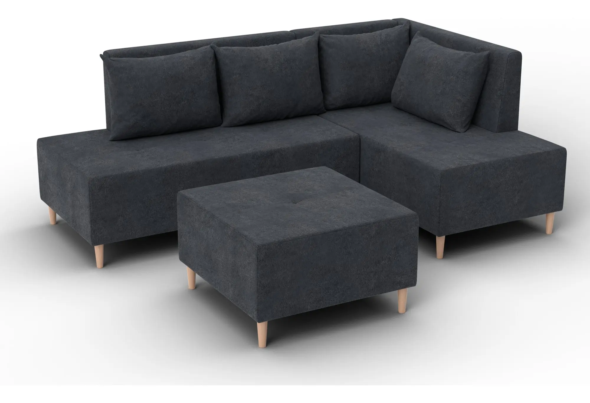 Модульный диван с пуфом Лига-126 – это современное решение для тех, кто ценит гибкость и функциональность. Модель состоит из двух основных модулей и отдельного пуфа. Вы можете собрать угловой диван, удобную зону отдыха или приставить пуф к дивану, чтобы удлинить спальное место. Прочный каркас из ДСП, ЛДСП, фанеры и бруса гарантирует надёжность и долгий срок службы. Мягкие съёмные подушки обеспечивают комфорт, а пуф (75×75×42 см) можно использовать как дополнительное сиденье, подставку для ног или небольшой столик. Высокие деревянные ножки придают дивану элегантный вид и облегчают уборку. Спальное место – 60×197 см. Широкий выбор расцветок.
